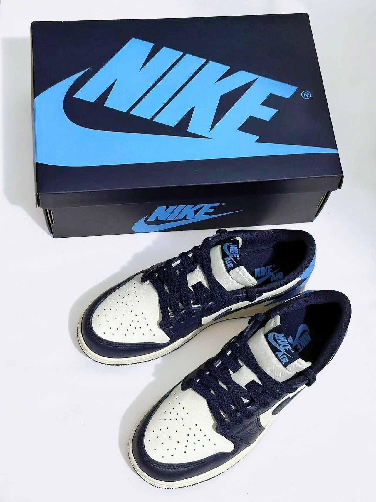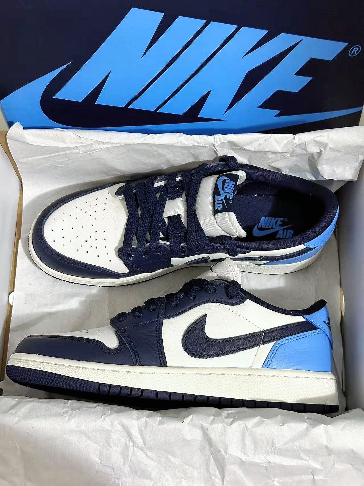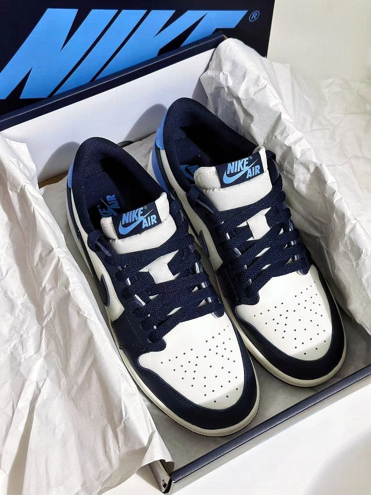 黑白蓝的经典搭配 简约 高级 不失个性 随便搭都好出片 细节做的也蛮不错 #谁还没有一双AJ