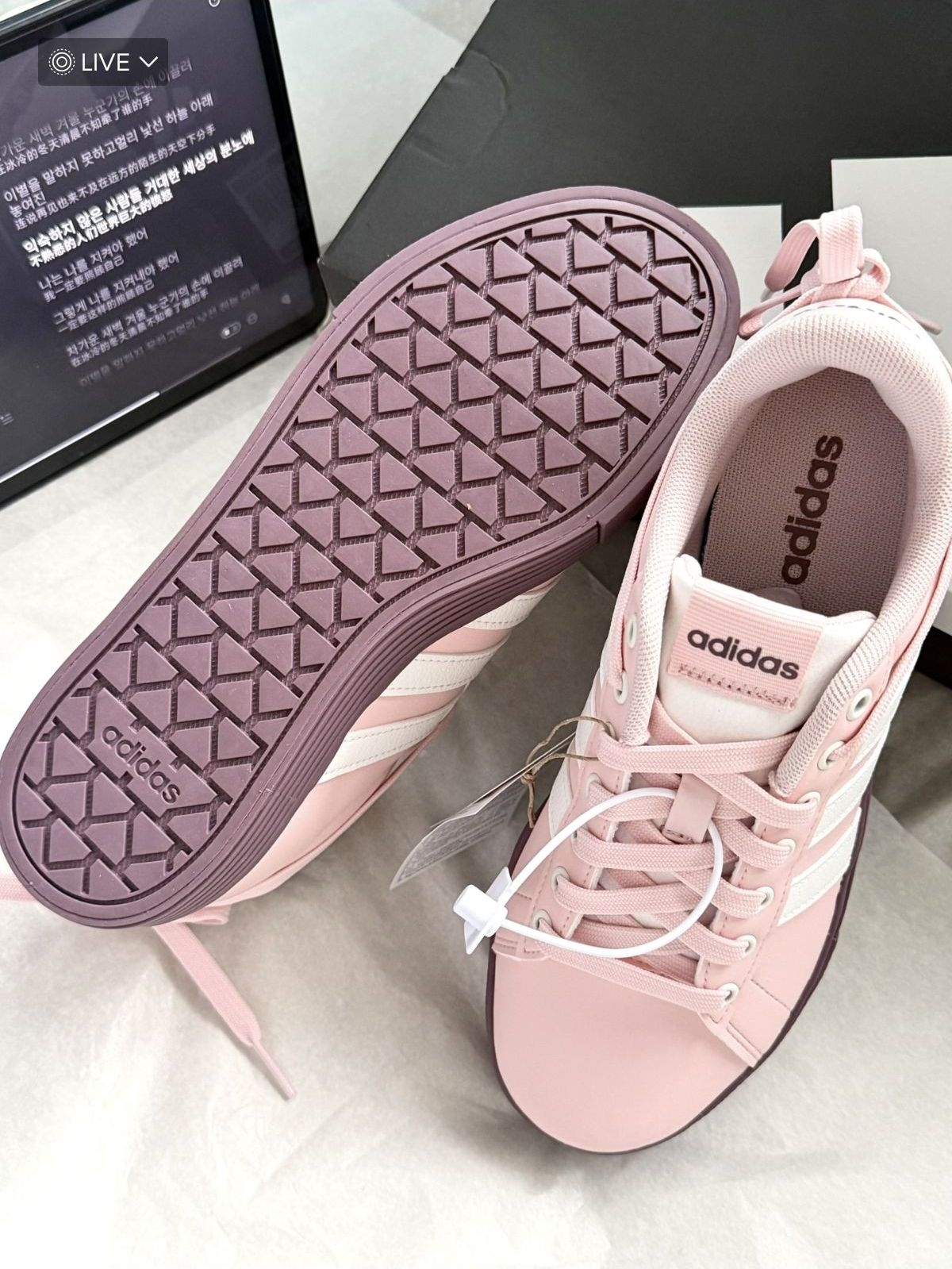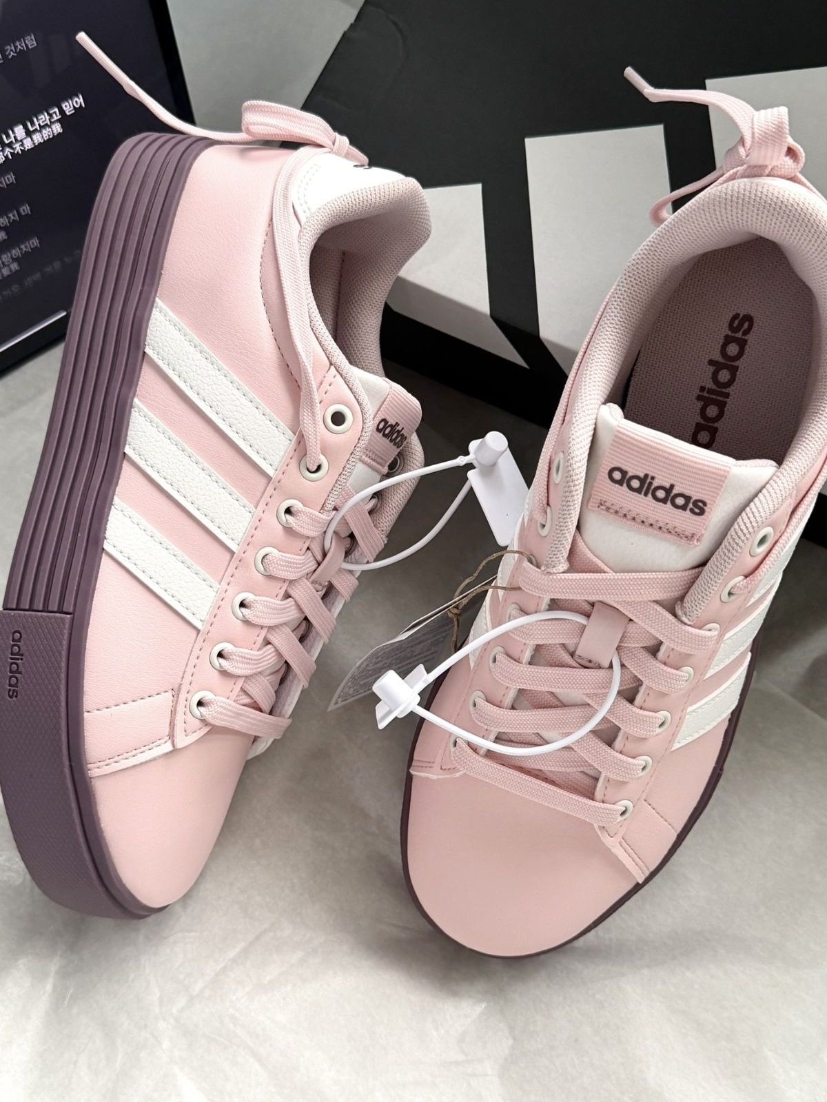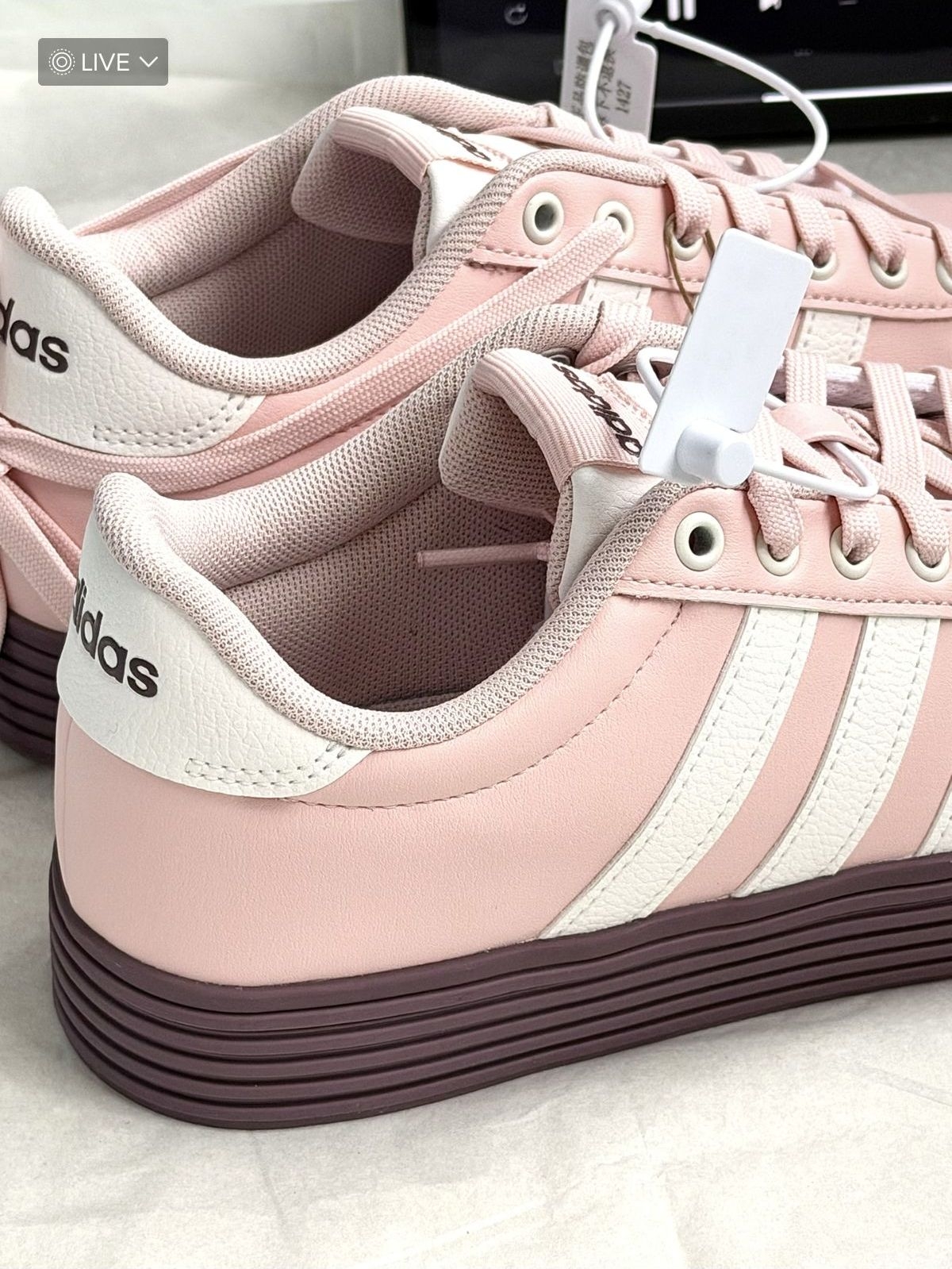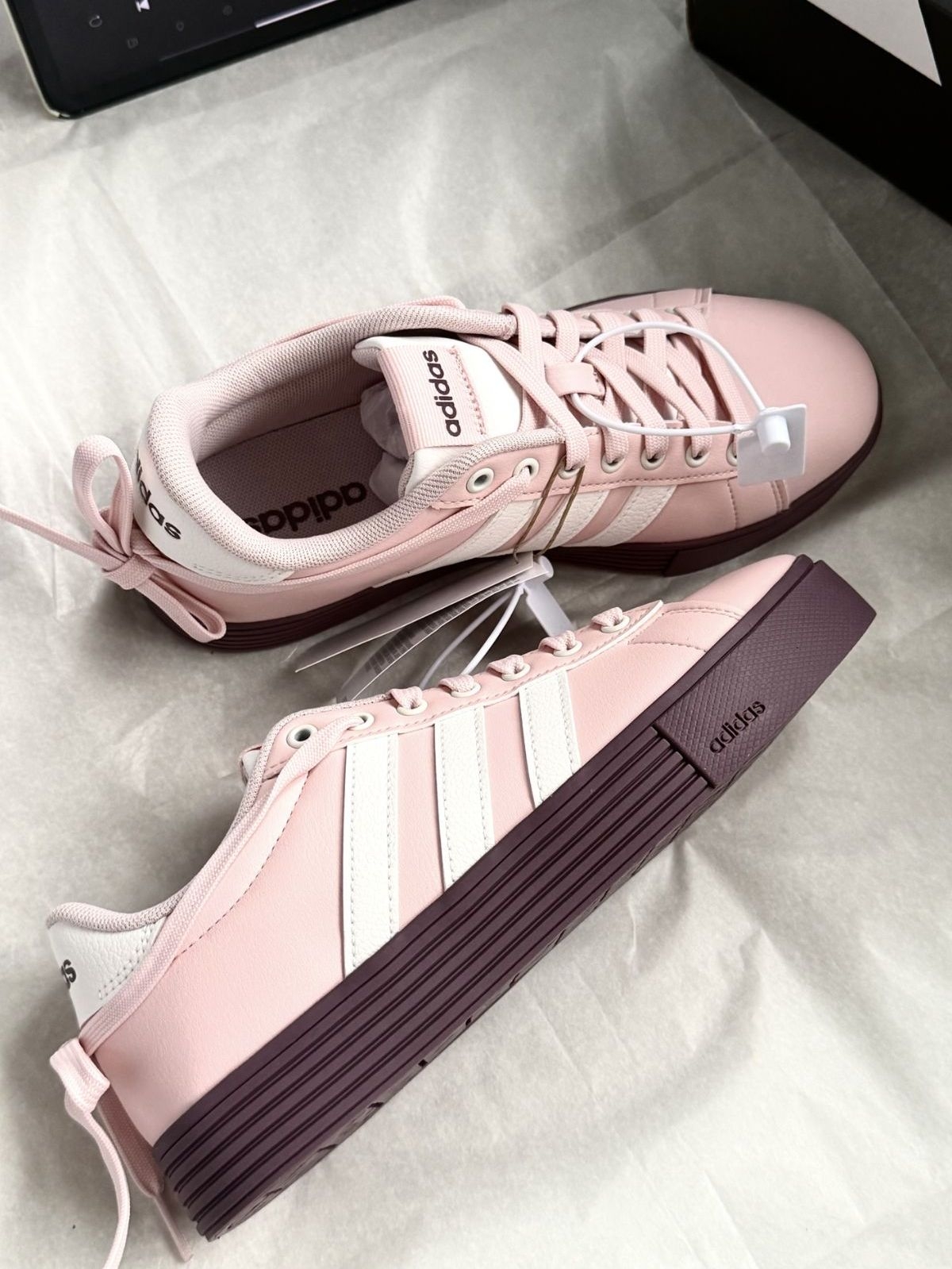粉紫配色绝绝子!阿迪你别太会! 这双阿迪°常规的版型+系带设计整体舒适穿脱 方便 皮面设计耐造又方便清洗 内衬舒适非常适合日常穿着 橡胶外底防滑耐磨 鞋码超正 增高3cm拉长腿部线条 追求时尚与舒适的姐妹可以考虑入手