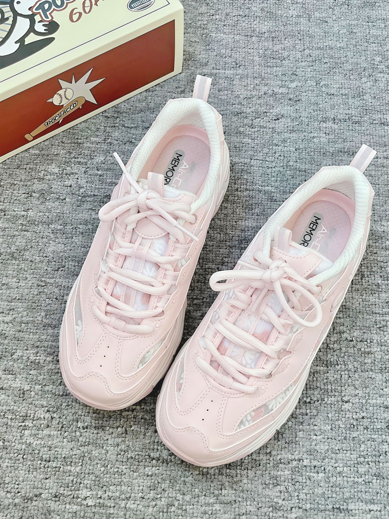 谁懂啊家人们!新入的这双斯凯奇樱花粉老爹鞋,直接戳中我的少女心💘 奶fufu的樱花粉拼接米白,鞋身还藏着小雏菊暗纹,温柔到骨子里了。本以为颜值高的鞋都磨脚,结果实测暴走两万步,脚感像踩在棉花上一样软乎☁️ 厚底设计悄悄增高3cm,搭配阔腿裤秒变三七分比例。鞋底的防滑纹路超扎实,下雨天出门也不慌。马年开春穿它出门踏青,拍照巨出片,甜妹们闭眼冲就完事了!
