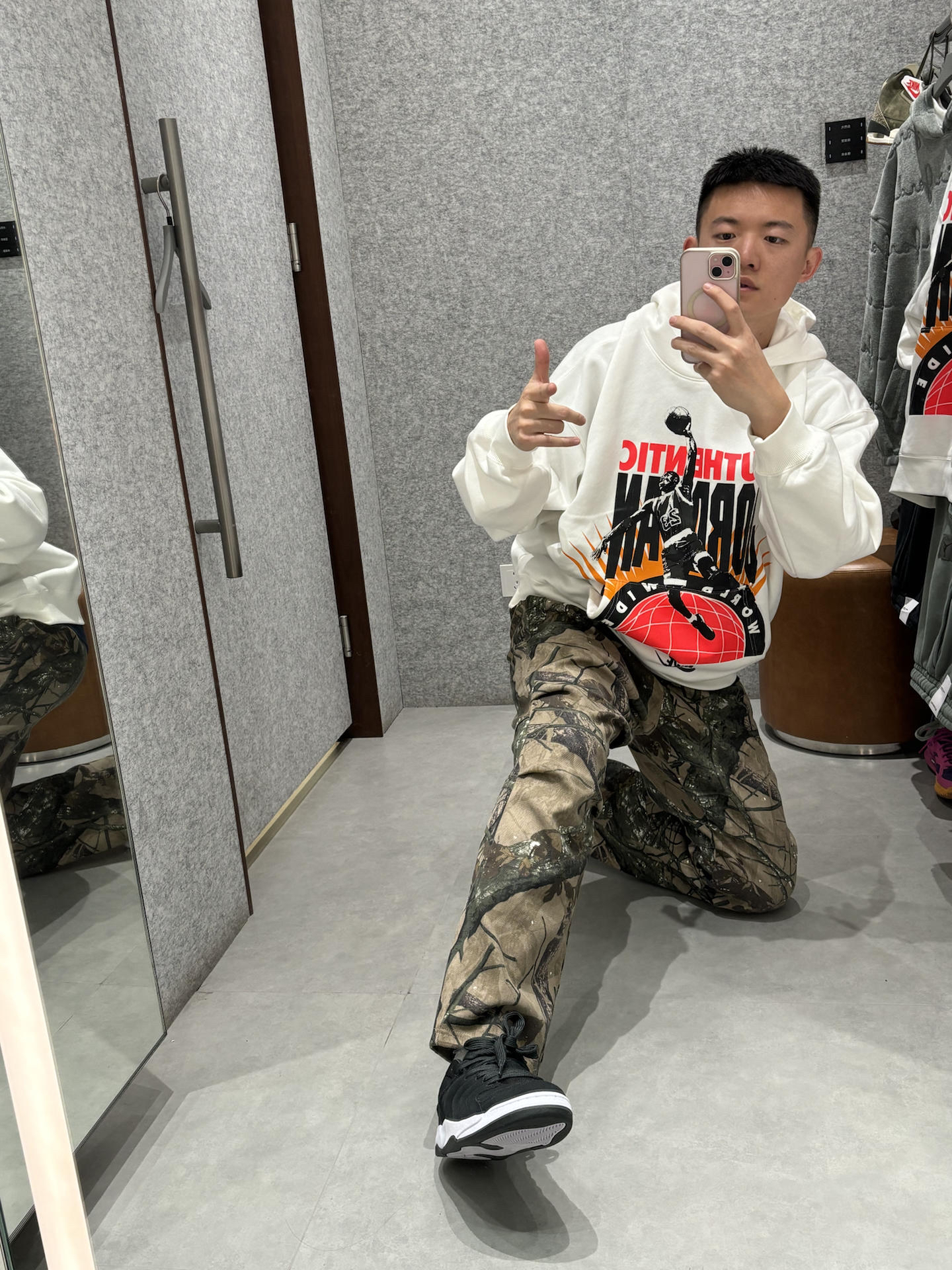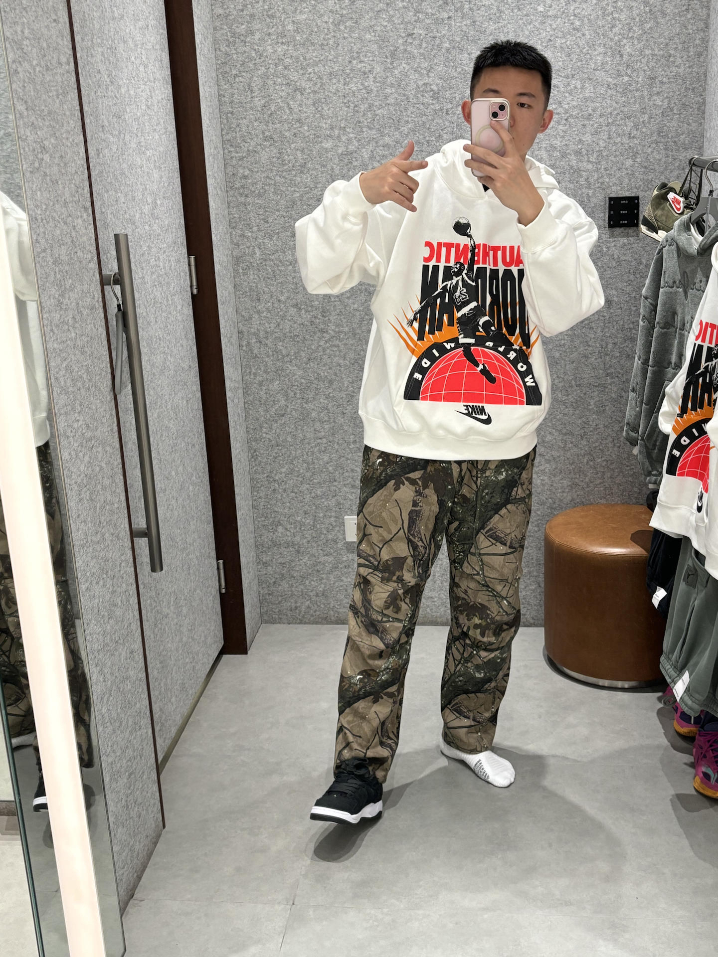 #南方vs北方入春穿搭 最近又一波冷空气直接又把我冻坏了 我又翻出来了这件卫衣 离层加绒一点薄绒也很保暖 白橙色很体育生的感觉 搭配迷彩裤就很街头gank 一双黑色面包鞋很有运动气质 整体开春就这么穿有活力通勤运动都可以 👔jordan抓绒卫衣 👖uzis迷彩 👟jordan session黑色