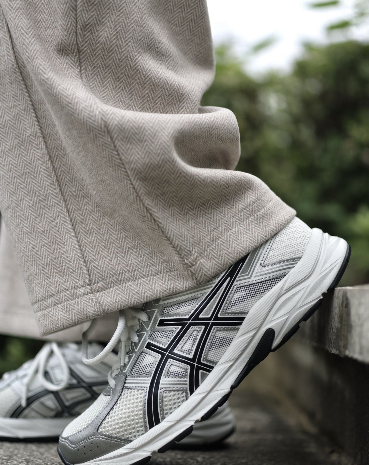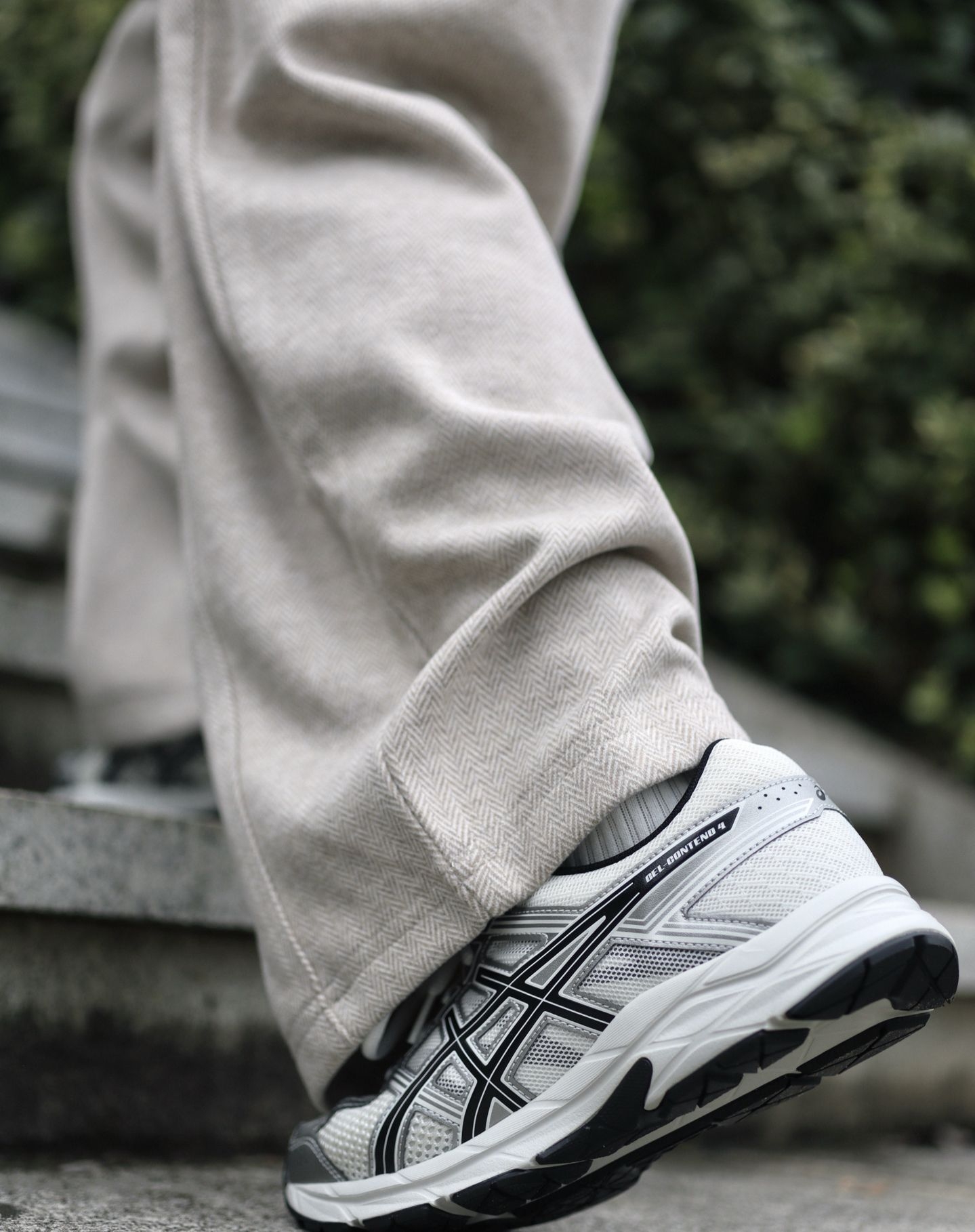 今天上脚的是这双ASICS Gel-Contend 4复古跑鞋 配色我觉得还是蛮耐看的,虽然是跑步鞋,但是日常穿搭也是蛮百搭,我选择浅色系的裤子搭配黑色外套,整体搭配还是蛮高级的,上脚之后整体还是蛮轻的,脚感属于比较软弹,像日常通勤或者慢跑穿都是不错的。