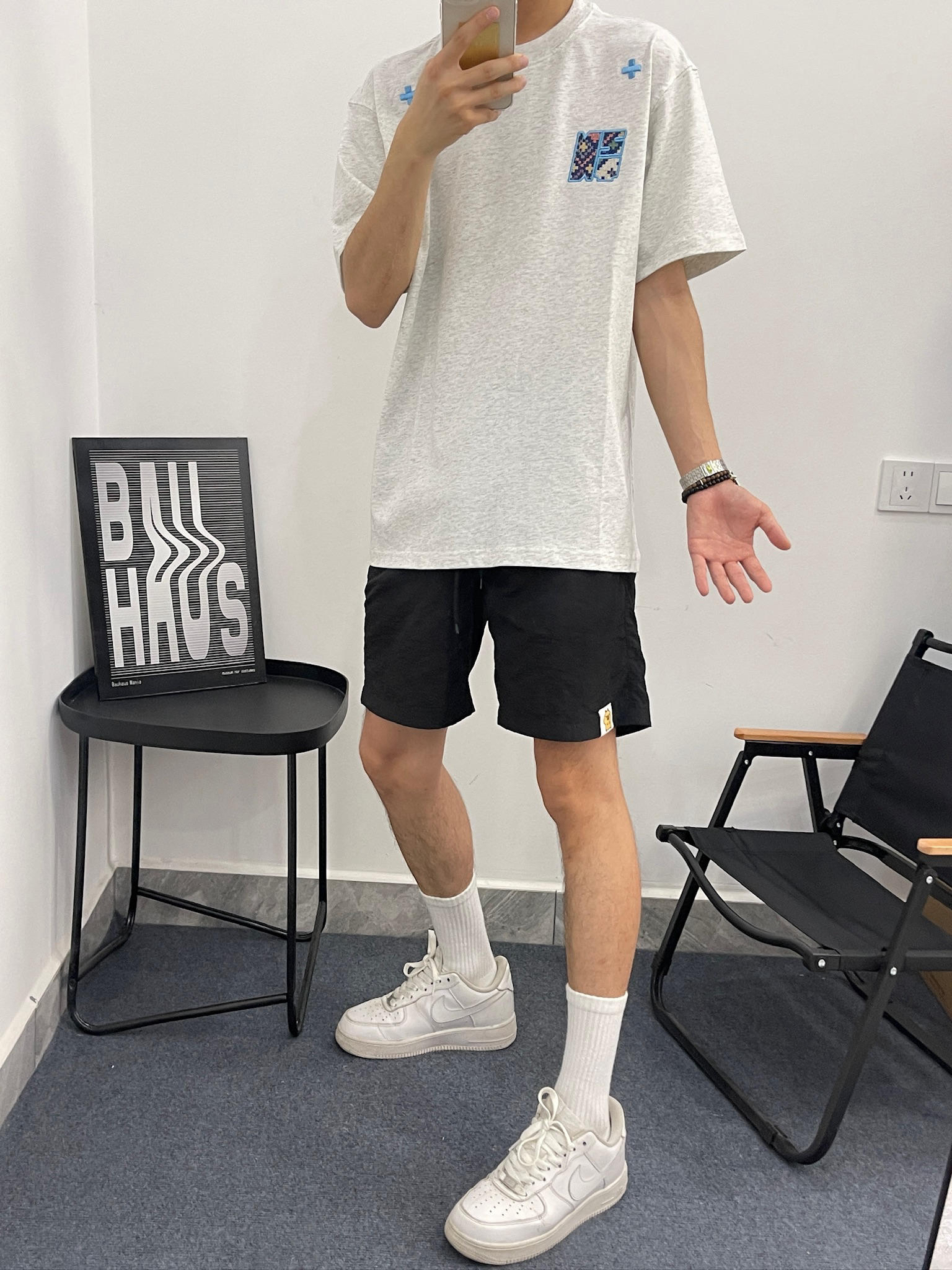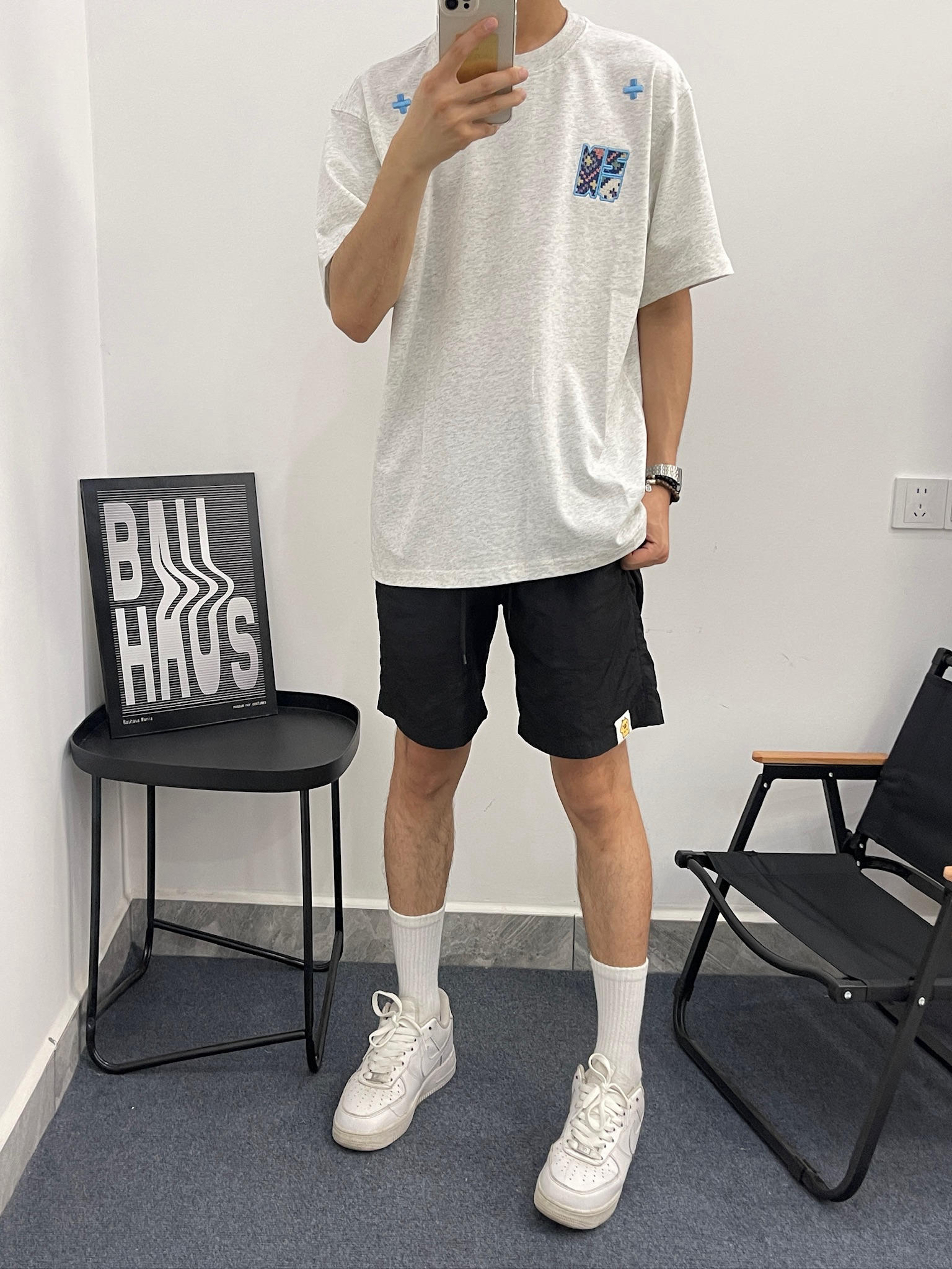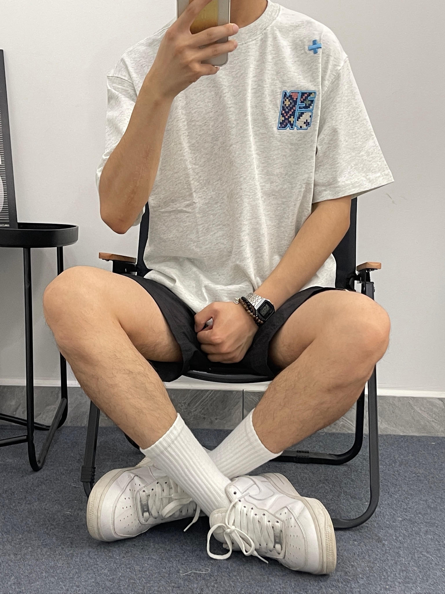 这件浅灰T真的是我近期的心头好😆 面料是那种软软糯糯的,贴身穿巨舒服,一点都不闷。我一般直接搭黑色短裤和白袜球鞋,出门随便一套就很干净,懒人福音了属于是。