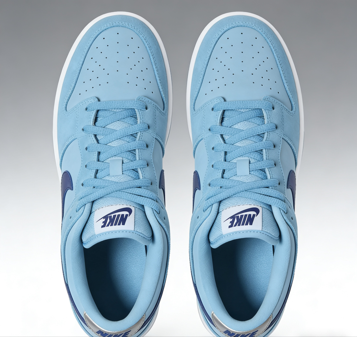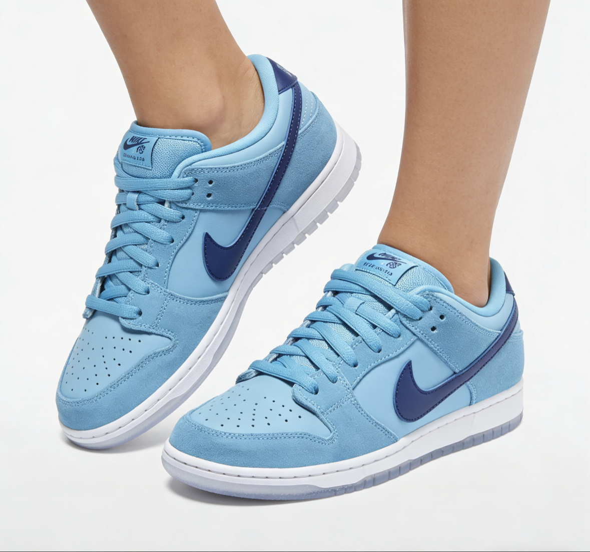 👟 球鞋介绍:Nike SB Dunk Low "Blue Fury"(毛绒蓝) 这双鞋是 Nike SB Dunk Low Pro "Blue Fury"也被玩家称为“毛绒蓝”或“蓝狗”。 • 设计灵感:整体采用明亮的天蓝色麂皮与翻毛皮打造,视觉上像极了动画片《蓝色斑点狗》(Blue's Clues)里的主角Blue,因此也被戏称为“蓝狗”。 • 材质细节:鞋面以柔软的麂皮为主,搭配深蓝色...