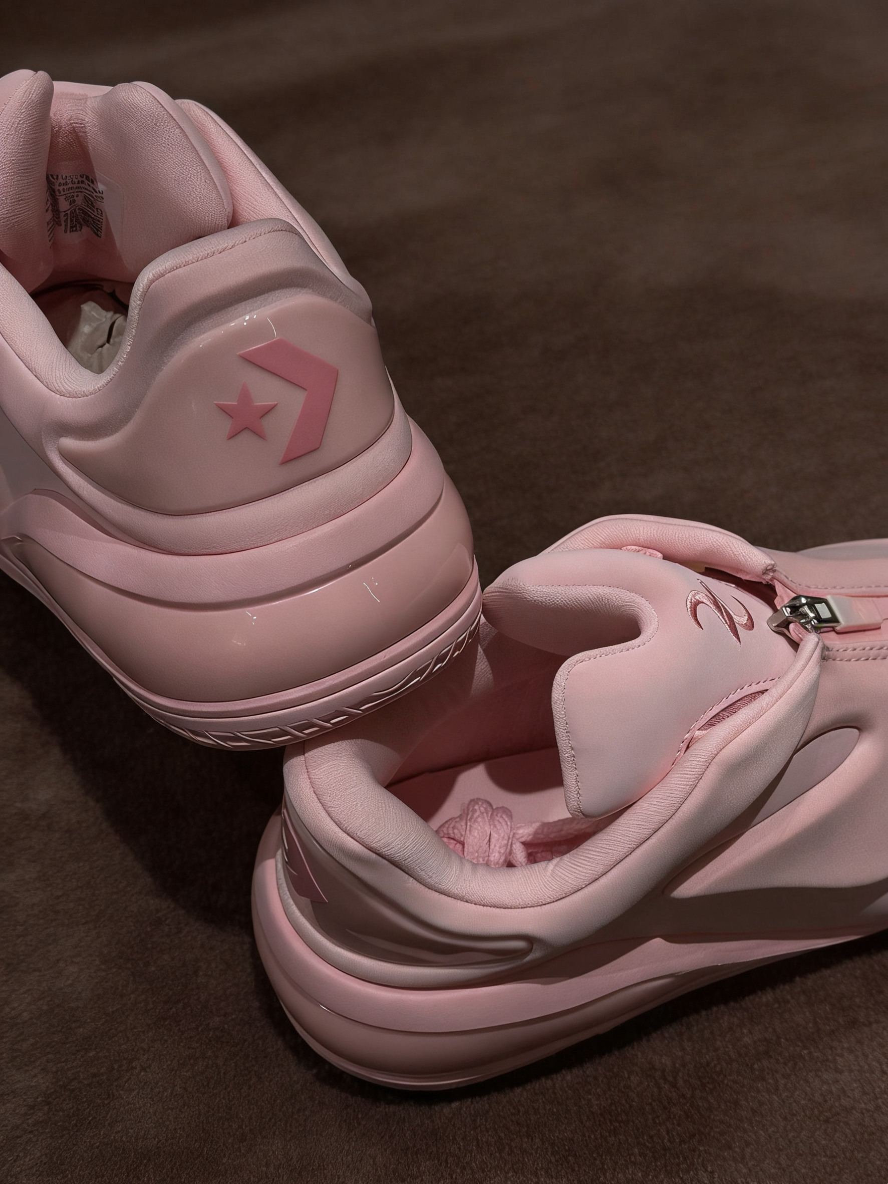 低饱和的柔雾全粉配色,真的完全不挑皮!黄黑皮上脚也毫无压力,不是那种廉价的死亡芭比粉,哑光鞋身质感拉满,高级感直接焊死。 最戳我的就是这个一体式拉链设计!代替了传统鞋带,穿脱巨方便,懒人真的爱死!拉上之后整个鞋身干净利落,没有多余的杂乱感,鞋后跟的同色系星箭标,细节控直接狂喜,完全不破坏整体的温柔氛围感。