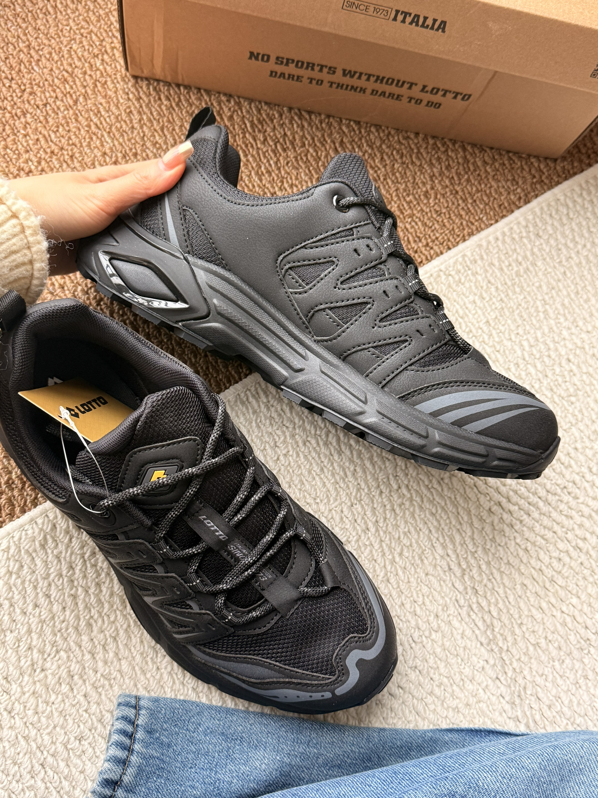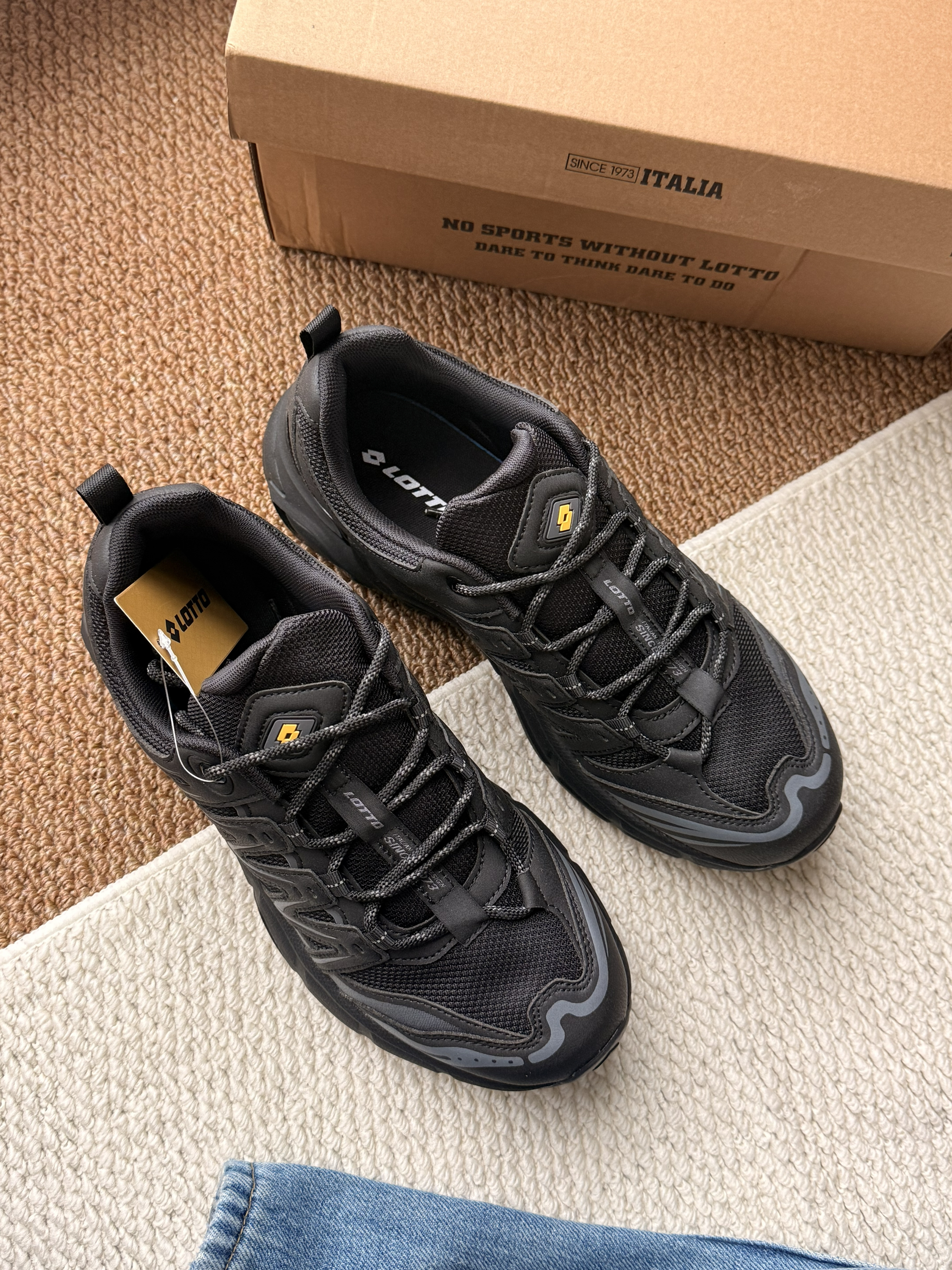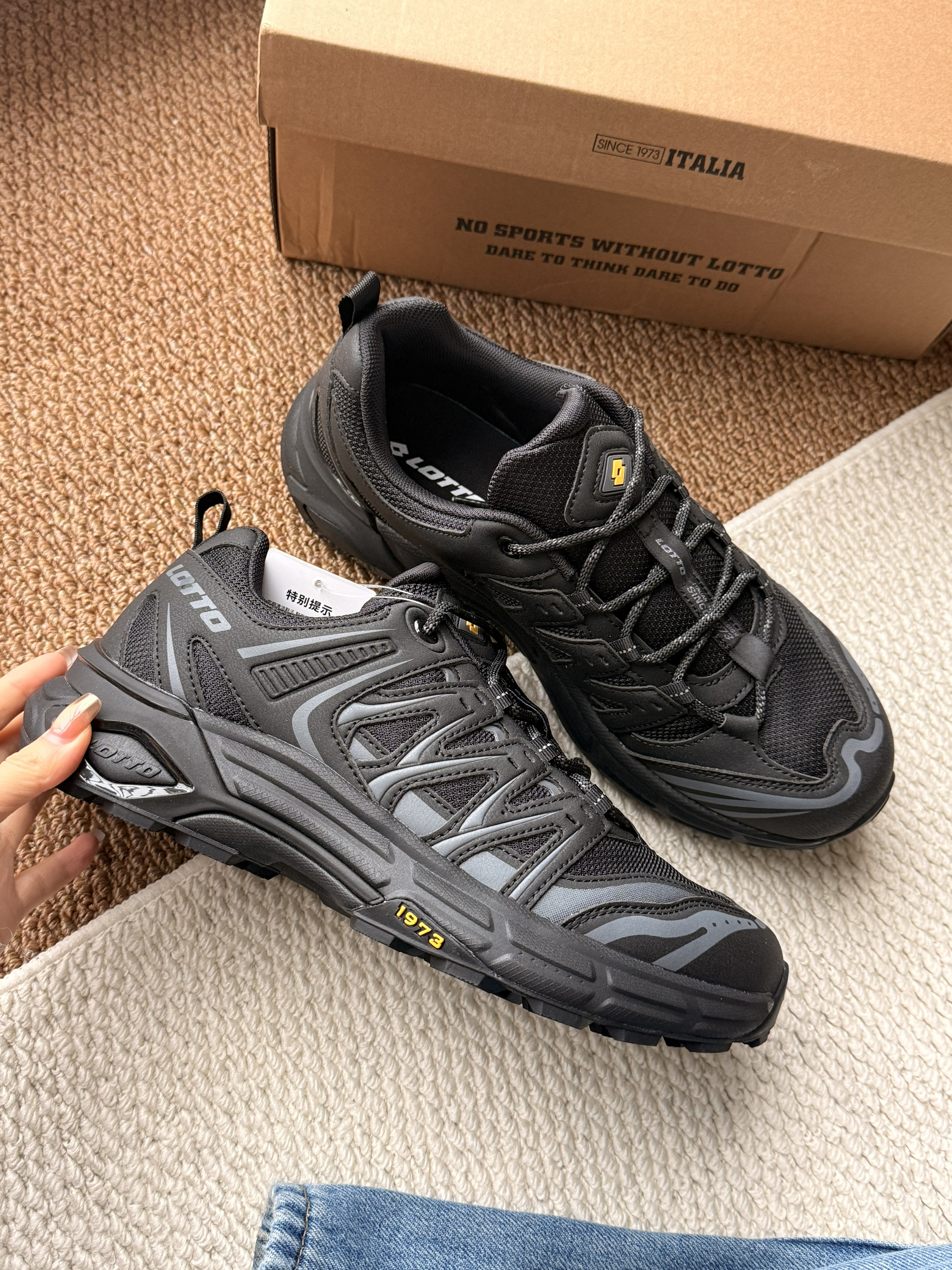这双LOTTO户外鞋真的把“酷”和“实用”拿捏得死死的! • 设计:全黑机能风,线条利落,鞋型偏厚,上脚自带增高效果,配工装裤还是运动装,都能轻松穿出街头感。 • 细节:鞋面是网面设计,透气不闷脚,皮革部分耐脏易打理,鞋底的防滑纹路很深,雨天走路也不打滑。 • 搭配:黑鞋真的是百搭神器,随便搭都不会出错,是那种“出门不用想,套上就走”的鞋。 • 小缺点:鞋型偏厚,夏天穿可能会有点闷,介意的...