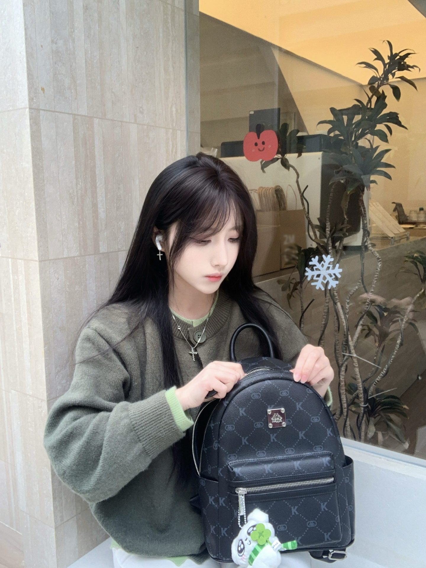 差不多入春啦 提前准备好春系穿搭~ 以往都是以清新浅色搭配为主 这次搭了森绿色的针织衫➕黑色包 结果还不错[惊喜_blue]优雅气质不失甜妹感 背的是 #Kappa 新出的黑色双肩包🎒 老花满印设计 时髦复古又高级~ 而且这次穿搭是绿白搭配 所以挂了个四叶草🍀小狗包挂 整体搭配就很协调啦[强_blue] #情人节送包攻略 #人设穿搭法 #令人心动的outfit #预习一下早春穿搭 #适...