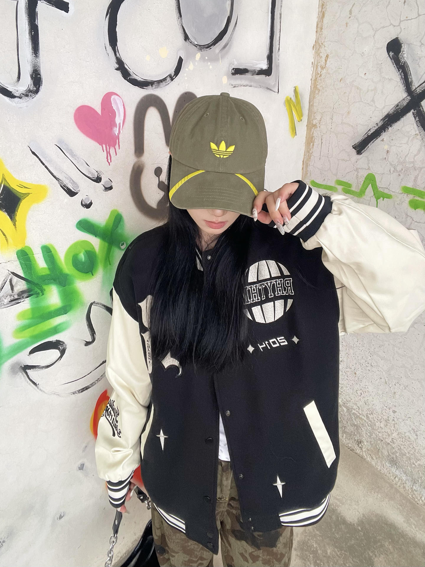 🗣️今日份穿搭分享来啦! 【开学ootd随手记】依旧是百搭神帽--阿迪达斯,很复古的军绿色+黄色刺绣🪡logo,搭配🖤黑白配色棒球服,大面积的图案刺绣很有设计感,妥妥的美式复古氛围📜 日常搭配工装裤或牛仔裤都可以哦,适配性很强,轻松get美式街头风✅