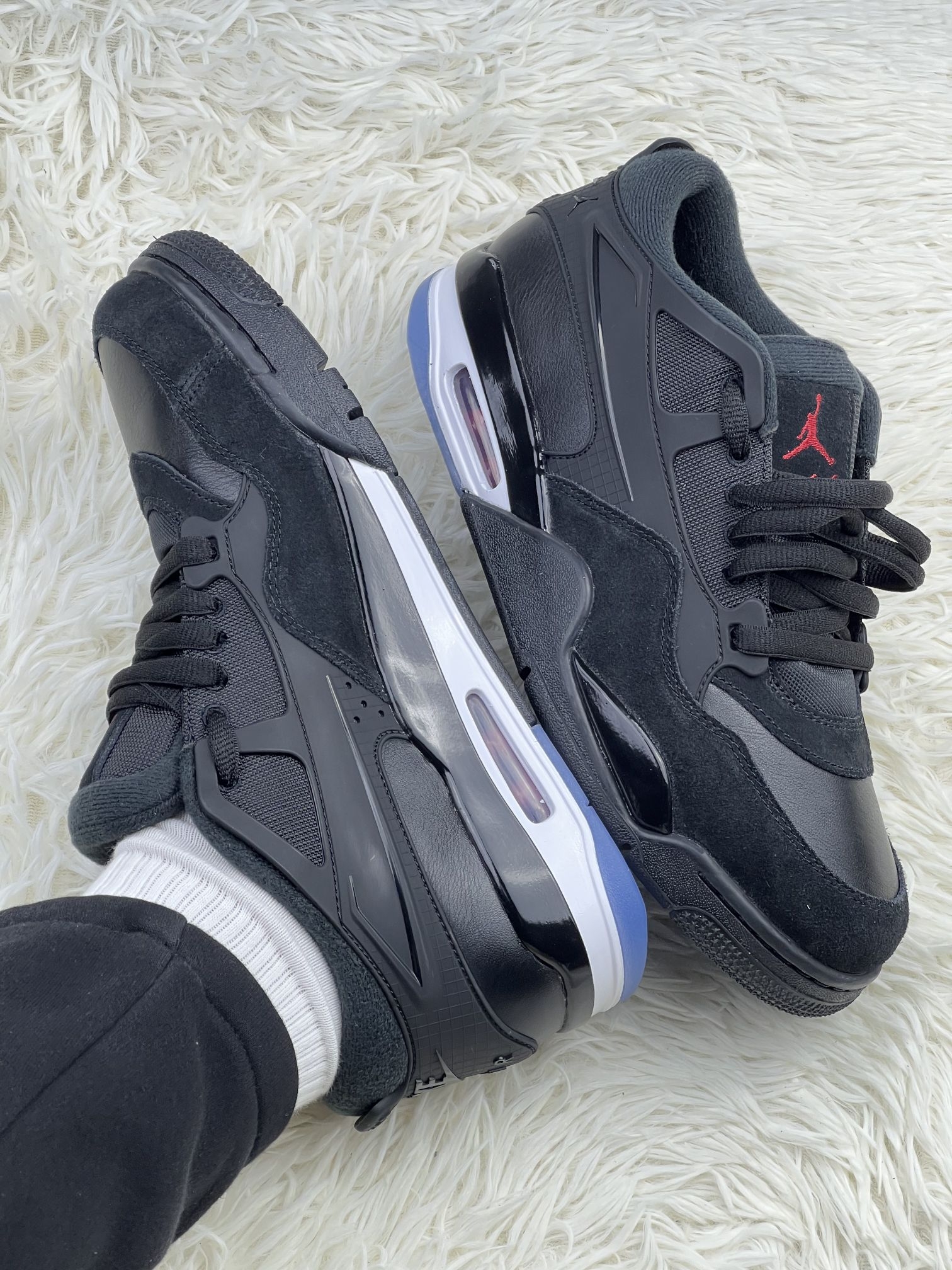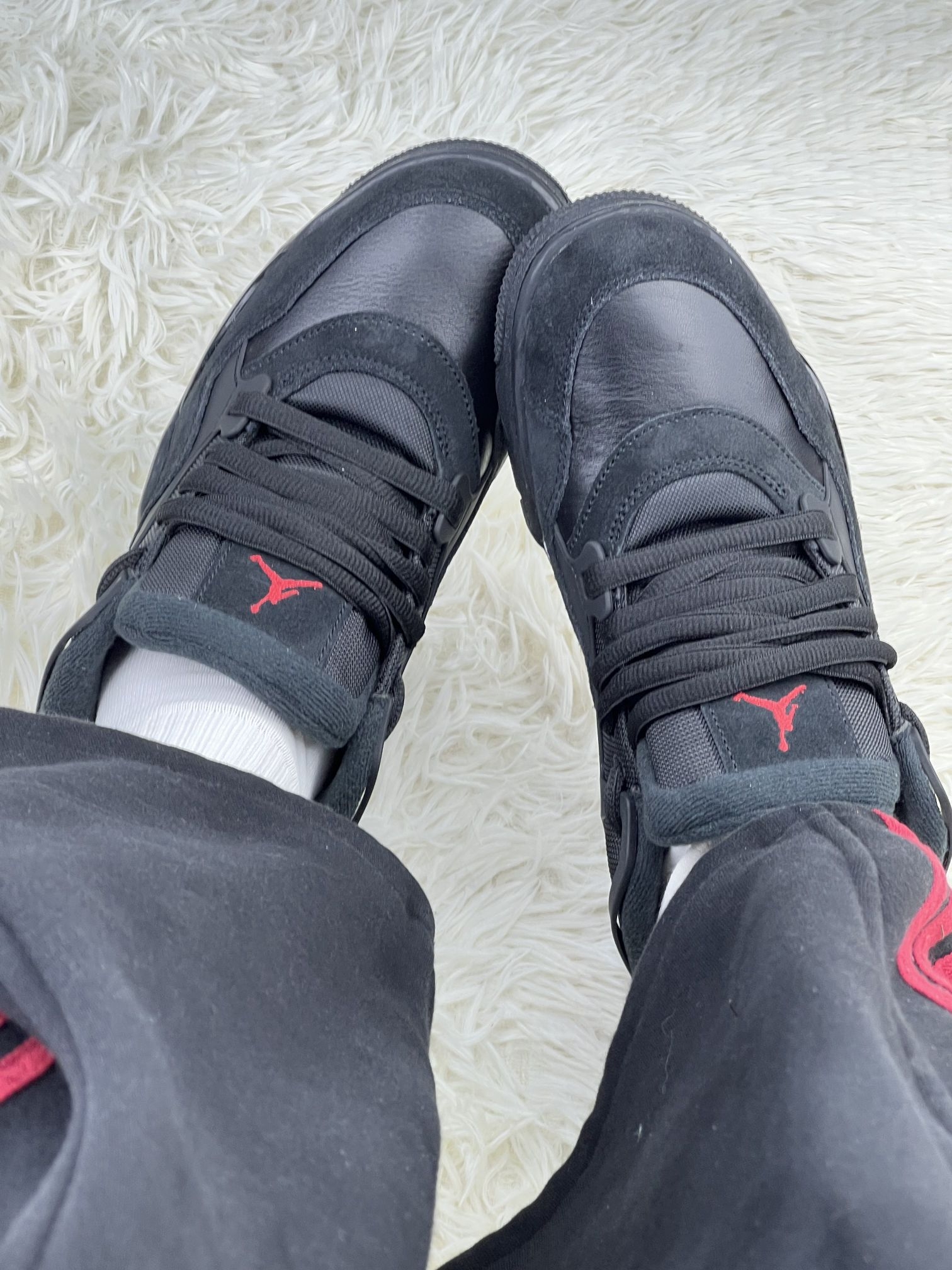 这双Air Jordan 4 RM黑武士,我穿了快两周,说点真实感受👇 优点: - 全黑麂皮+亮漆皮,质感很高级,搭黑裤、牛仔裤都不挑,日常出街回头率不低。 - 中底的Air气垫,走路久了脚感还算软,比老款AJ4舒服不少。 - 鞋型偏利落,不会显得脚很笨重,我这种脚宽的人也能驾驭。 缺点: - 麂皮太容易脏,稍微蹭一下就留印子,打理起来很麻烦。 - 鞋舌有点薄,冬天穿有...