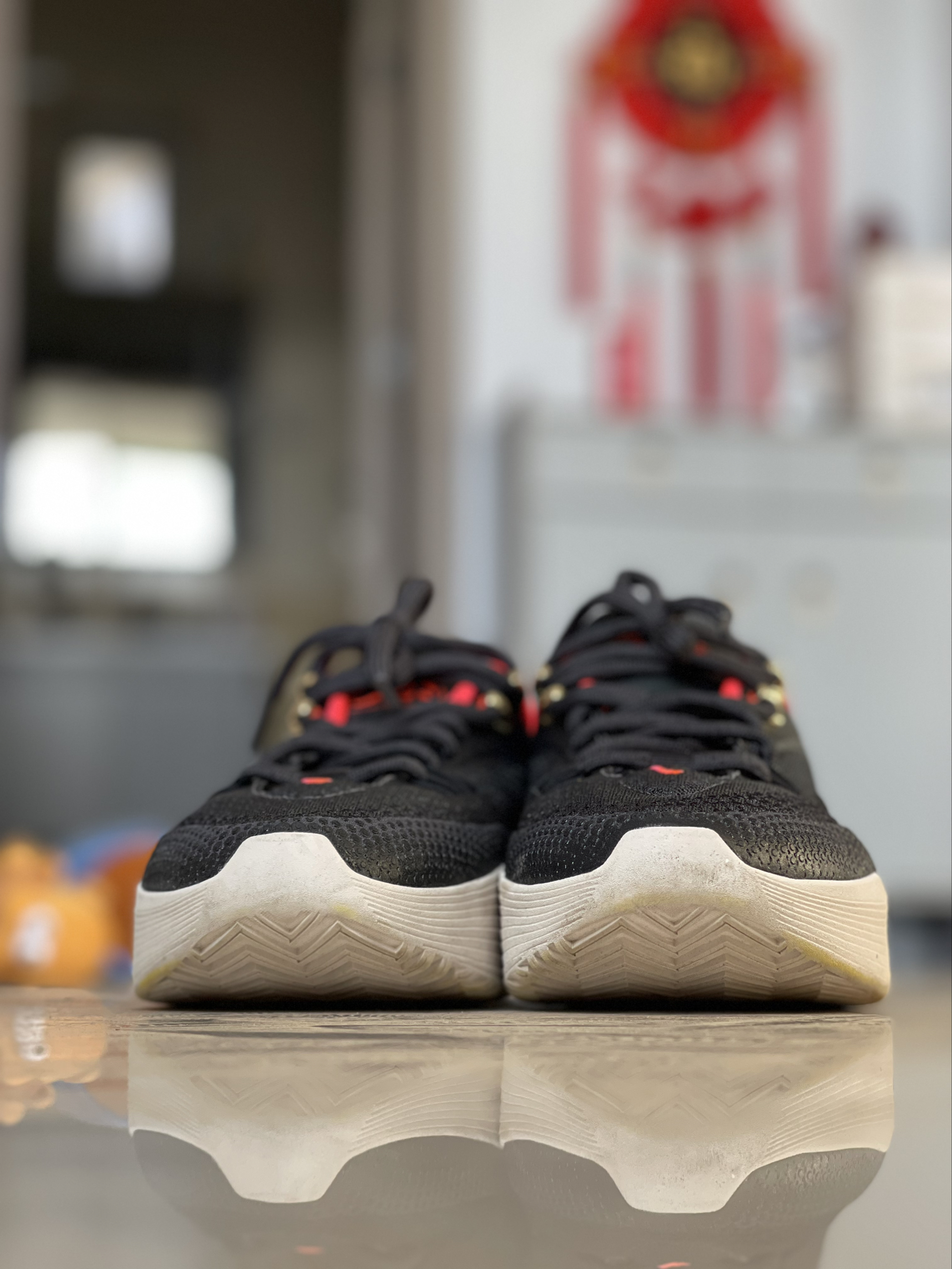 红包经费购入外场利器👟,随便造都不心疼❤️最明显的特点就是鞋底经典的XDR人字纹大底👍不管是内场还是外场,防滑又耐造🏀,缓震采用的是前掌扇形气垫加全掌泡棉,我210斤大体重来说缓震够用😍突破时每一步都踩得很稳,适合我的打法⛹🏻但是突破型后卫可能会觉得有些重心偏高‼️鞋面是编织网面舒适度和透气性一流🤩我最喜欢的就是后跟像两颗毒牙似的设计,鞋码不偏正常选择即可🦶大家更喜欢低重心还是缓震呢🤔?一起探讨吧...