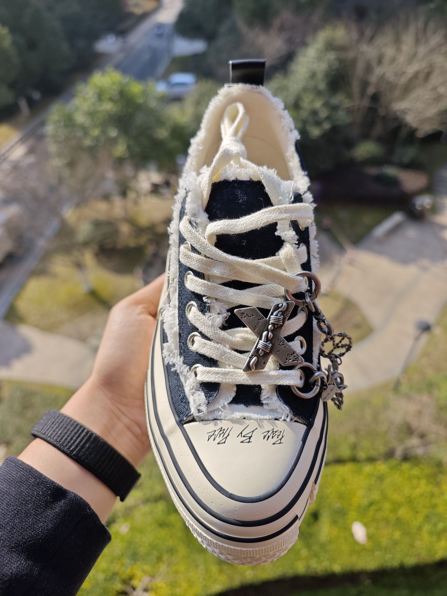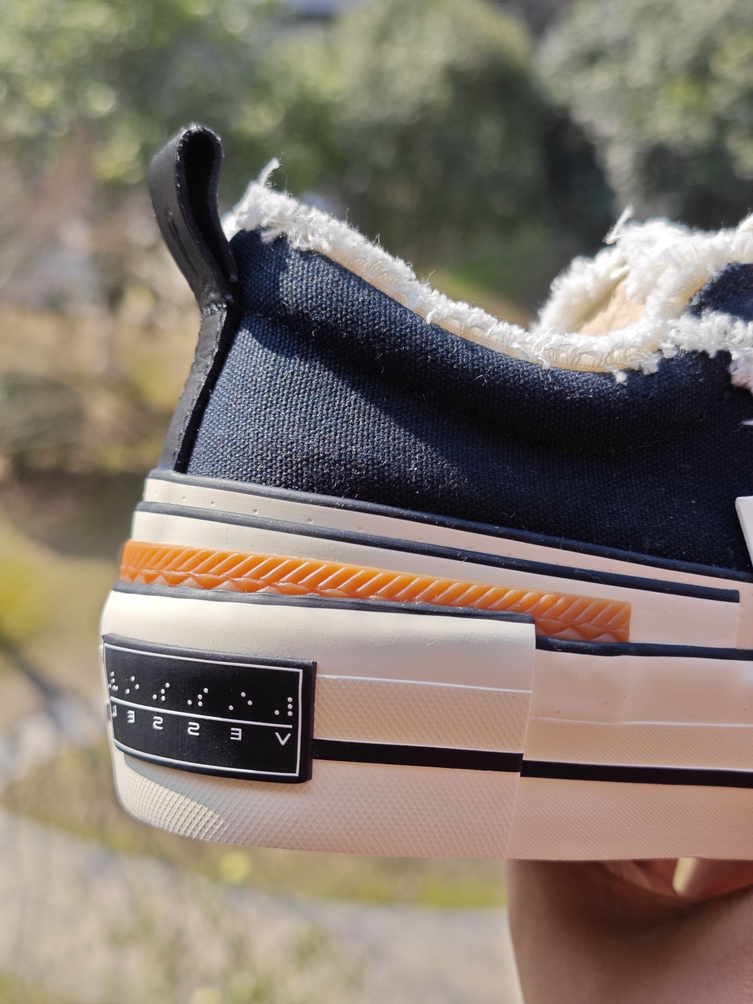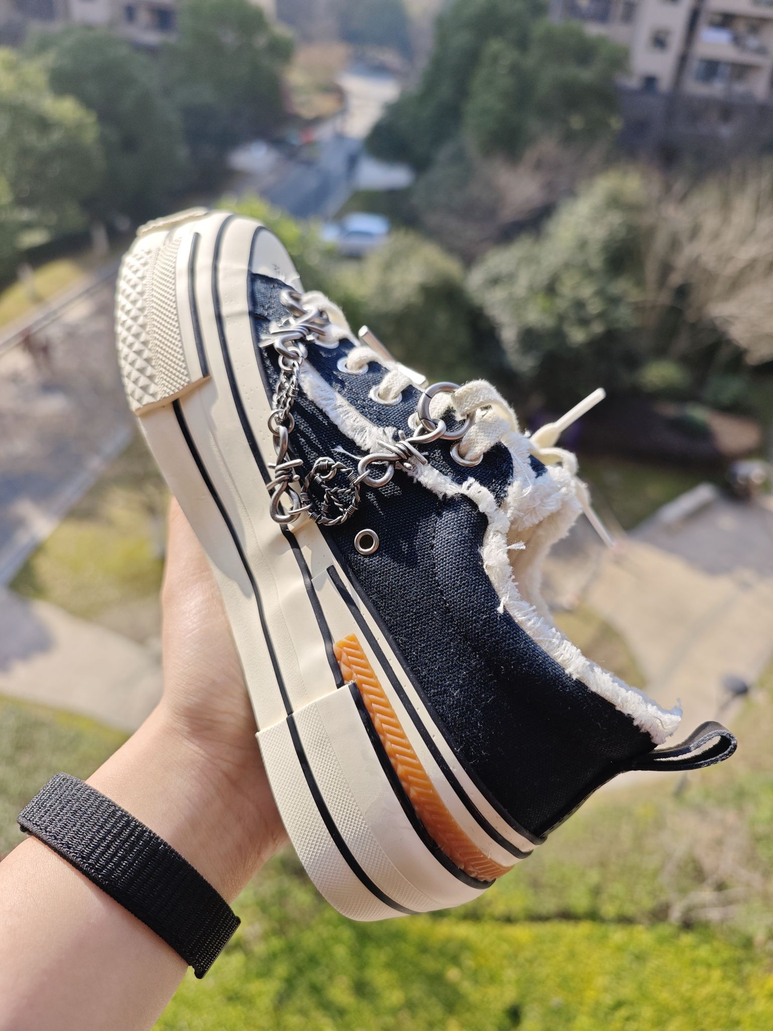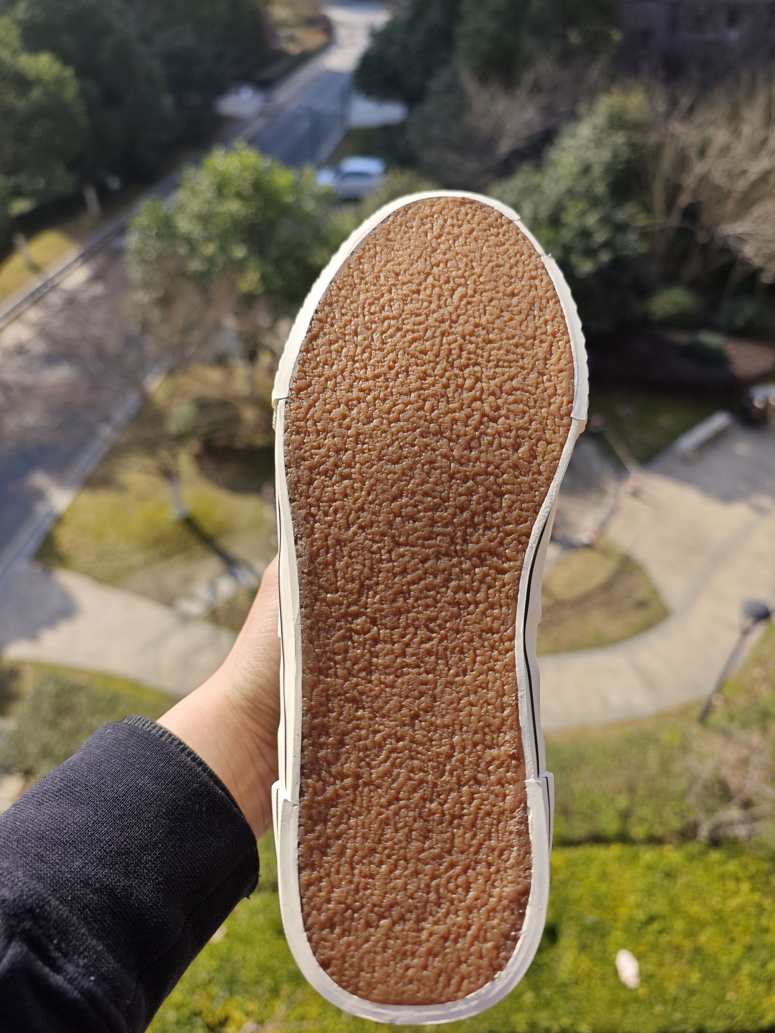 👀虽然这是一双四季板鞋,但是春日穿板鞋才是最适合的季节 硫化大底,脚感相较于一般的板鞋,有大大的提升,这么弹的板鞋你肯定没有穿过 内增高,相当的夸张,4公分左右,对于我这个矮子来说,太合适了。鞋跟处加了块生胶,形成提拉米苏的形状,其实不懂这个鞋的,很难知道这是一双这么增高的鞋子 黑白配色的板鞋,真的是百搭的,现在价格也下来了,你的鞋柜里值得有这一双提拉米苏的