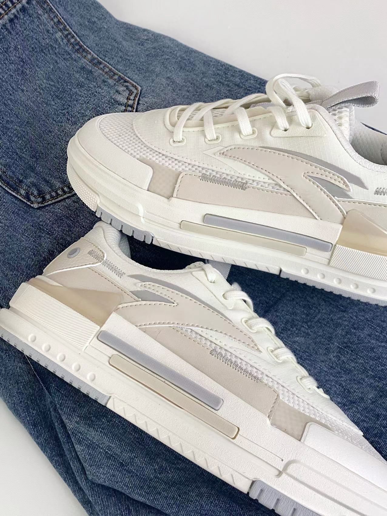 安踏这双“奶fufu”板鞋戳中了! 低饱和配色高级又耐脏,拼接鞋面质感拉满,厚底增高不笨重,走路软弹不累脚。 日常通勤、约会出街都能穿,简约又耐看,国货真香现场👟