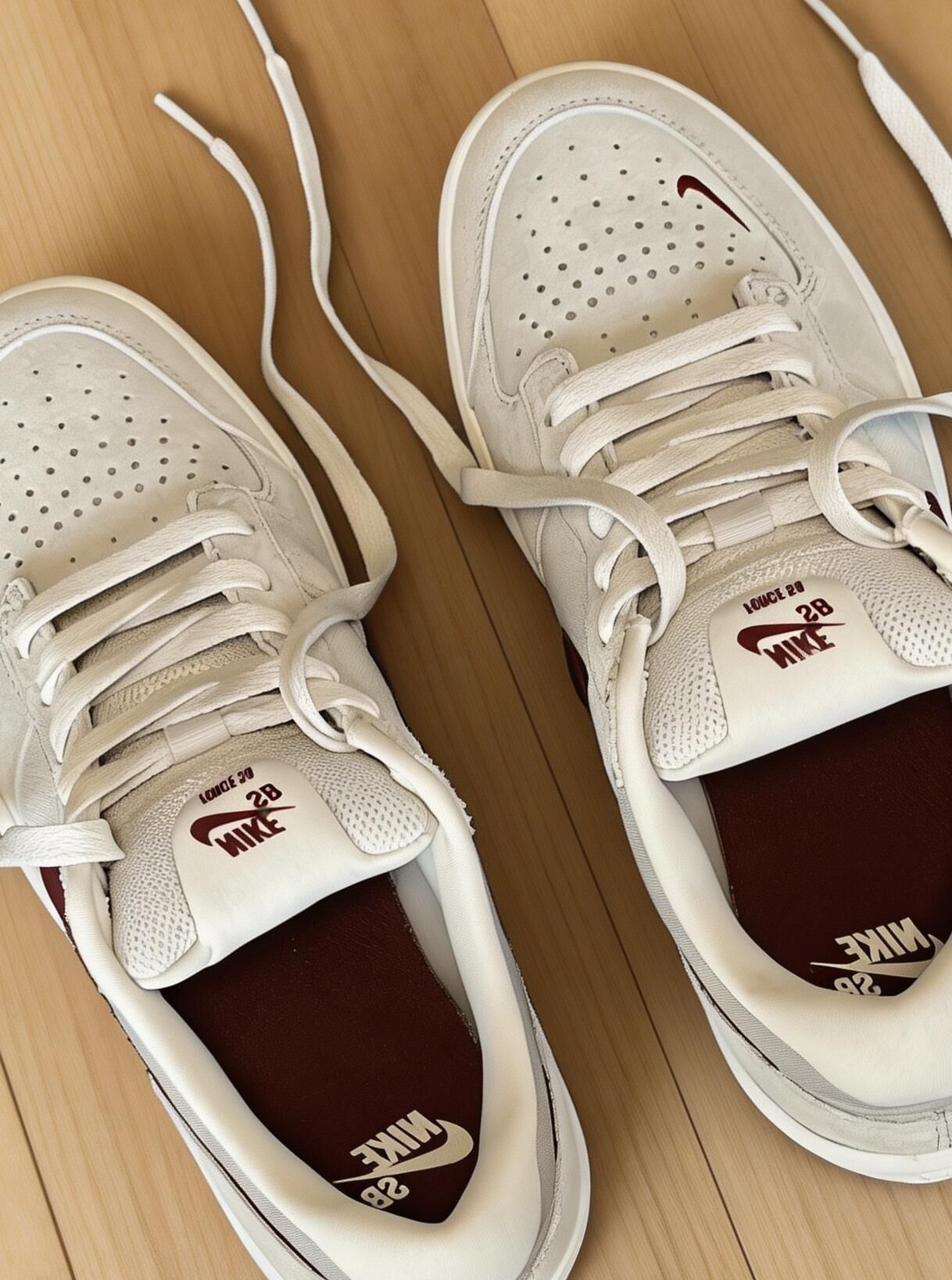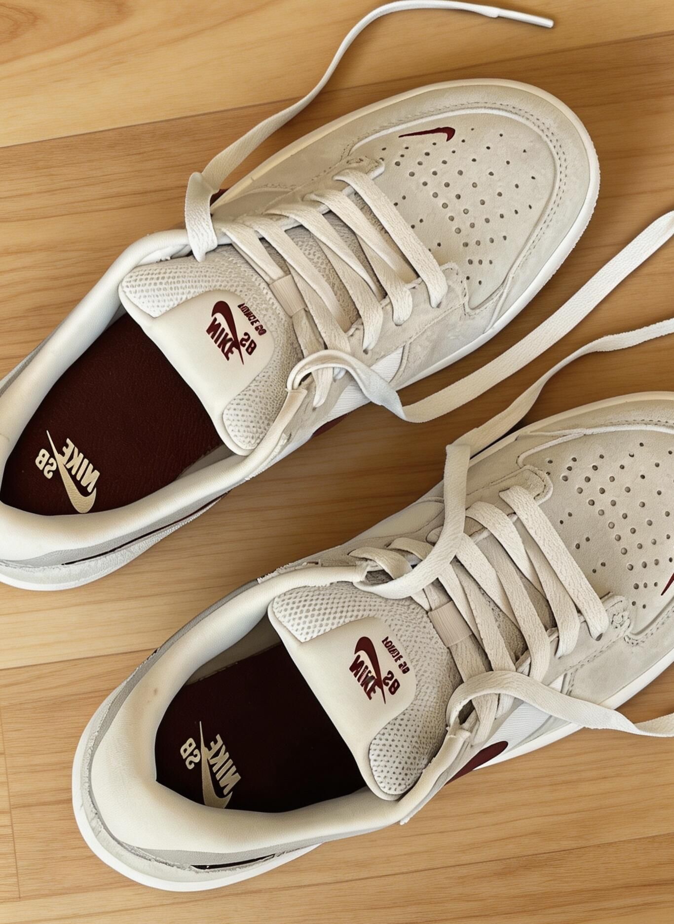 浅灰配原木,滑板鞋的松弛感拿捏!滑手必备 新鞋到啦,浅灰麂皮搭酒红细节,踩在原木地上很有质感✨ 生活就像这双鞋,慢慢磨合才合脚,每一步都踏实自在,继续向前冲🐾