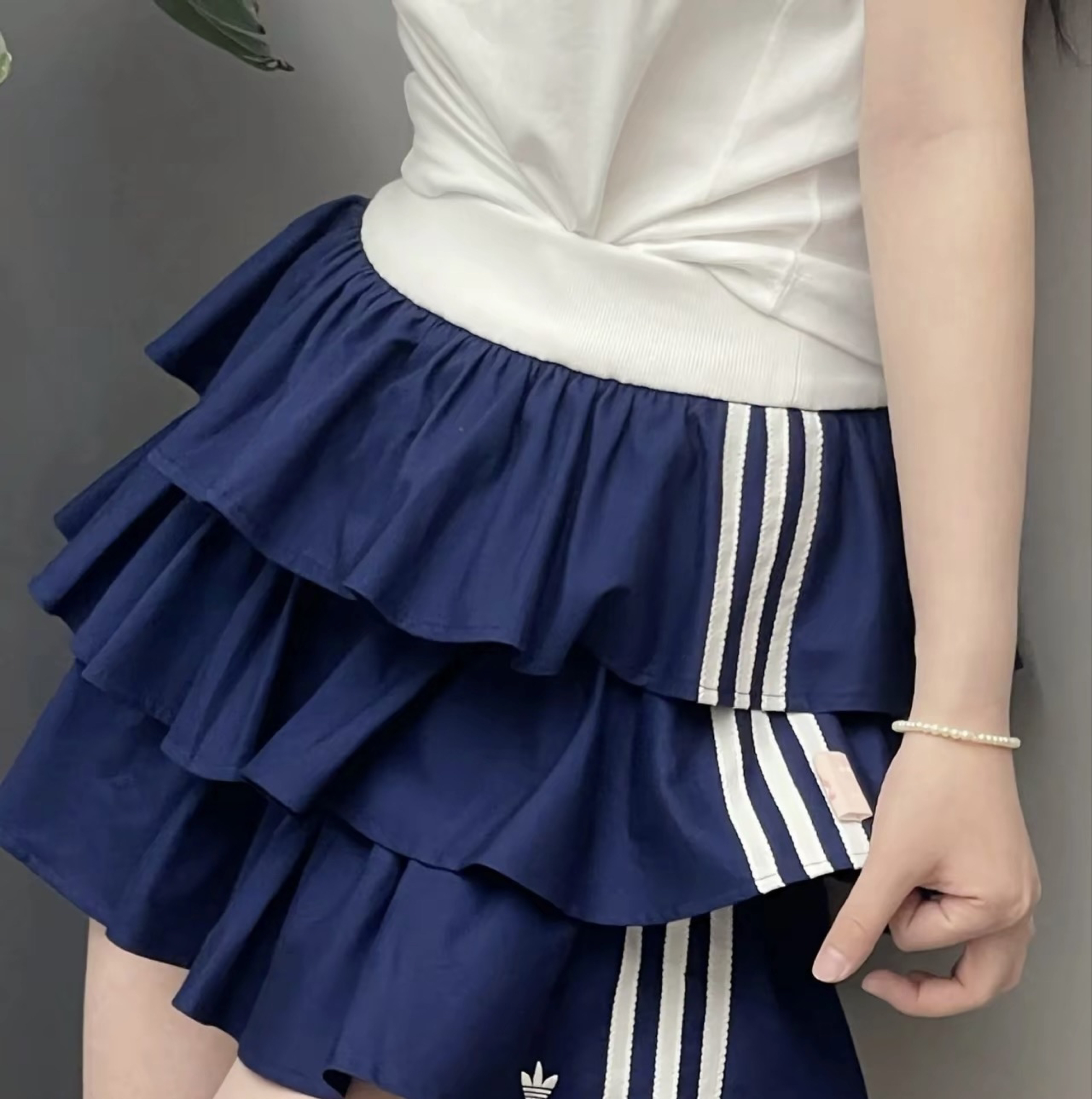 这条Adidas三条杠蛋糕裙版型超赞,多层荷叶边设计巧妙遮肉显瘦,藏蓝配色复古又显白,甜酷少女感轻松拿捏,日常出街超吸睛!