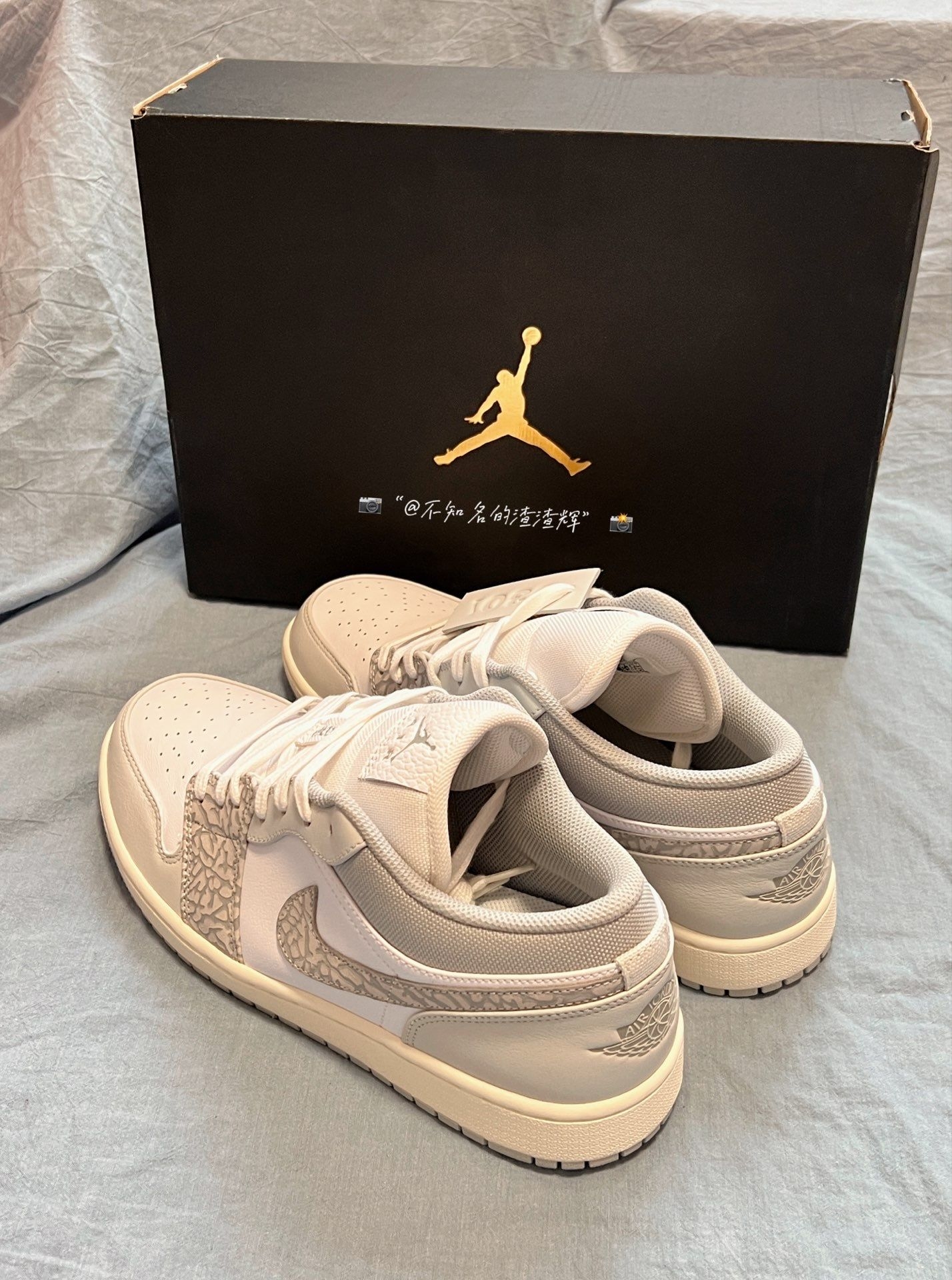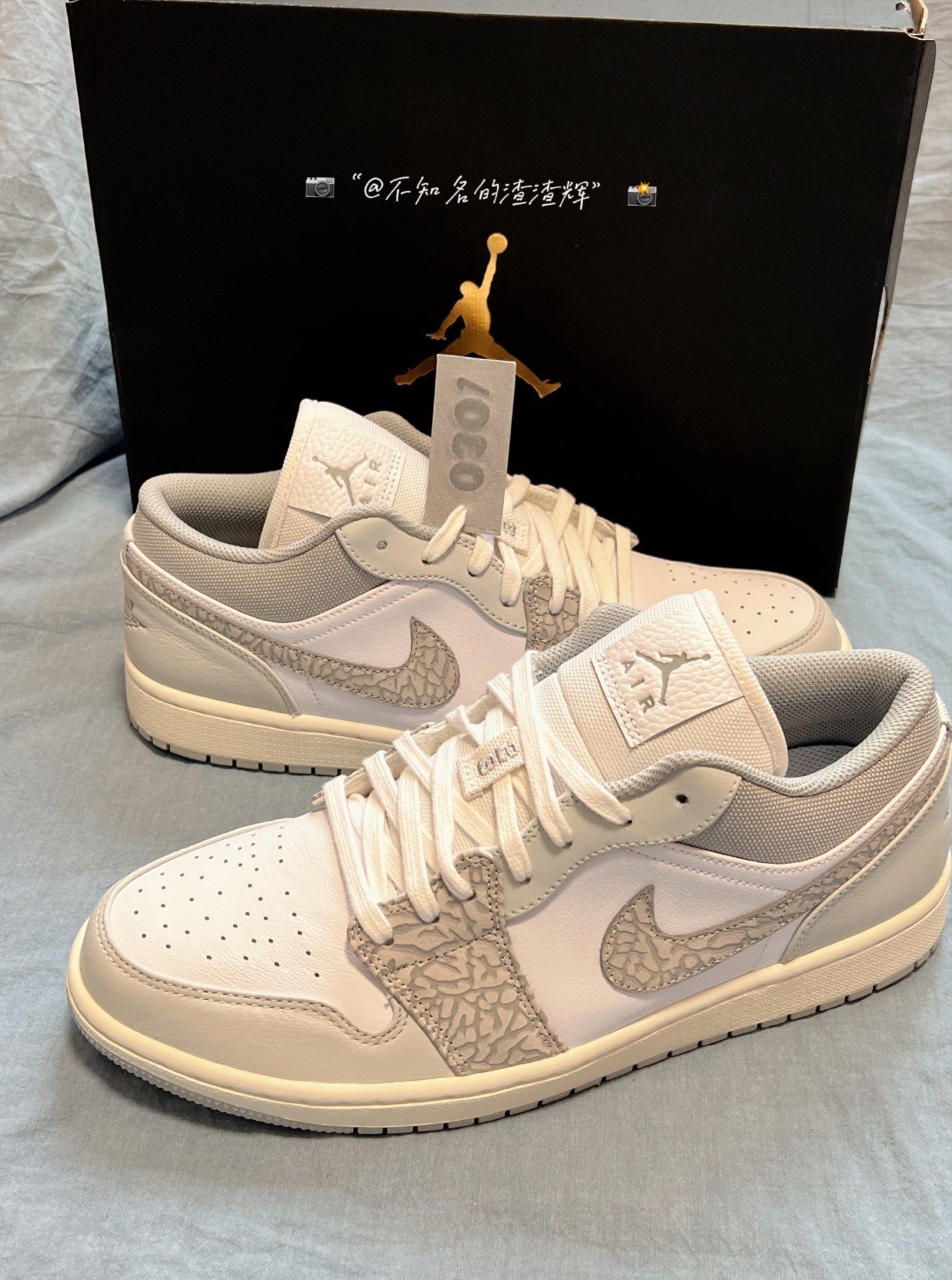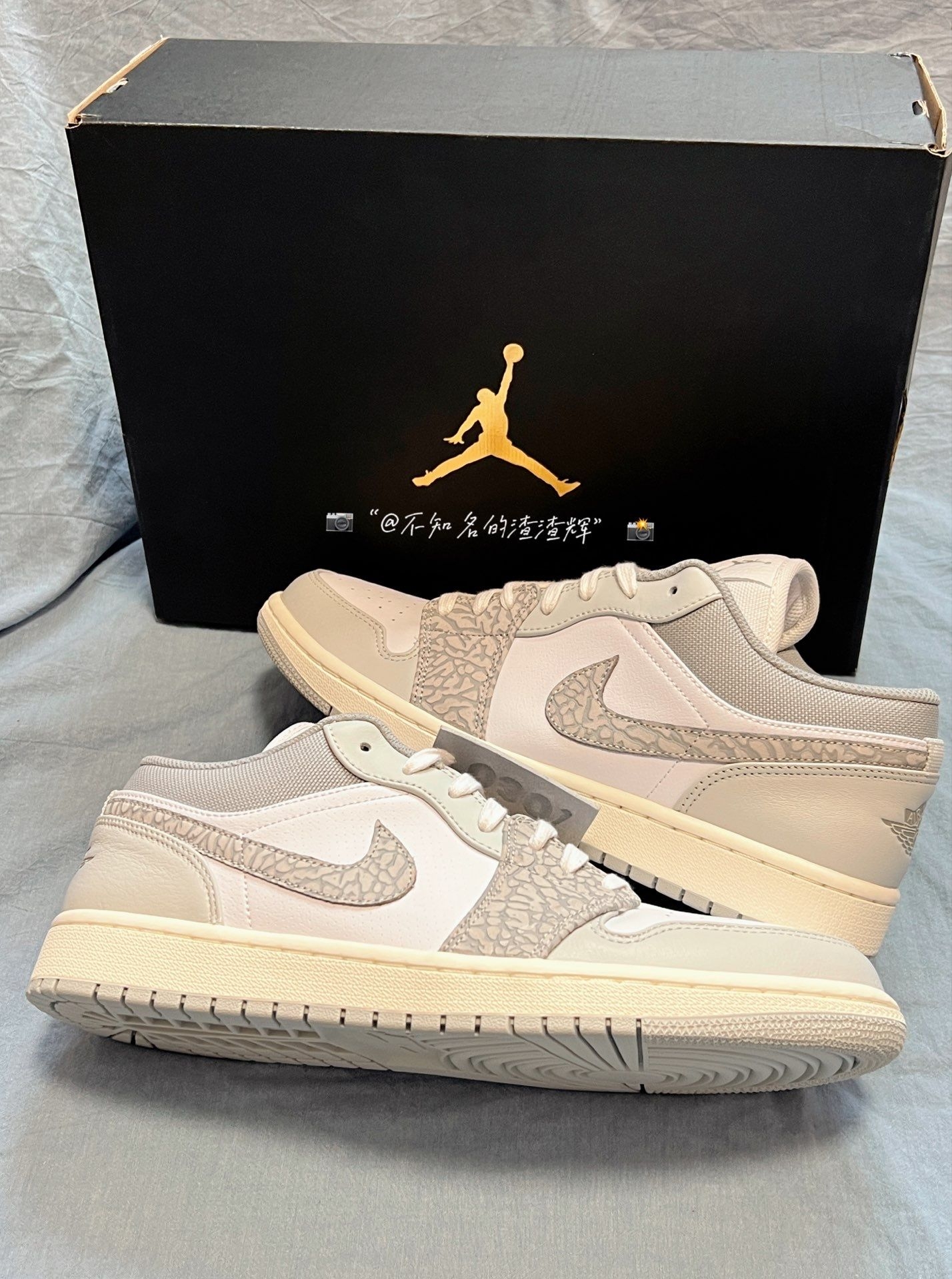 💫:Air Jordan 1 Low PRM“Elephant Print”柏林限定 白灰 爆裂纹 💫:这双鞋子整体以白灰为主色调,鞋身Swoosh采用爆裂纹设计,非常炫酷,鞋舌、鞋垫都有着乔丹飞人标志,后跟有着飞翼Logo,鞋身采用优质皮革材质,质感舒适 💫:不得不说这双鞋子的颜值是真的顶,上脚巨好看,而且很好搭衣服,就是价格方面比较贵 💫:尺码推荐:正常尺码