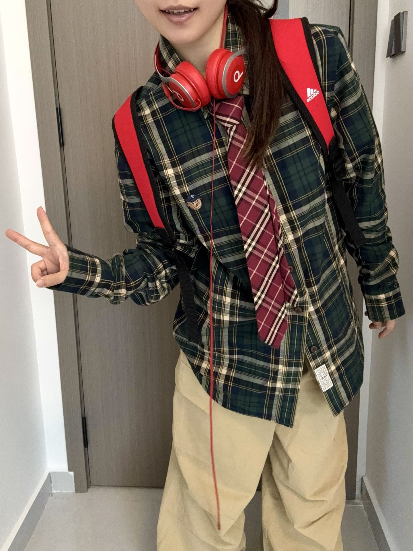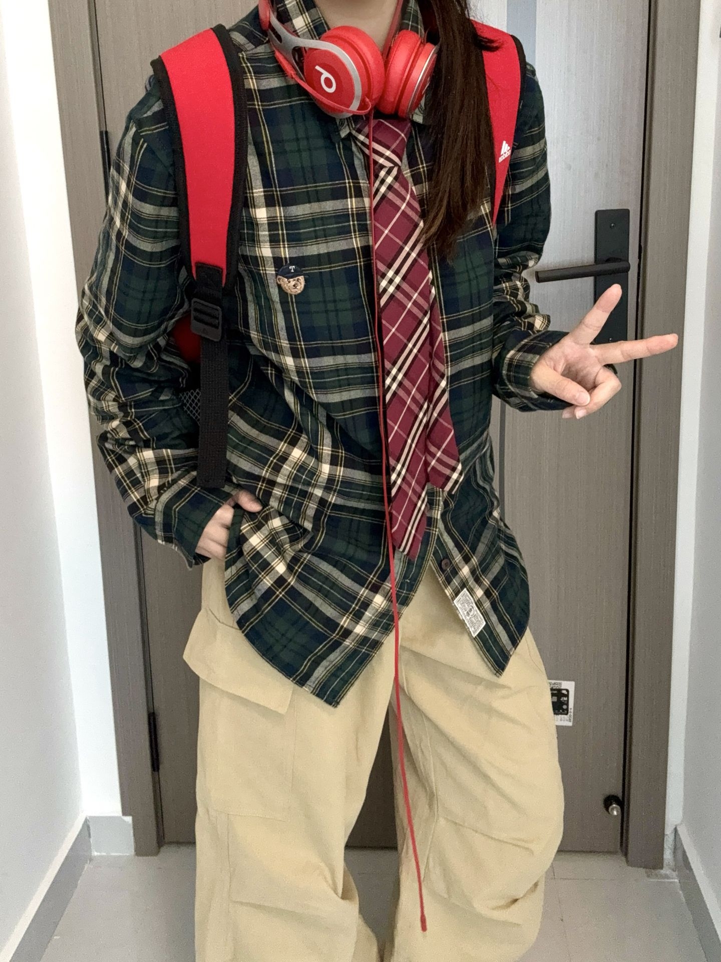 小孩姐今天一身还蛮中学校服style嘛 小熊格纹衬衫校园感满满~ 搭配纯白夹克初秋入学咱就这么穿 回头率蛮高哦! #你懂我的穿搭 #约会穿搭硬通货 #我的街头vibe衣橱 #情侣穿搭配色指南 #假日限定穿搭状态