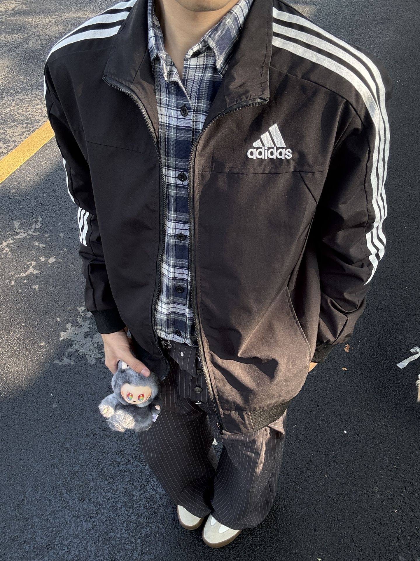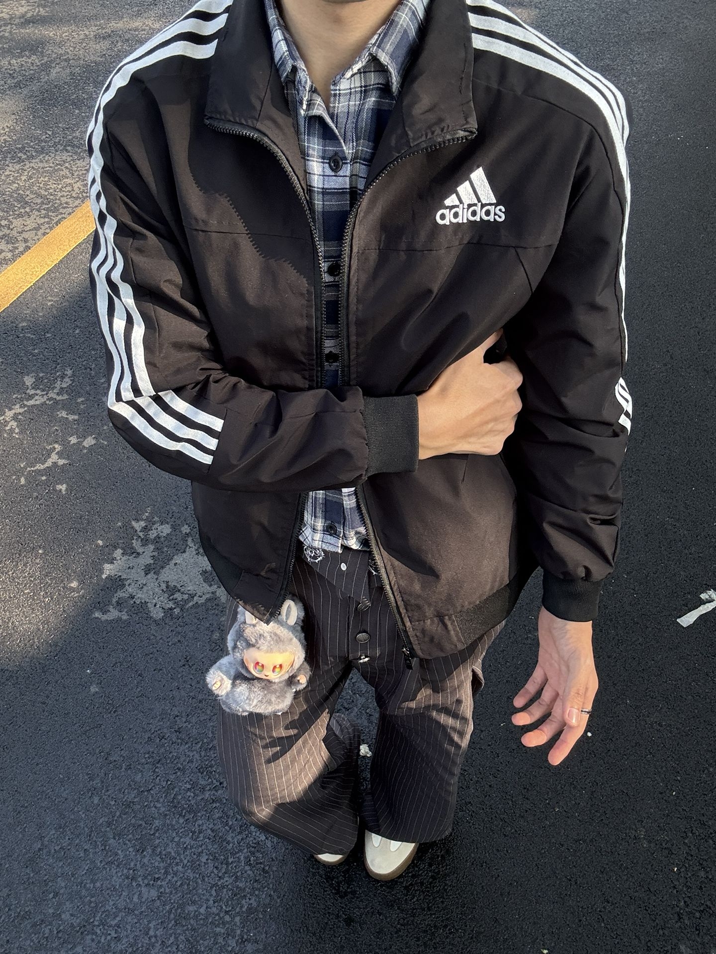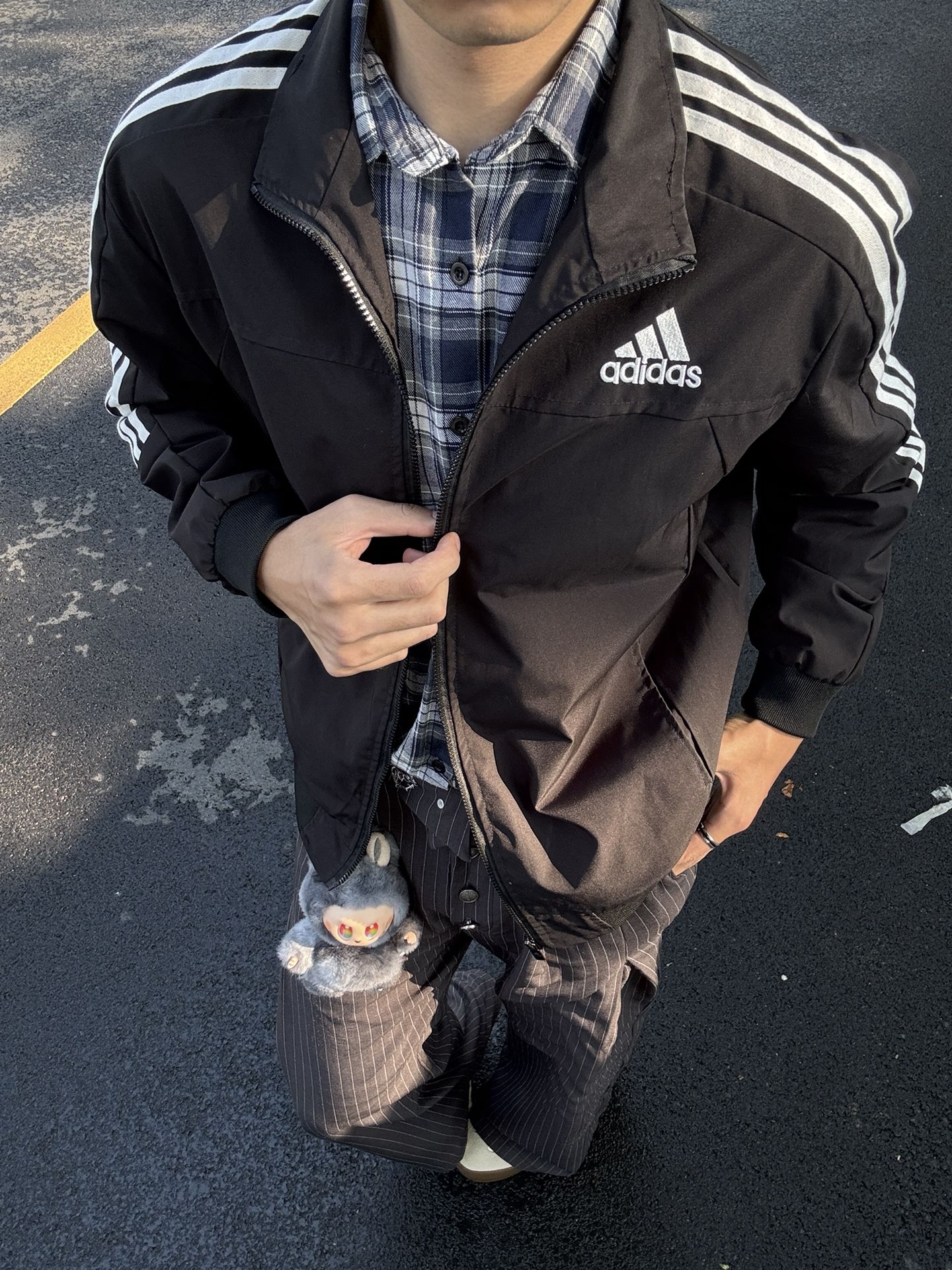 今天出门一套简约舒适穿搭,上身一件黑色阿迪三条杠外套,裤子是宽松版的剑道裤,整套上身挺舒服的,日常通勤这样搭还不错~#今日穿搭阿迪达斯外套