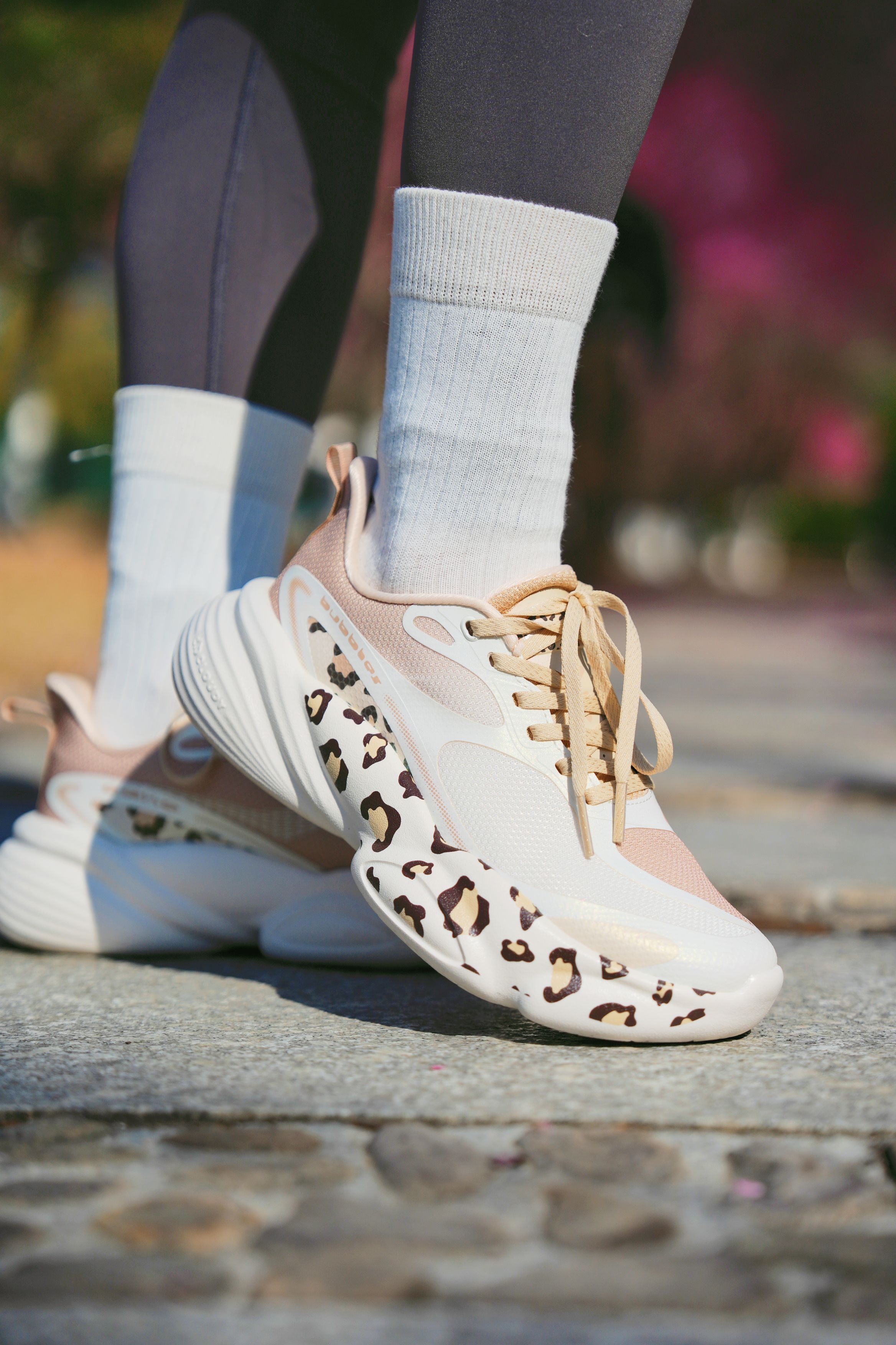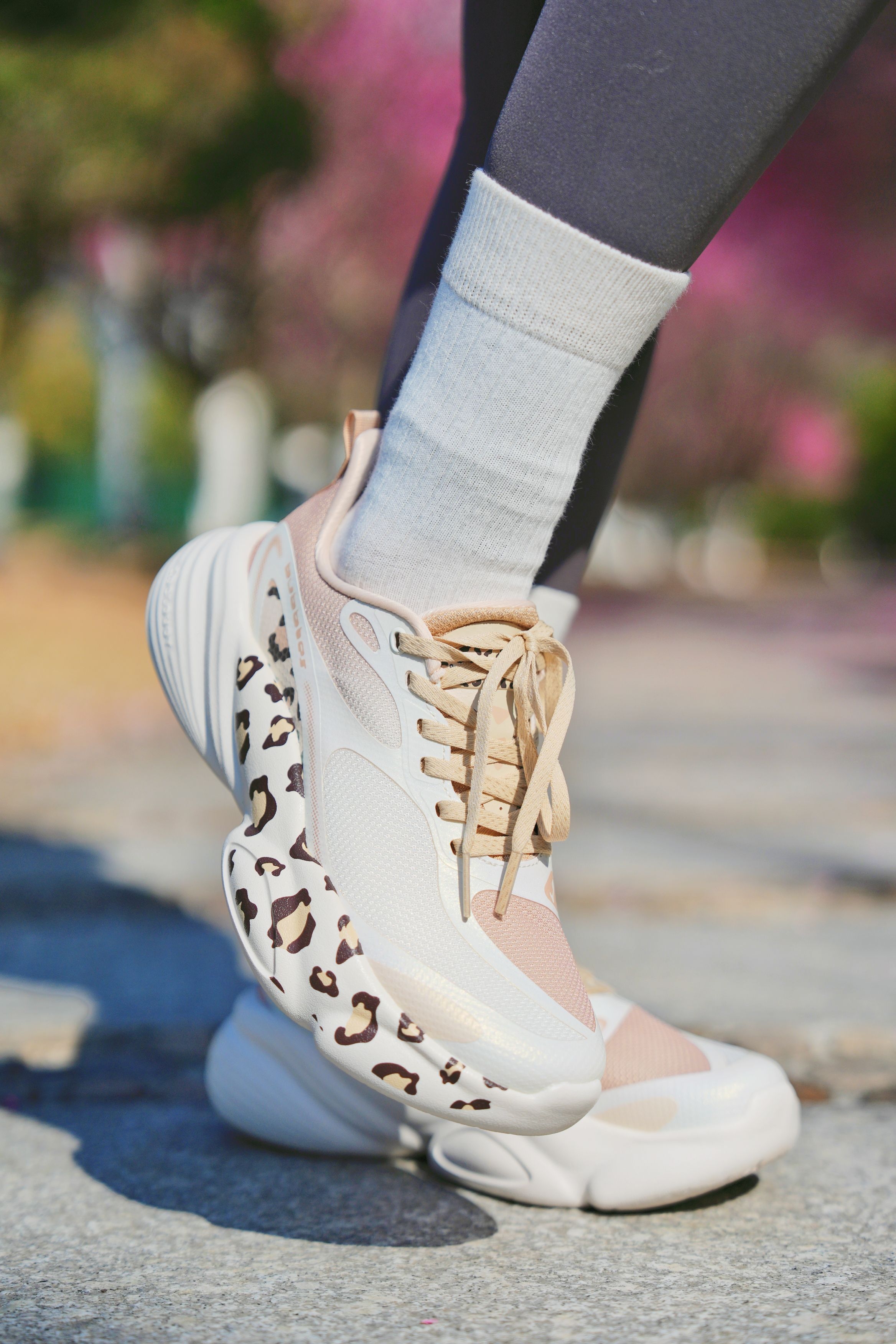 春天的风太舒服啦,换上新装备去樱花树下跑一跑~ 今天穿的是鸿星尔克啵啵弹4.0,未漂原色奶茶棕+豹纹设计,甜酷又吸睛。厚底软弹,跑起来像踩在啵啵奶冻上,轻便又跟脚,日常通勤也能穿,防滑耐磨,各种路面都hold住~ 阳光、樱花和脚下的回弹感,是春天给的治愈呀✨