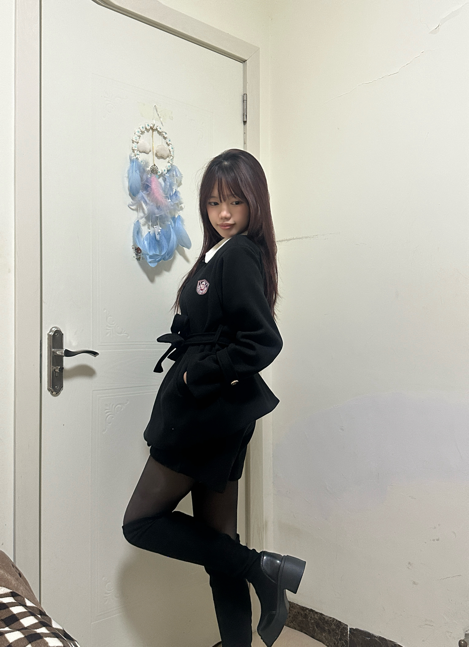身高|体重:160 90 🧍♂️ 穿搭风格:学院御姐风 👔 上衣:西装上衣 👖 下装:西装短裤➕黑丝 👟 鞋子:短绒过膝长靴👢