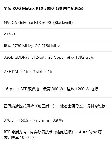 💡目前60系没上市,50系到顶也就是5090了,5090的版本很多,谁才是最强王者?今天看看御三家的各家顶流5090 ✅华硕家的顶流是ROG30周年纪念版,具体参数就不赘述,大家看图。全球限量1000台,目前国内行货都是带D的24G显存阉割版,不过国人的能力大家是了解的,1000台起步要给干回来500台,买张显卡花两三万怎么可能买阉割版。 ✅技嘉出的顶流是5090水雕,没啥特色,也没搞限量啥的,求...