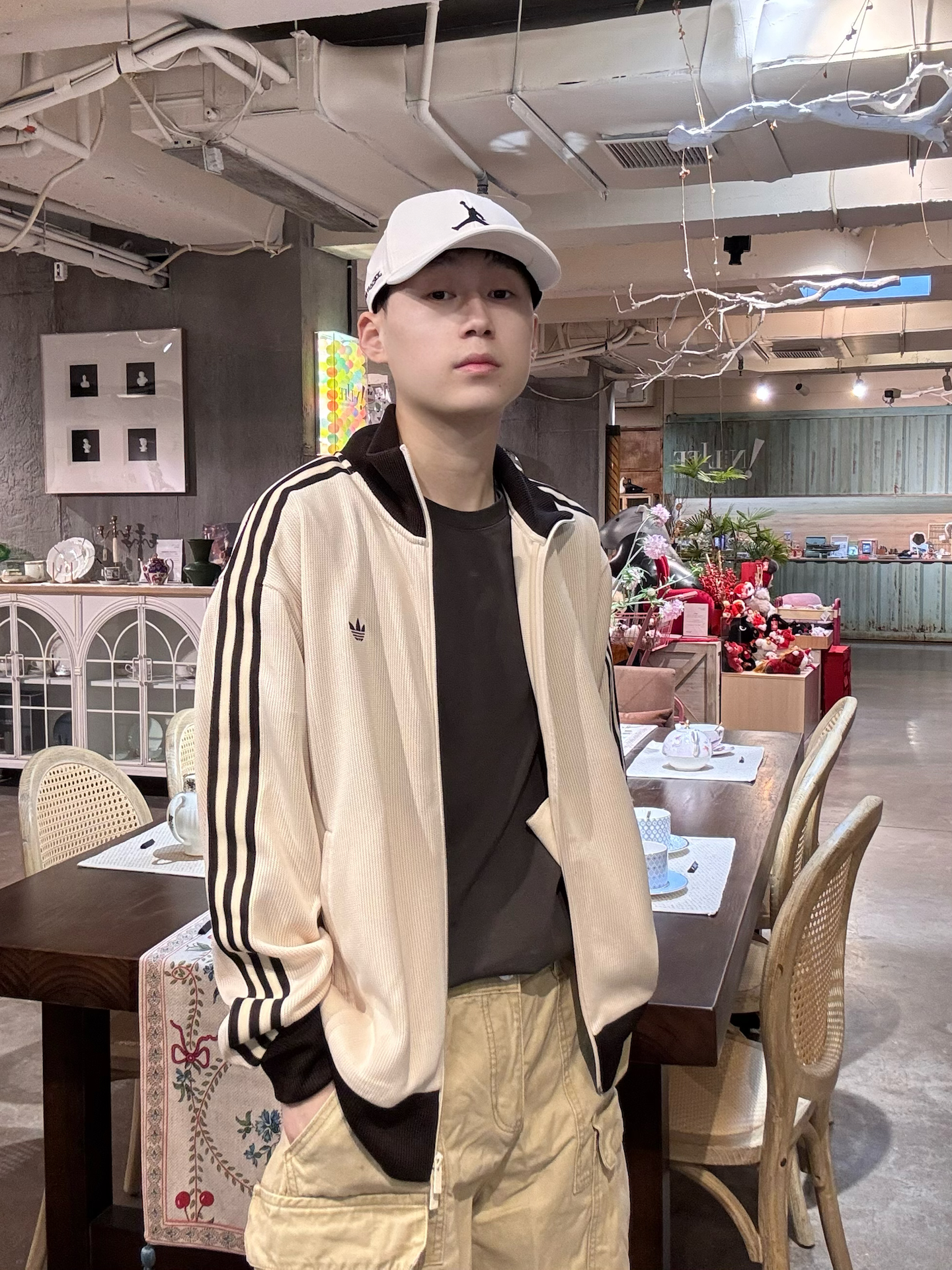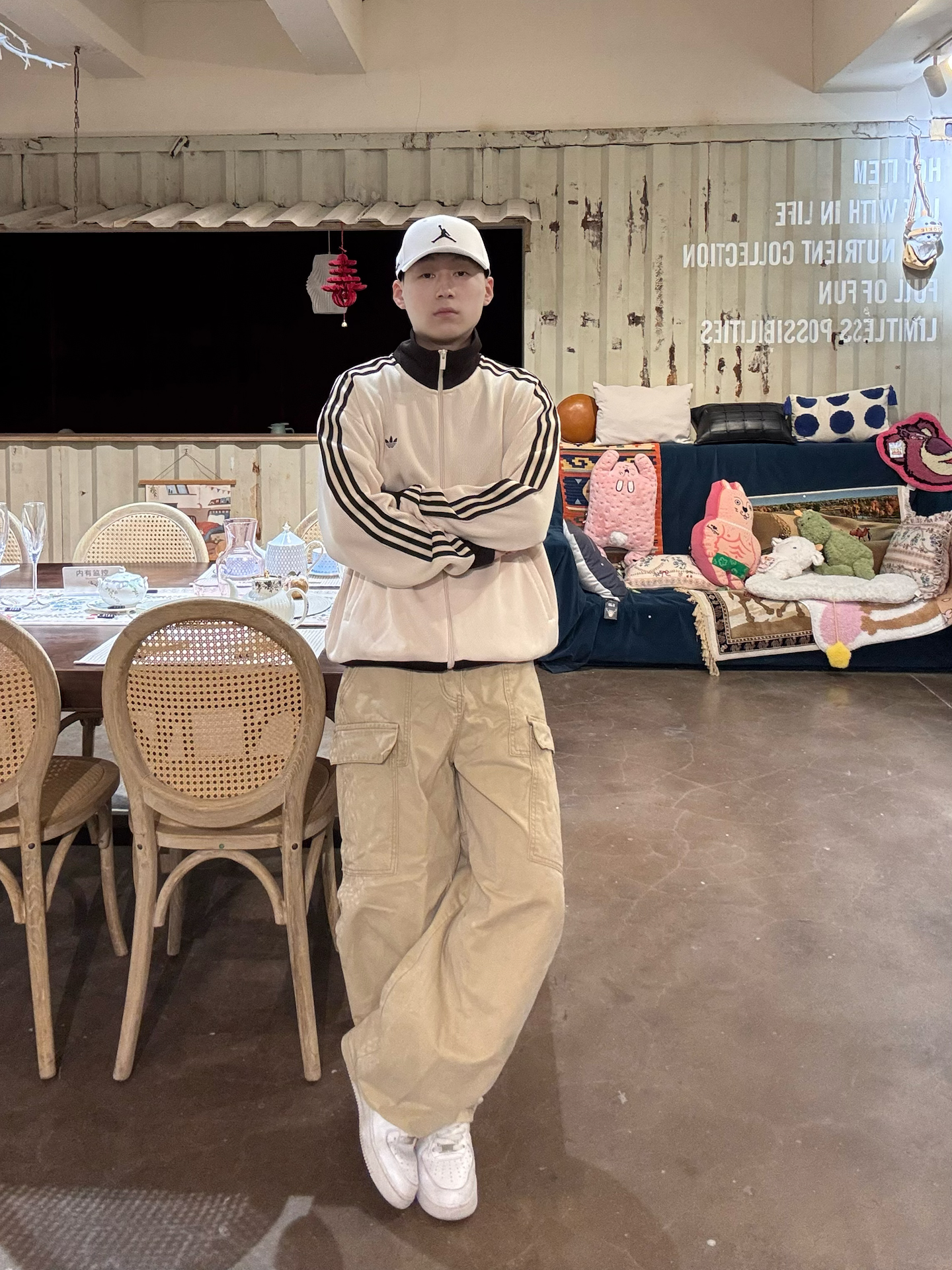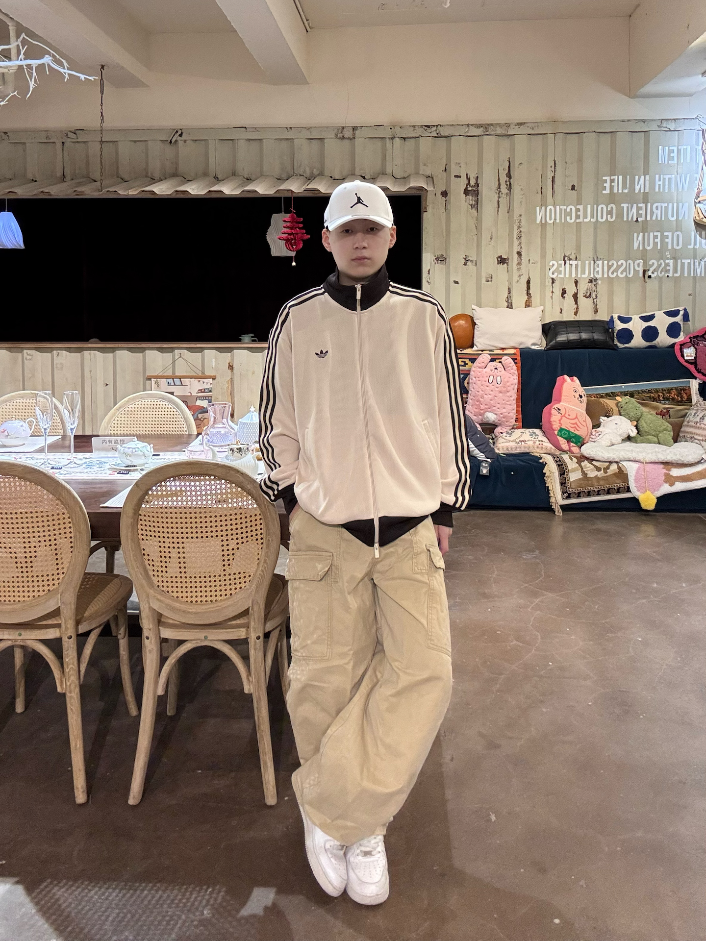 米白条纹运动外套+卡其工装阔腿裤,同色系渐变自带复古滤镜,黑白条纹细节打破单调,小白鞋平衡工装硬朗感。 低饱和配色温柔显干净,棒球帽加持少年感拉满。适配咖啡馆探店、周末citywalk、好友小聚,慵懒随性又利落,韩系松弛感轻松拿捏~ 宝子们觉得这套少年感穿搭打几分?日常出街会这么穿吗? 🧢: #Jordan 👕: #adidas originals 👟: #Nike #早八无脑穿搭...