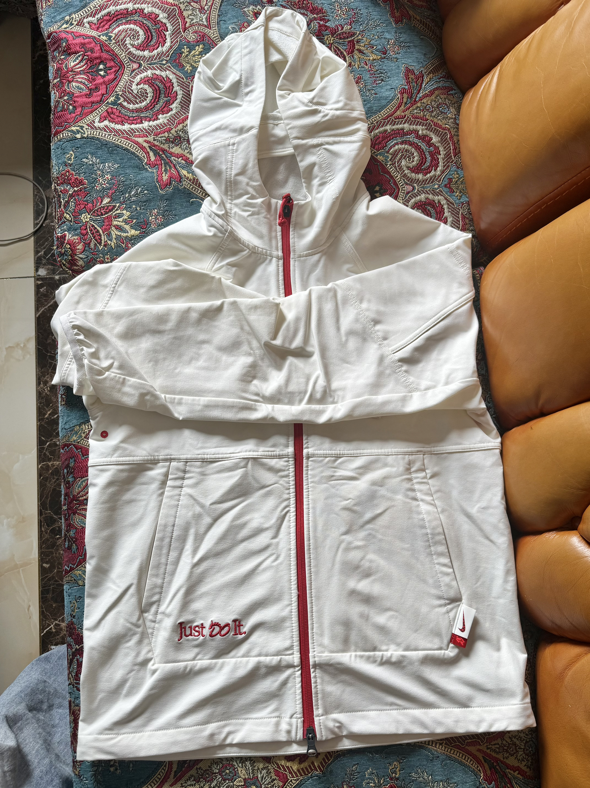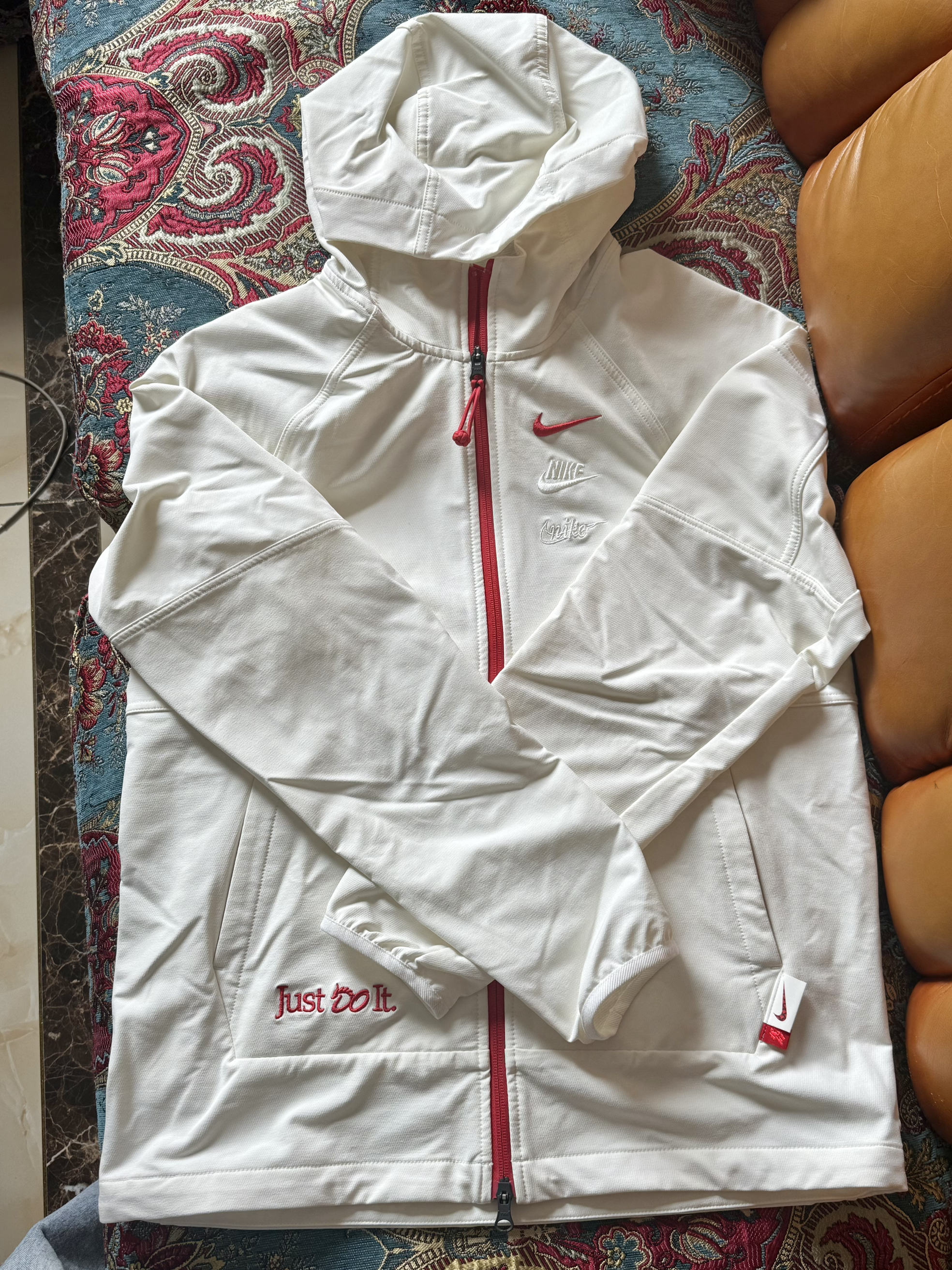 不是始祖鸟买不起 而是nike更有性价比 优点:1.混纺聚酯纤维面料 防风防水 内里有加绒 适合春季早晚温差大穿着 2. 按照亚洲身材剪裁 袖子小口袋,放东西收纳也很方便 3. 适合运动/露营/徒步/通勤的等中度户外活动外观造型休闲运动都能驾驭 尺码建议: 身高174 体重130 选L 合适
