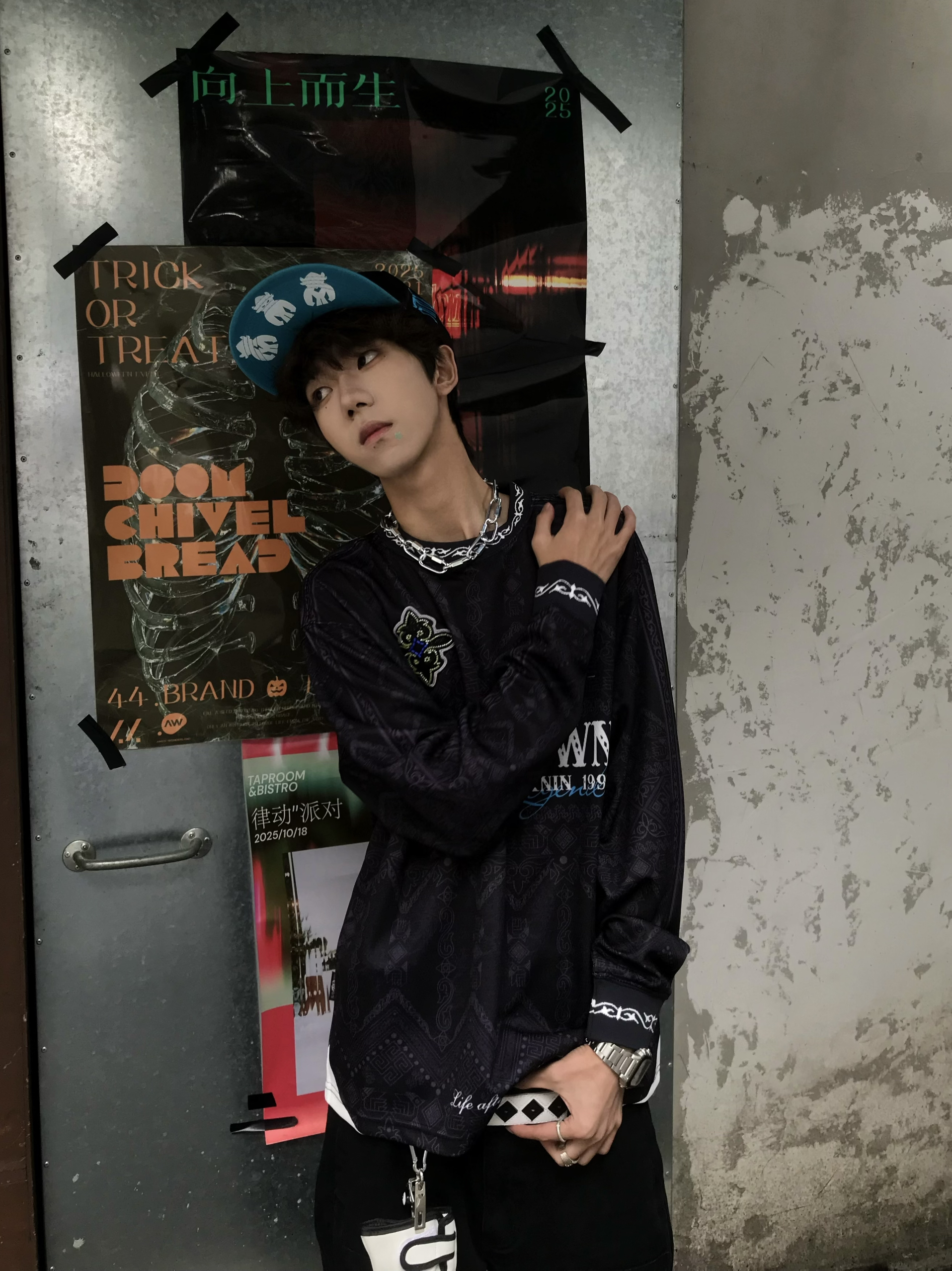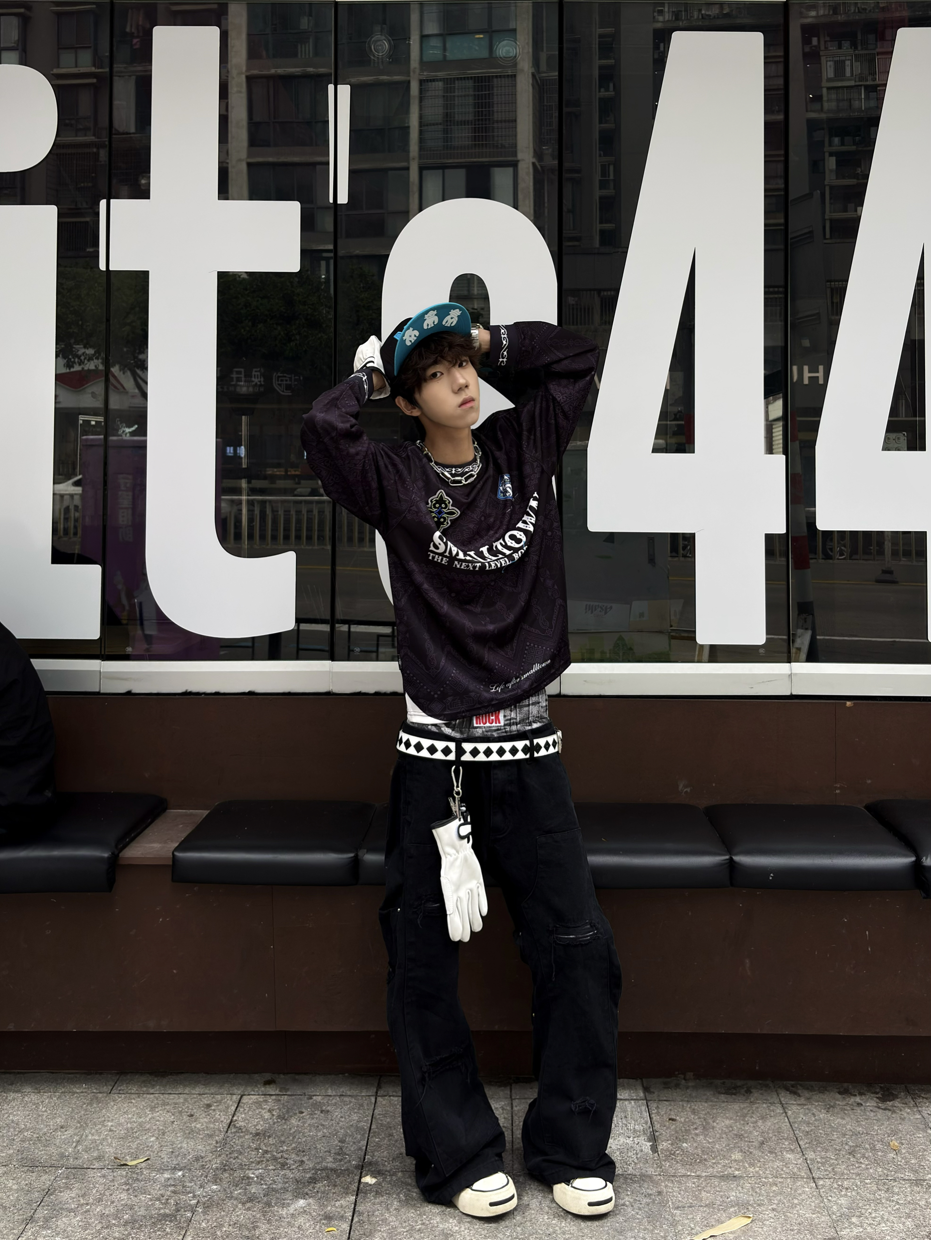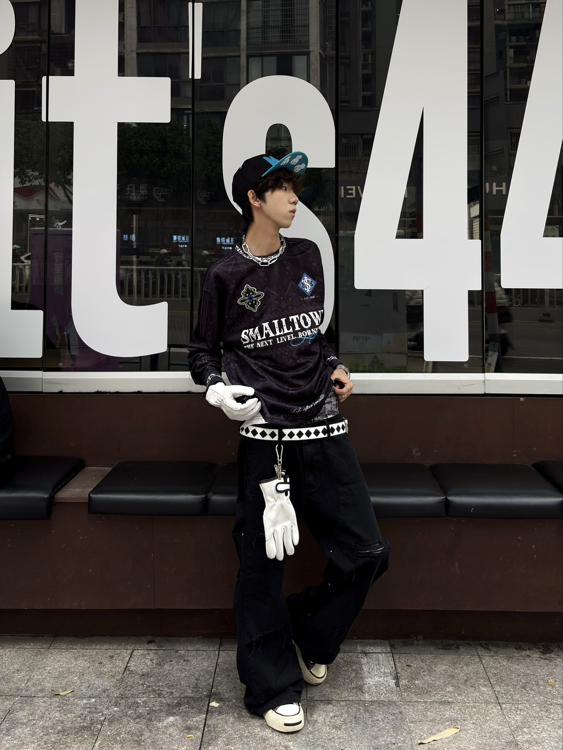 哈咯👋大家好!这里是困包💤 还在为早八的穿搭苦恼😖? 今天给大家分享一件睡醒就能直接出门的内搭❗️ 👕选择了一件黑蓝色的长T~ 暗纹提花长袖T恤👁️🗨️ 复古腰果花底纹+赛车风字母印花🪡 自带一种old school的酷感🕶️单穿叠穿都很有层次 👖搭配了一件黑色破坏感的牛仔裤 宽松版型+膝盖破洞设计👾街头感拉满🚶 💫配饰方面~ 一顶蓝色的帽子🧢和衣服颜色相呼应~ 其余都选择了白色🤍来搭配✨...