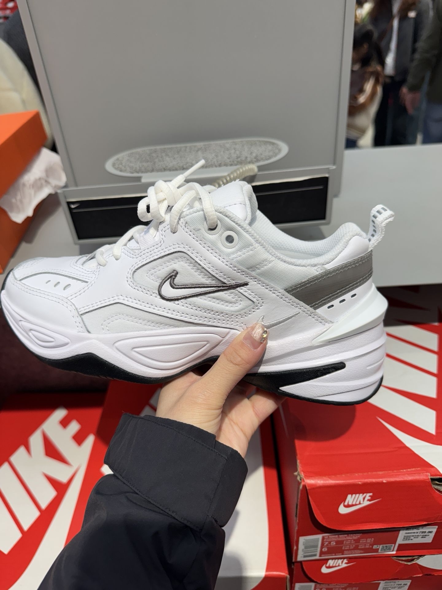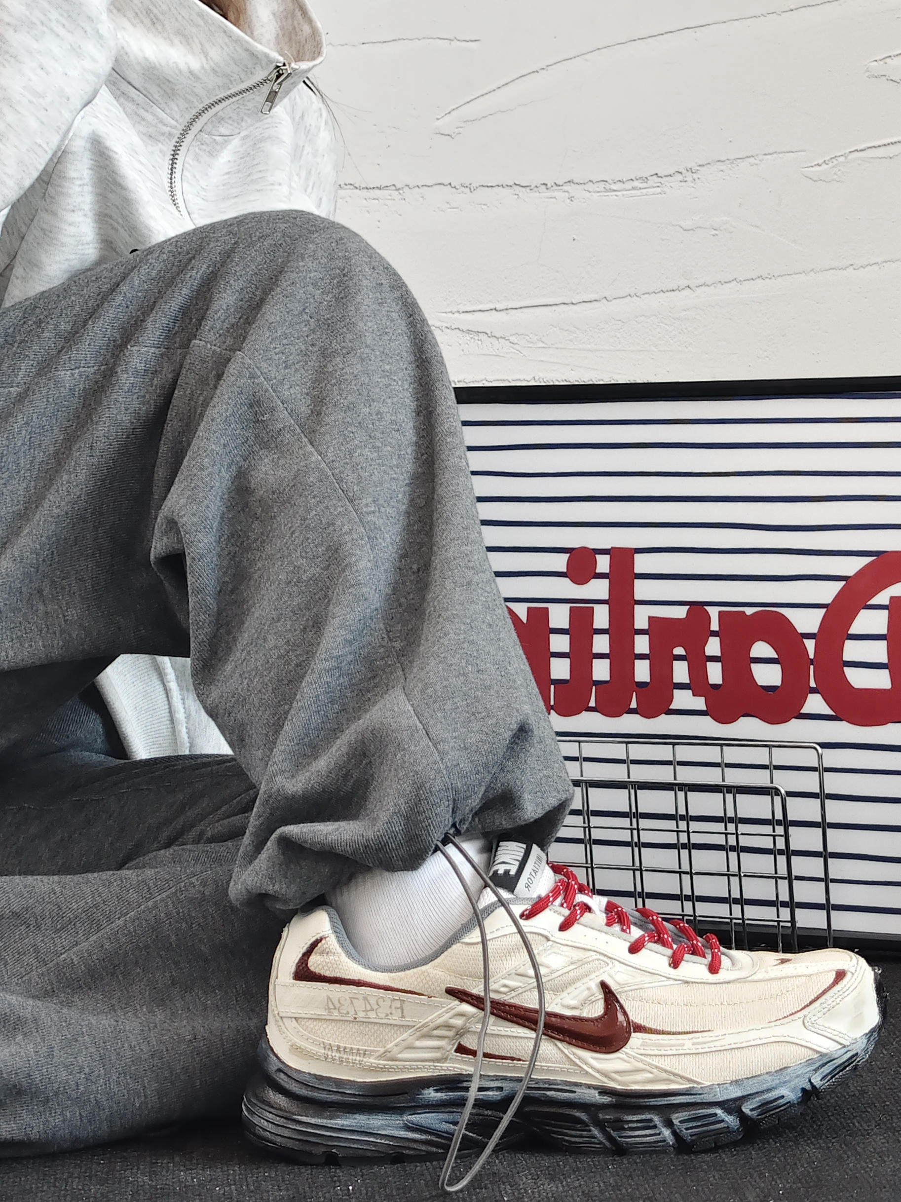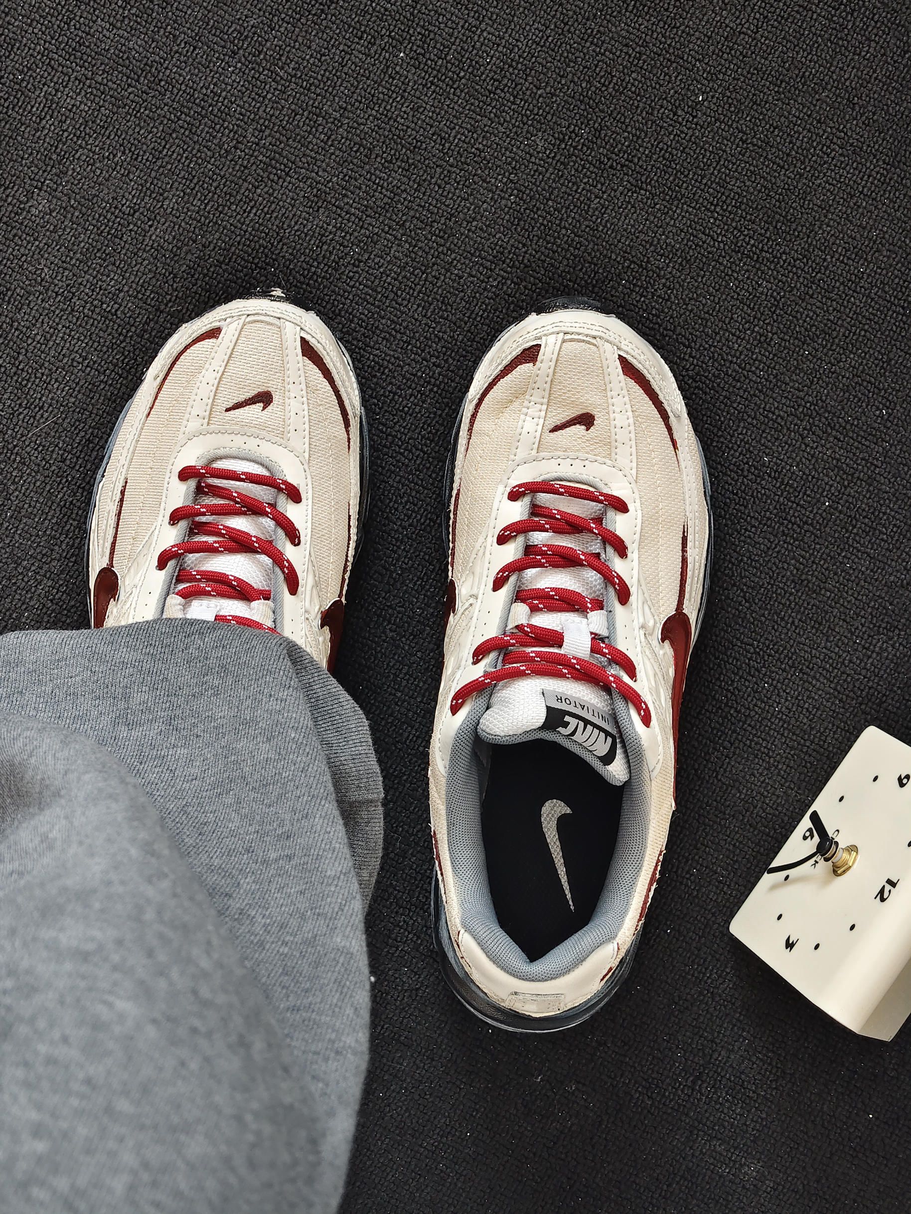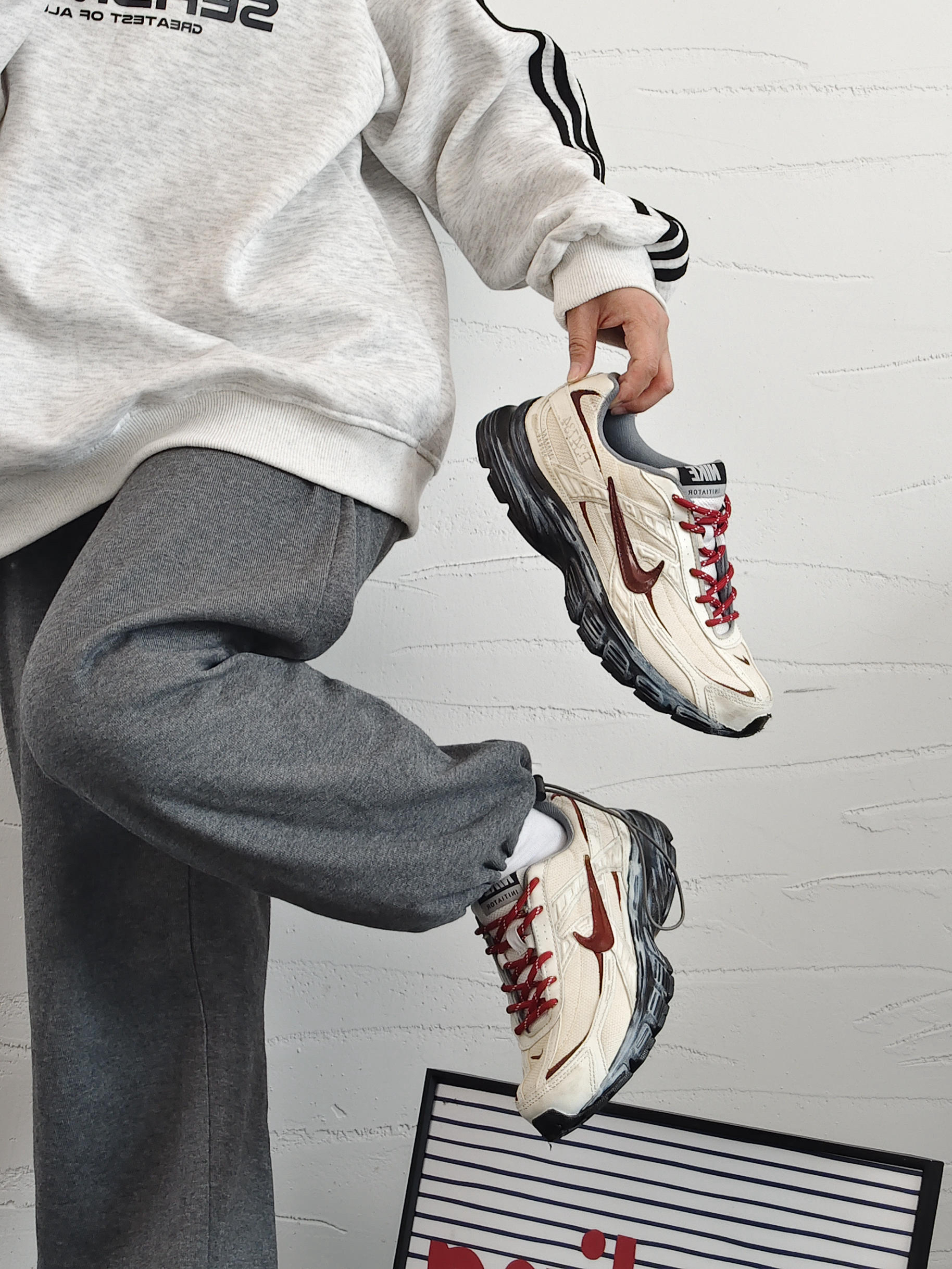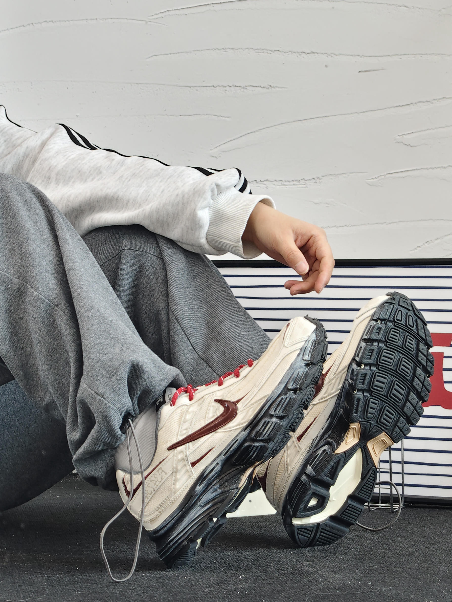 这双鞋我真的爱了!米白配酒红,复古味儿直接拉满,上脚特别显气质,搭运动裤、牛仔裤都好看。鞋底看着厚但踩着软乎乎的,走路久了也不累脚,日常通勤完全没问题。网面还挺透气的,春秋穿不闷脚。细节做工也扎实,撞色的钩子和鞋带很有设计感,颜值和舒适度都在线,闭眼入不亏!