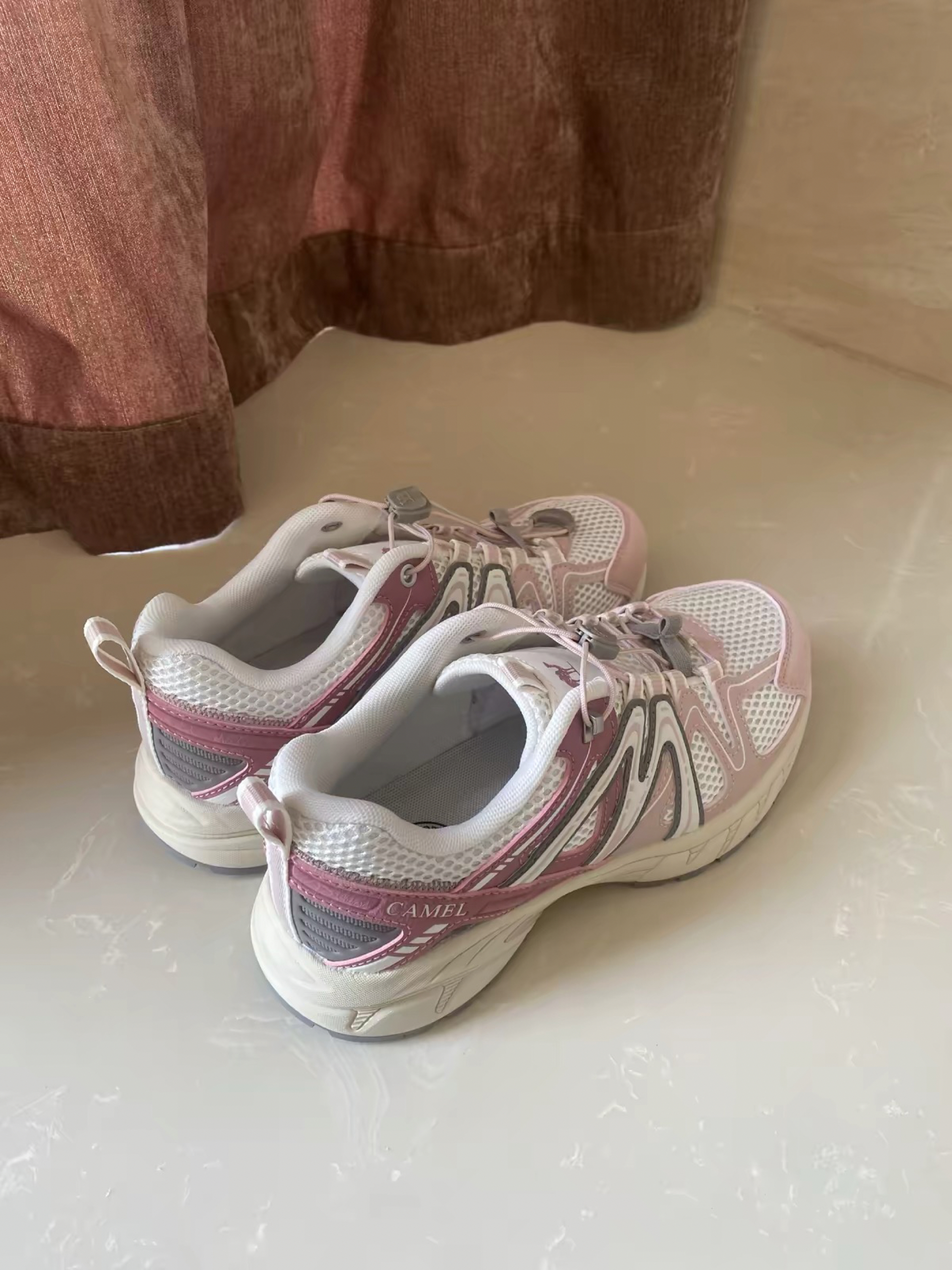 谁懂啊!白裙配骆驼运动鞋也太好看了吧~ 简约的条纹白裙,搭配这双粉白撞色的骆驼鞋,温柔又不失活力💓 鞋子网面设计透气不闷脚,脚感超舒服,日常逛街走路毫无压力! 粉白配色超百搭,配裙子、裤子都绝,春日氛围感直接拉满~