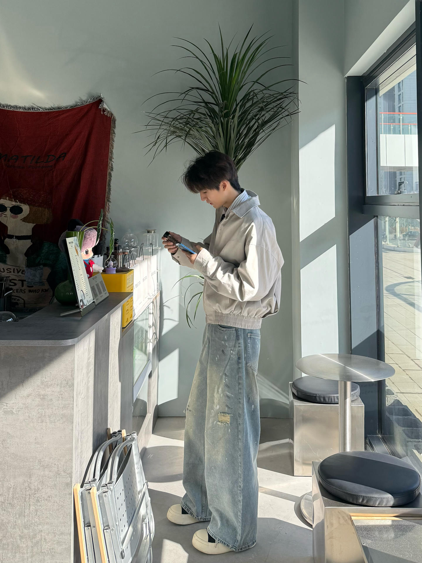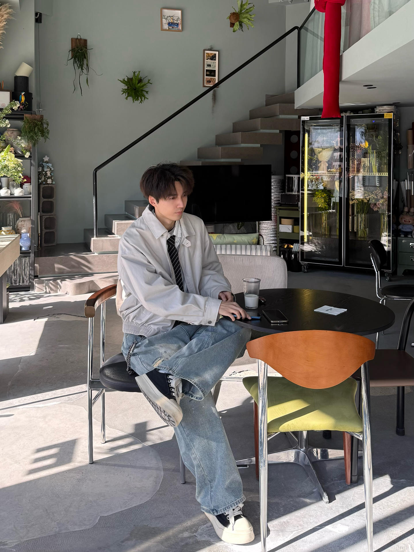 今天起晚了 直接拉出懒人搭配⬇️ 利用简单的基础款 搭出穿搭的细节感 上身浅灰色夹克直接套 内搭衬衫加领带👔 短款加上内搭层次 五分钟搞定出街造型 下身再搭一条破洞涂鸦牛仔👖 做旧版型配上 工装的硬朗刚好契合✅ 简单在店里放空一下 喝点小coffee 讲真 还是这种简约 带点小细节的穿搭 对于早春街头来说更适配✌️ #早八无脑穿搭 #提前预习一下早春穿搭 #氛围感牛仔裤穿搭分享 #秋冬宝藏休闲牛...
