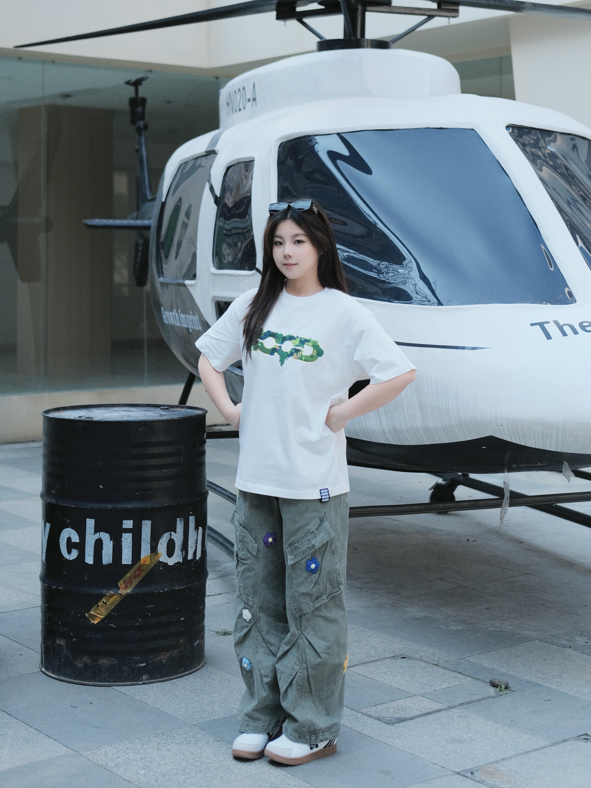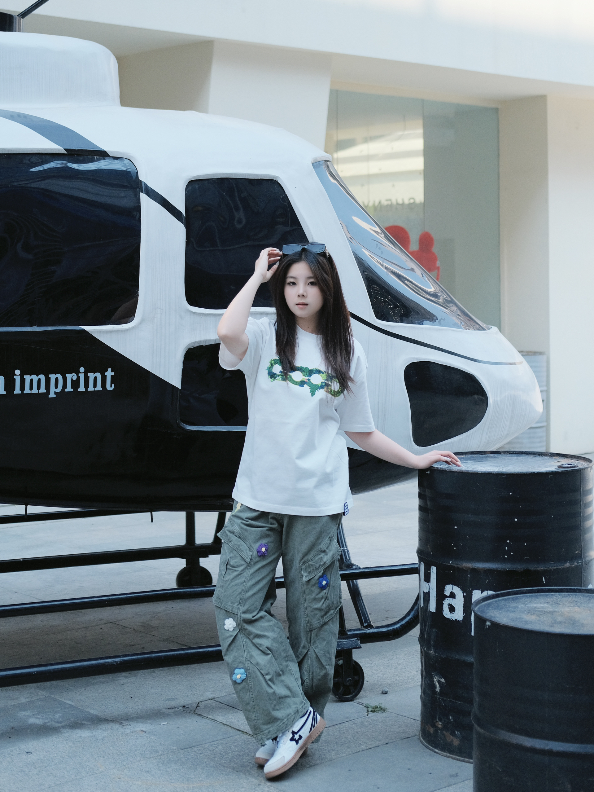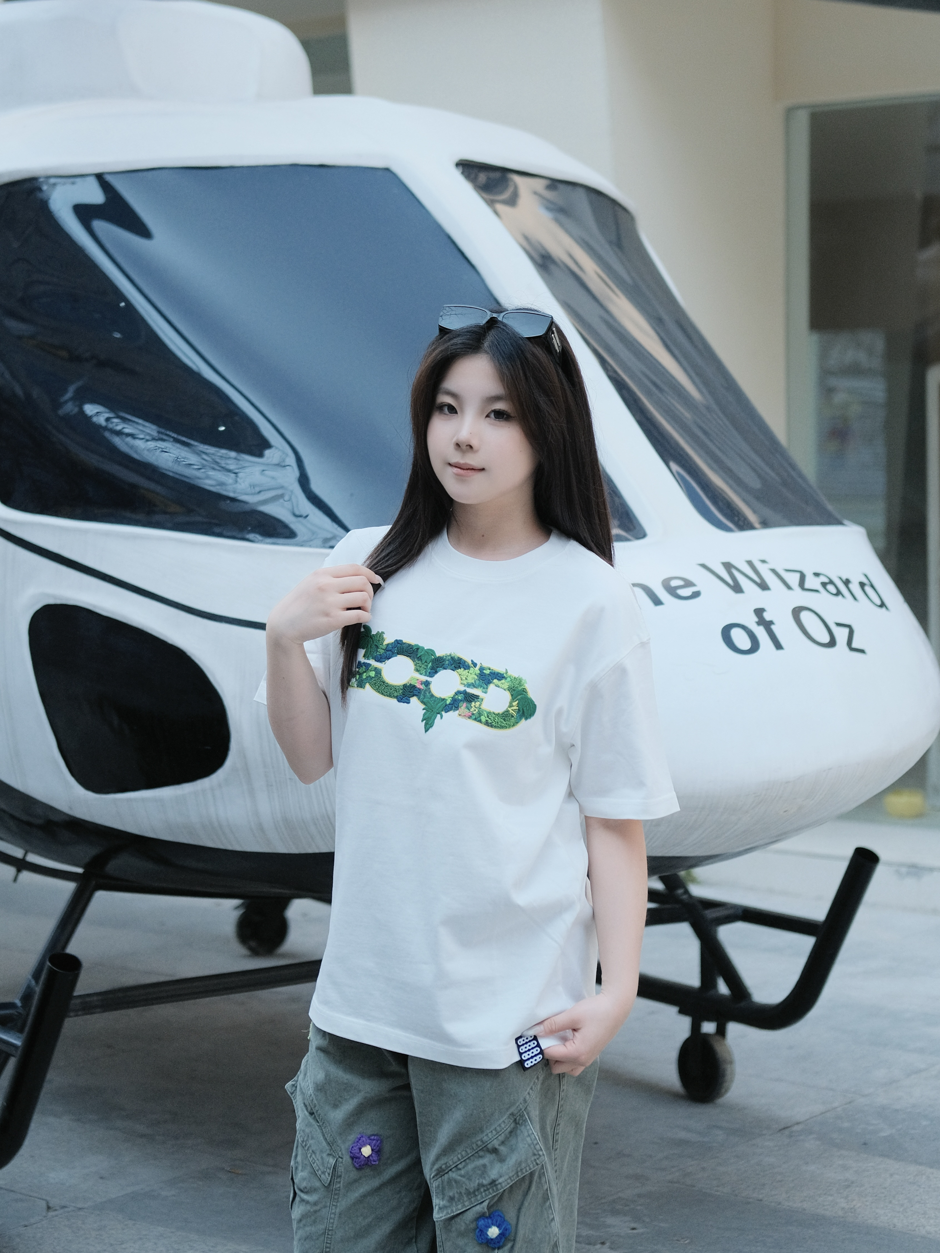 不费力的夏日松弛感 前后的绿植🪴刺绣直接视觉降温了 搭配工装裤时髦自在 上身偏宽松版型 面料有质感 舒适又透气 白t怎么搭都不会出错