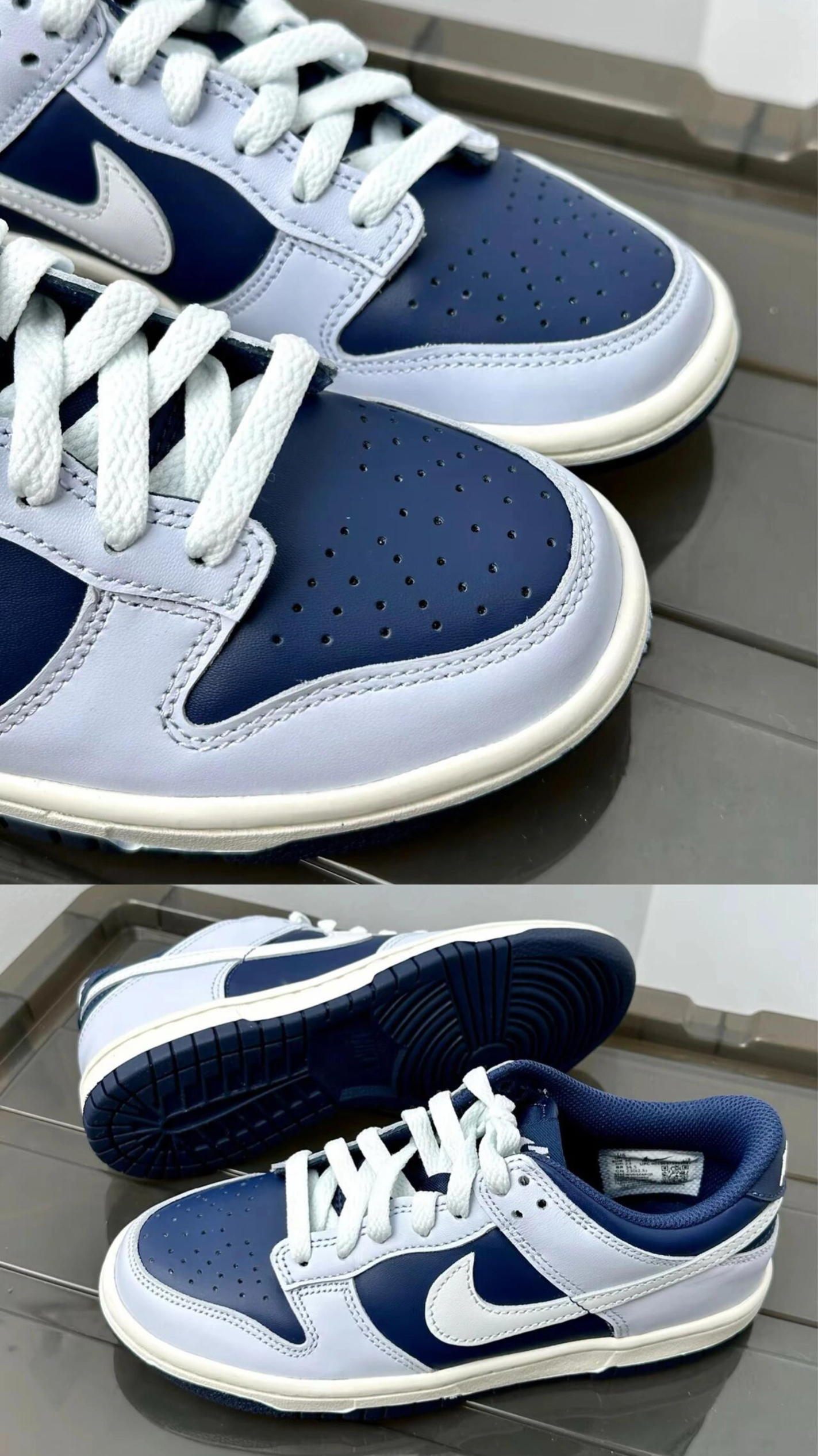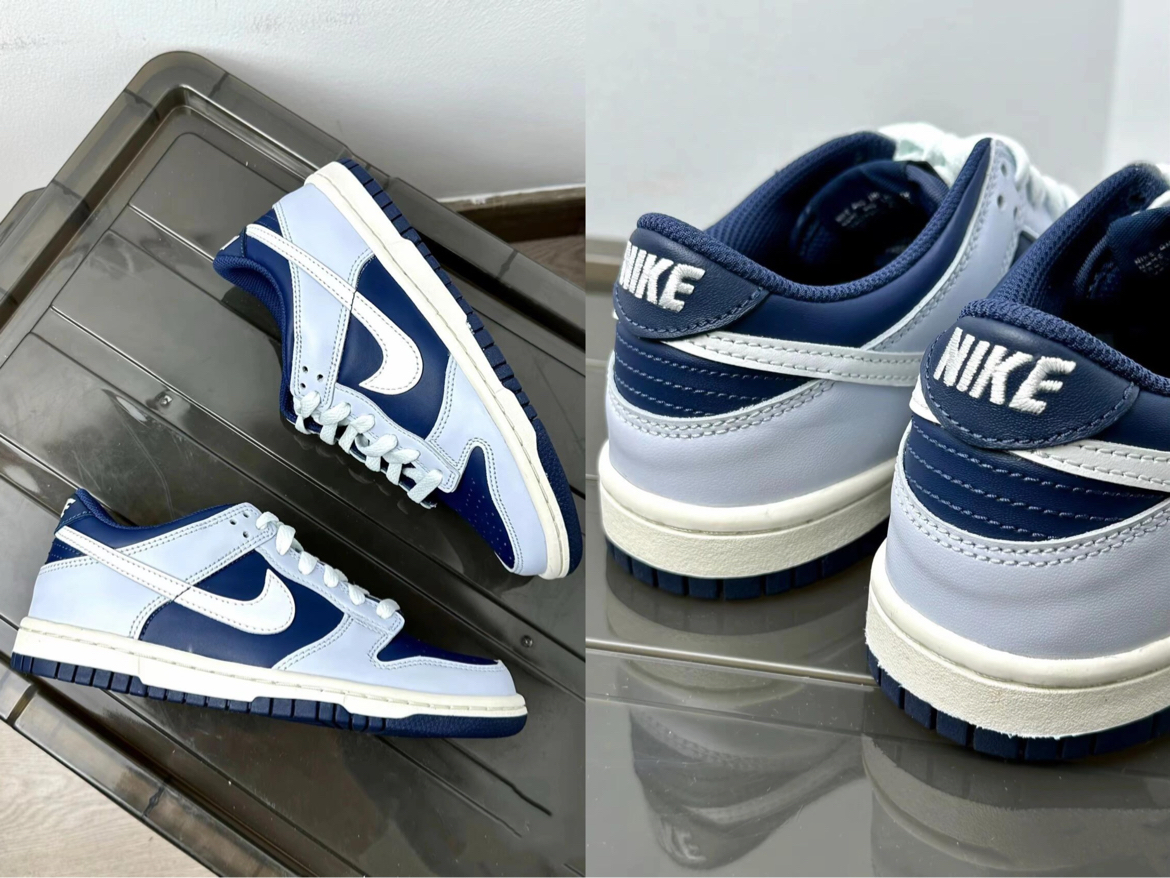 之前通勤总在纠结:穿皮鞋磨脚,穿运动鞋又太随意。这双Nike Dunk的蓝灰拼色刚好中和了休闲与正式感,鞋型利落不臃肿,皮革材质耐造好打理,雨天踩水也没留印子。中底软弹,走半小时地铁脚不酸,鞋舌不跑偏,鞋带系一次能撑好几天。搭牛仔裤、运动裤都不违和,不用费心搭配。 你们平时通勤会用这双鞋搭什么风格的裤子?