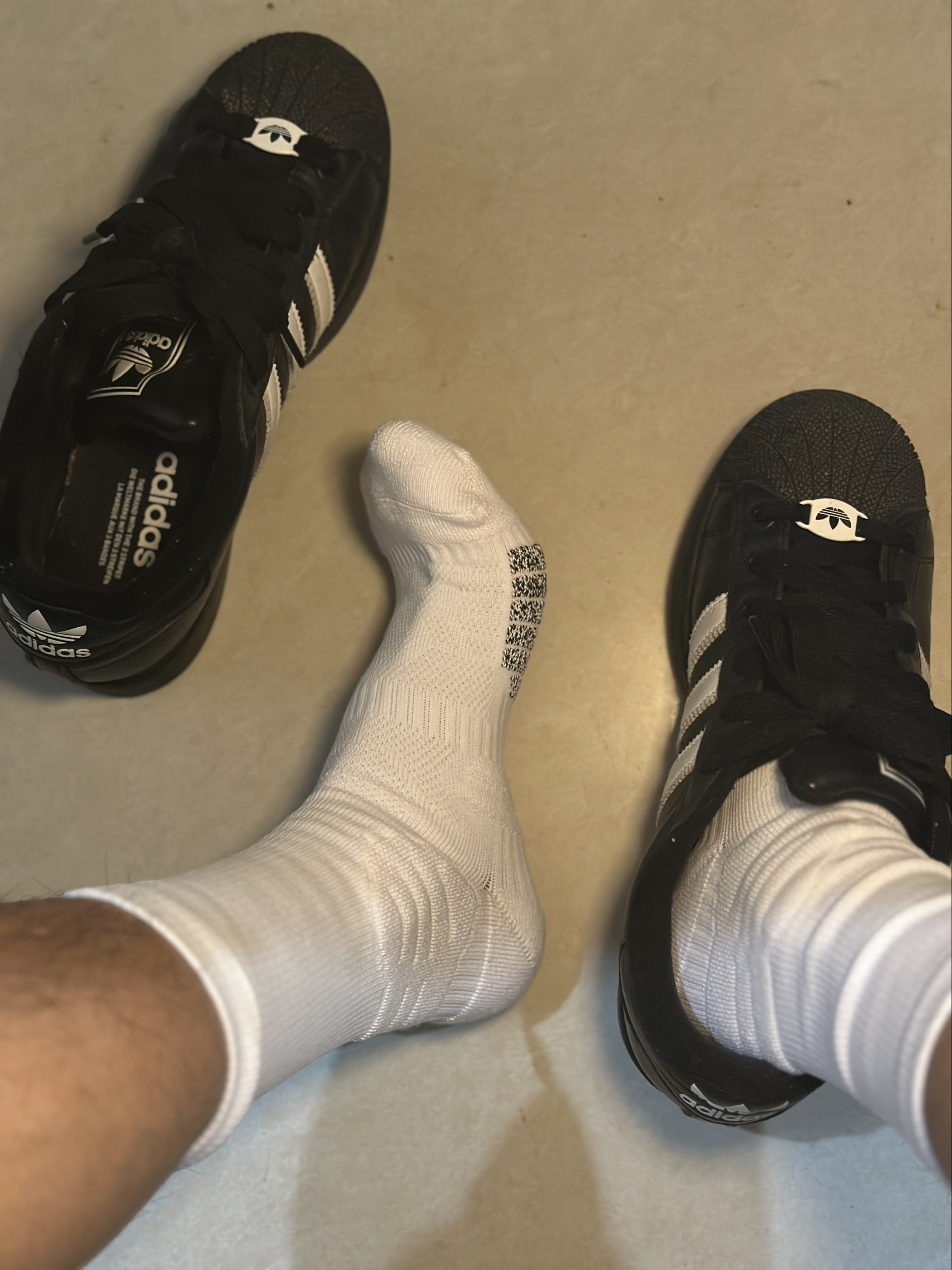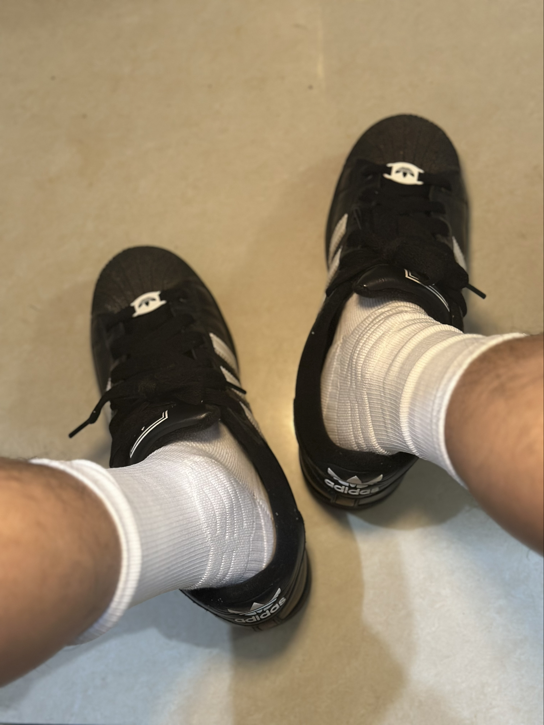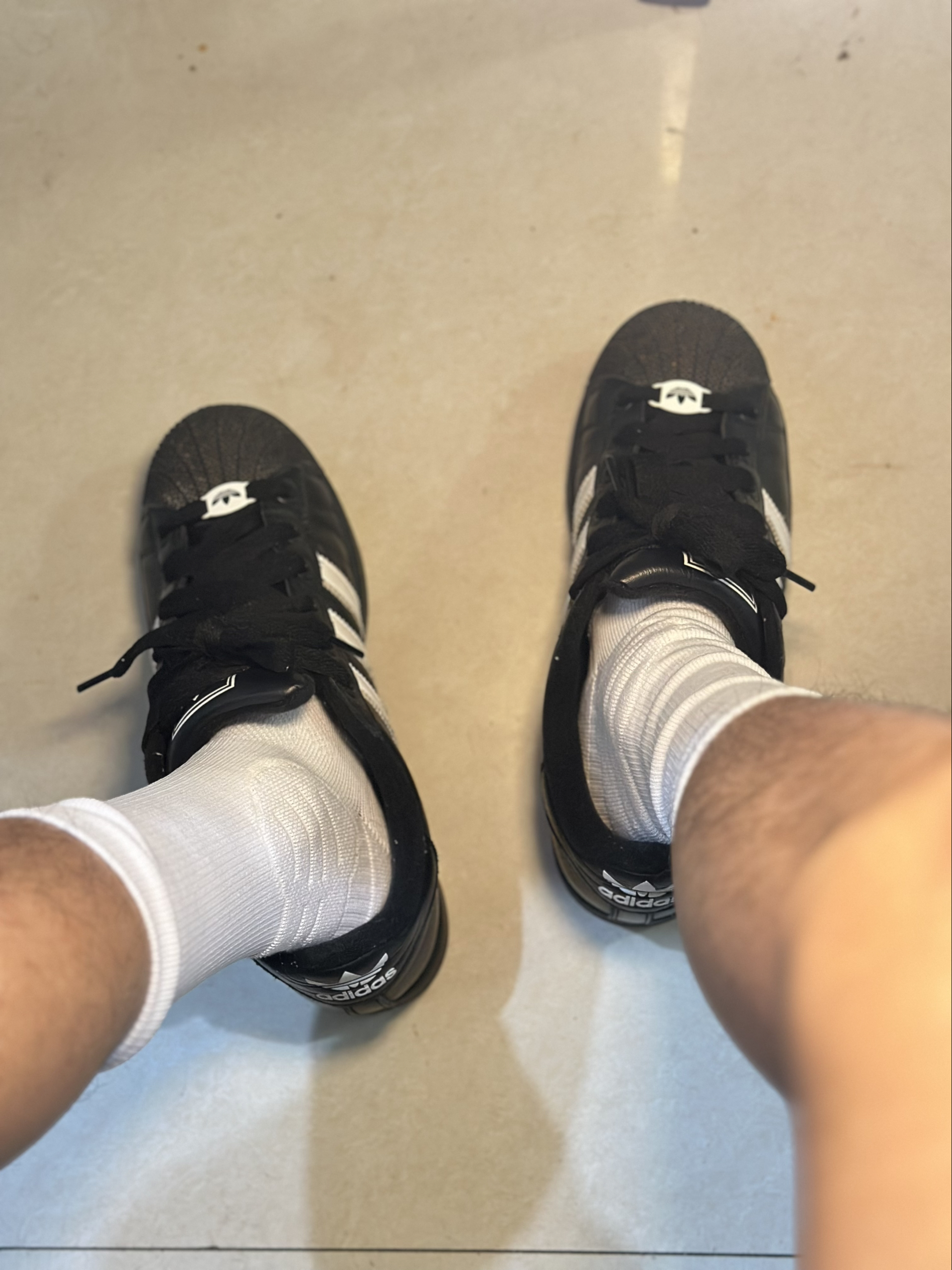 今年最喜欢的一双阿迪达斯,鞋带有两个,一个白色一个黑色,不管哪一个搭配起来都很百搭,还有前面阿迪的鞋扣非常亮眼,鞋穿起了也很舒服,不会说走远了累脚