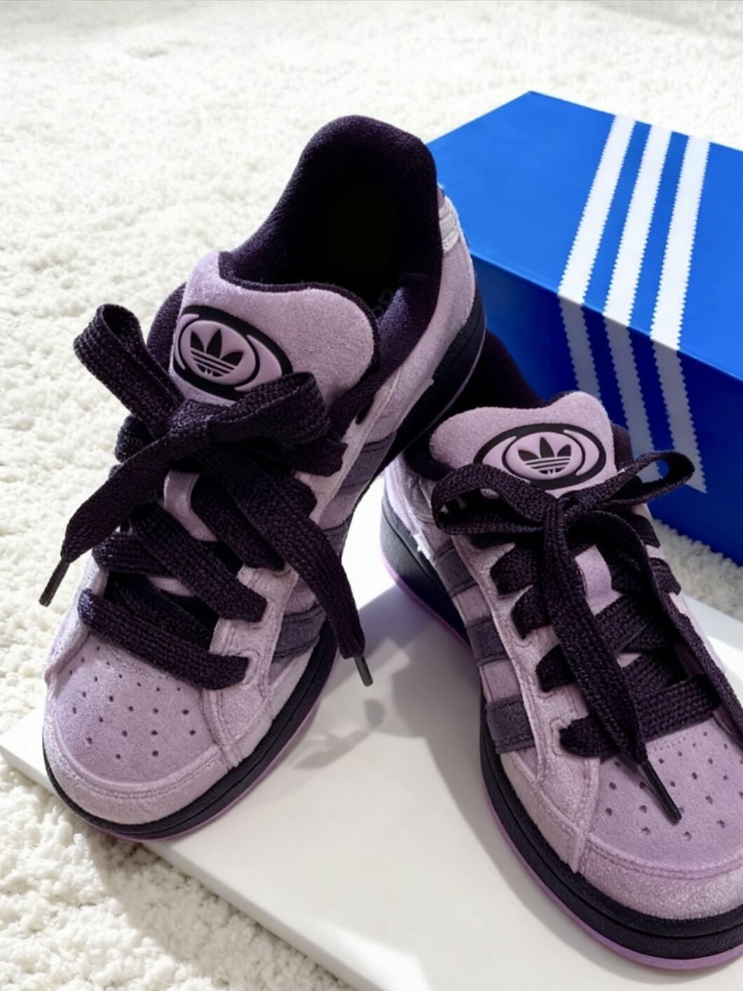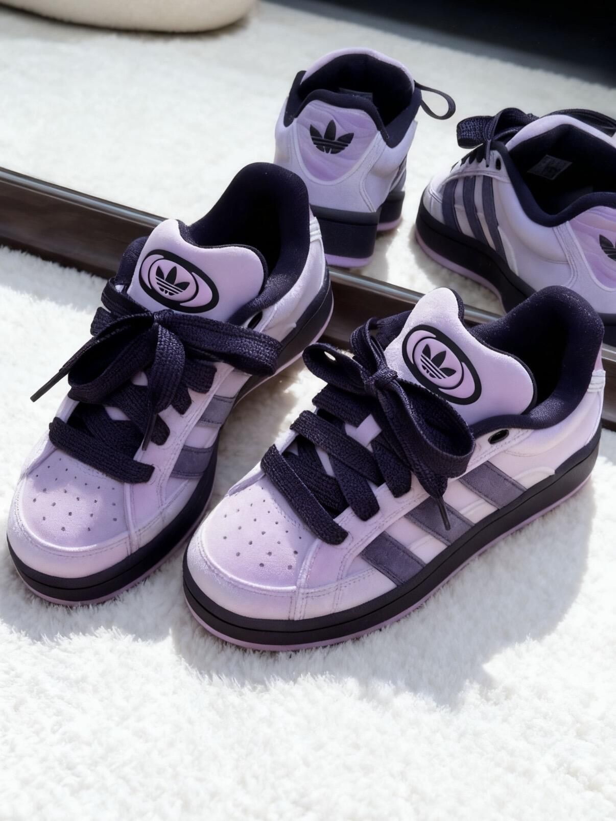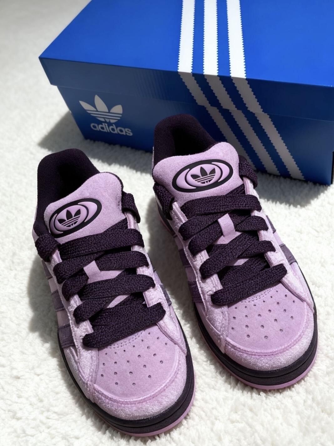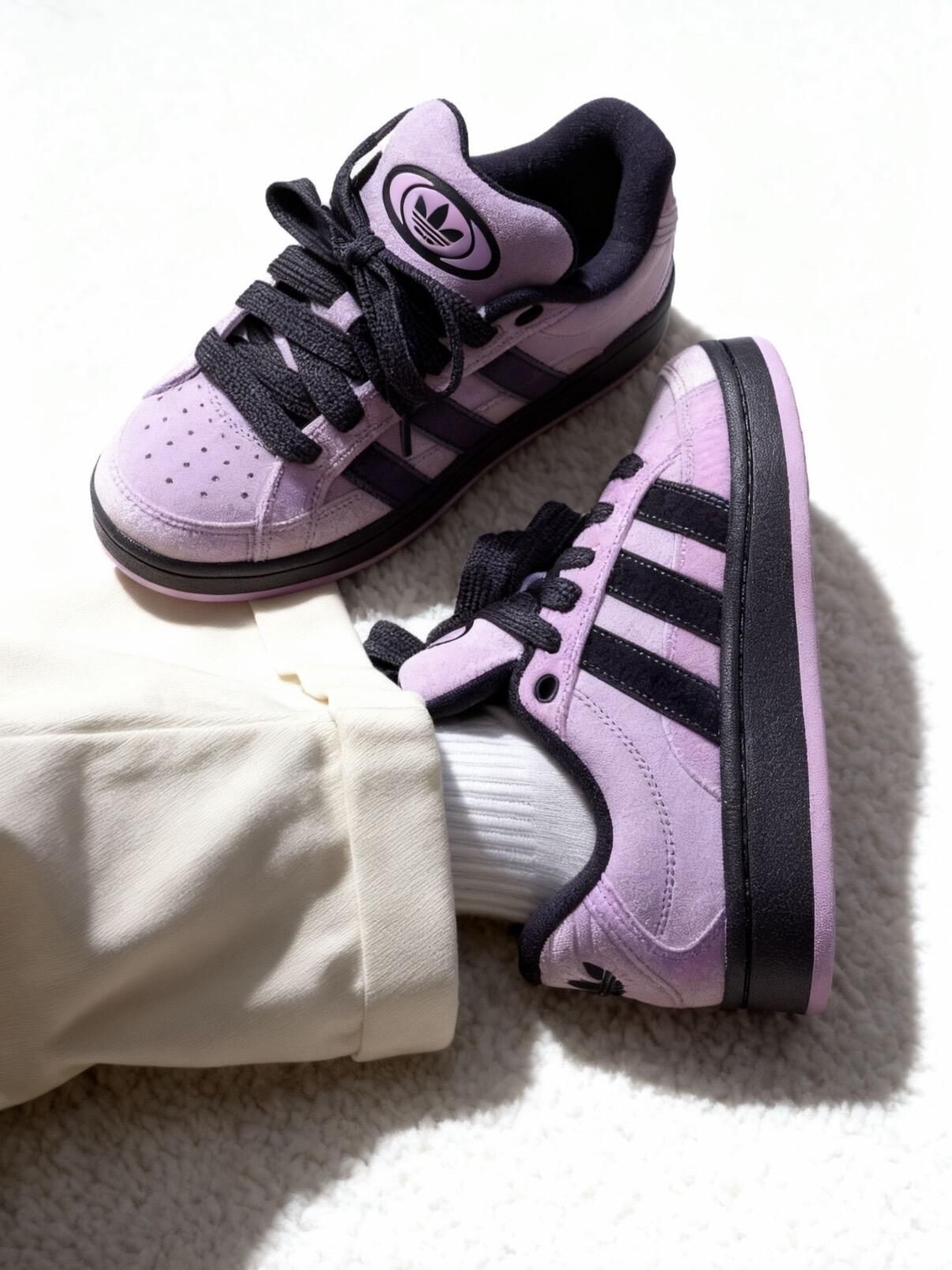 又是被三叶草硬控的一天💜 秋冬季还得是胖乎乎面包鞋的主场👟 campus面包鞋新甜妹配色简直戳到心趴上了💜🤍 绒面材质就比较适合秋冬🍁 上脚好甜🍬,脚感也软乎乎滴 搭配牛仔裤穿hin好看哒🦋
