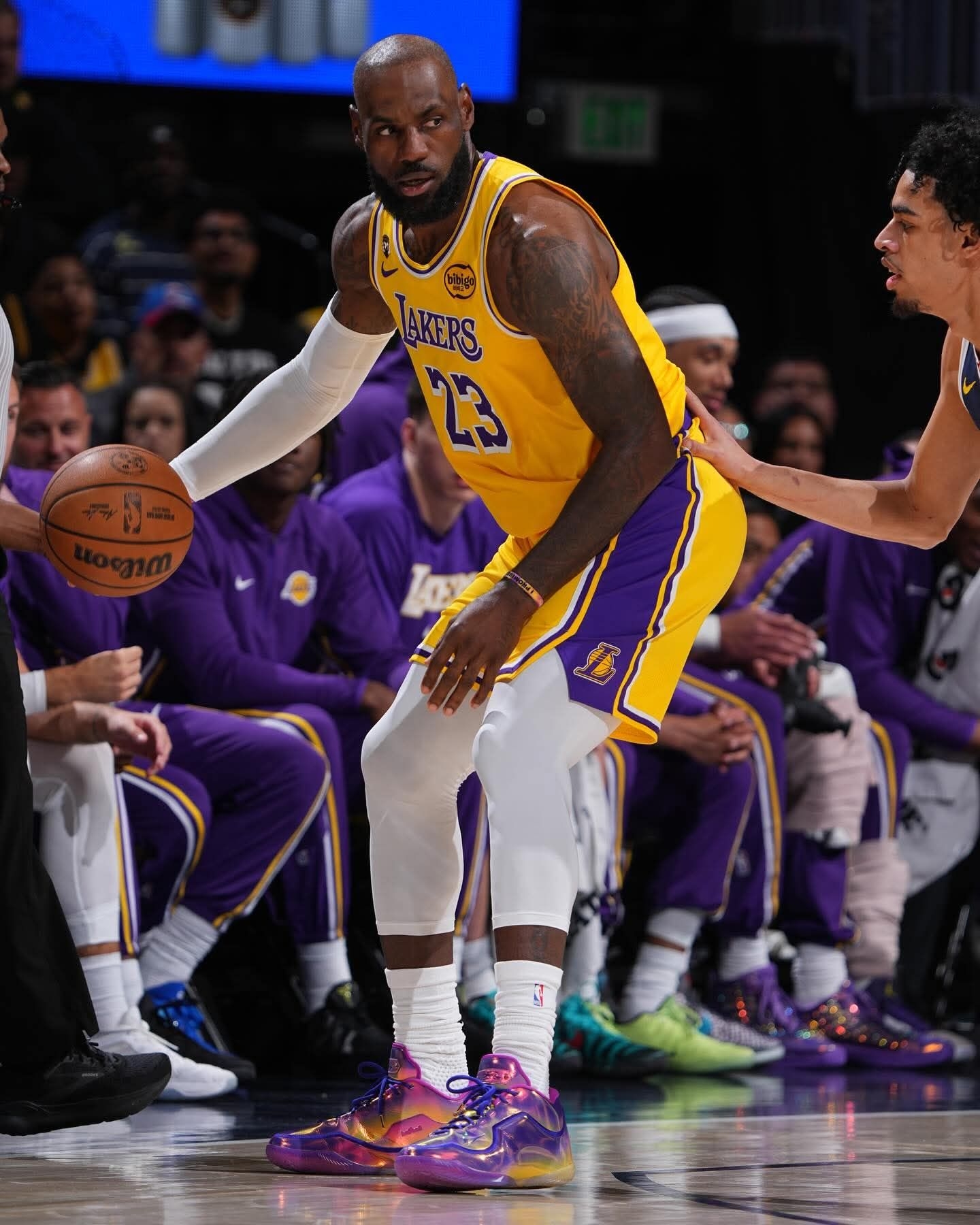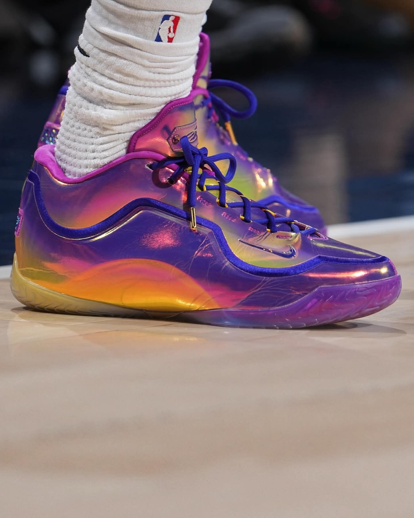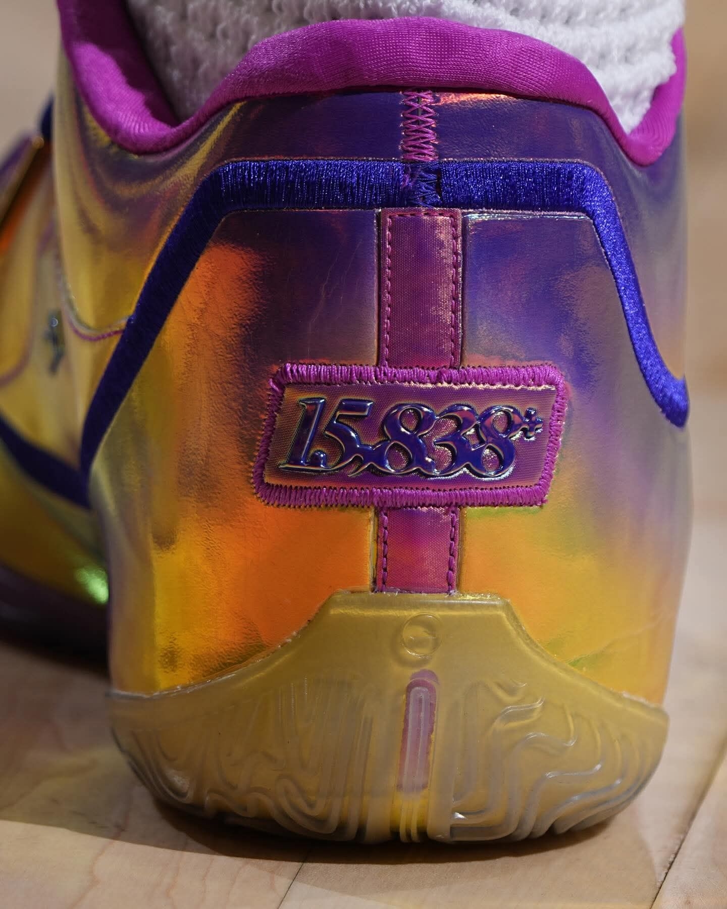 当15838这个数字被写进球鞋,就知道老詹又在改写历史了。 今天上脚的Nike LeBron 23 “15,838+”,渐变紫蓝的鞋面像他生涯的星空,每一步都在刷新纪录。 从超越贾巴尔的得分王,到今天登顶历史进球王,23号的传奇还在继续。 这双鞋不只是战靴,是他给篮球世界的又一个惊叹号。