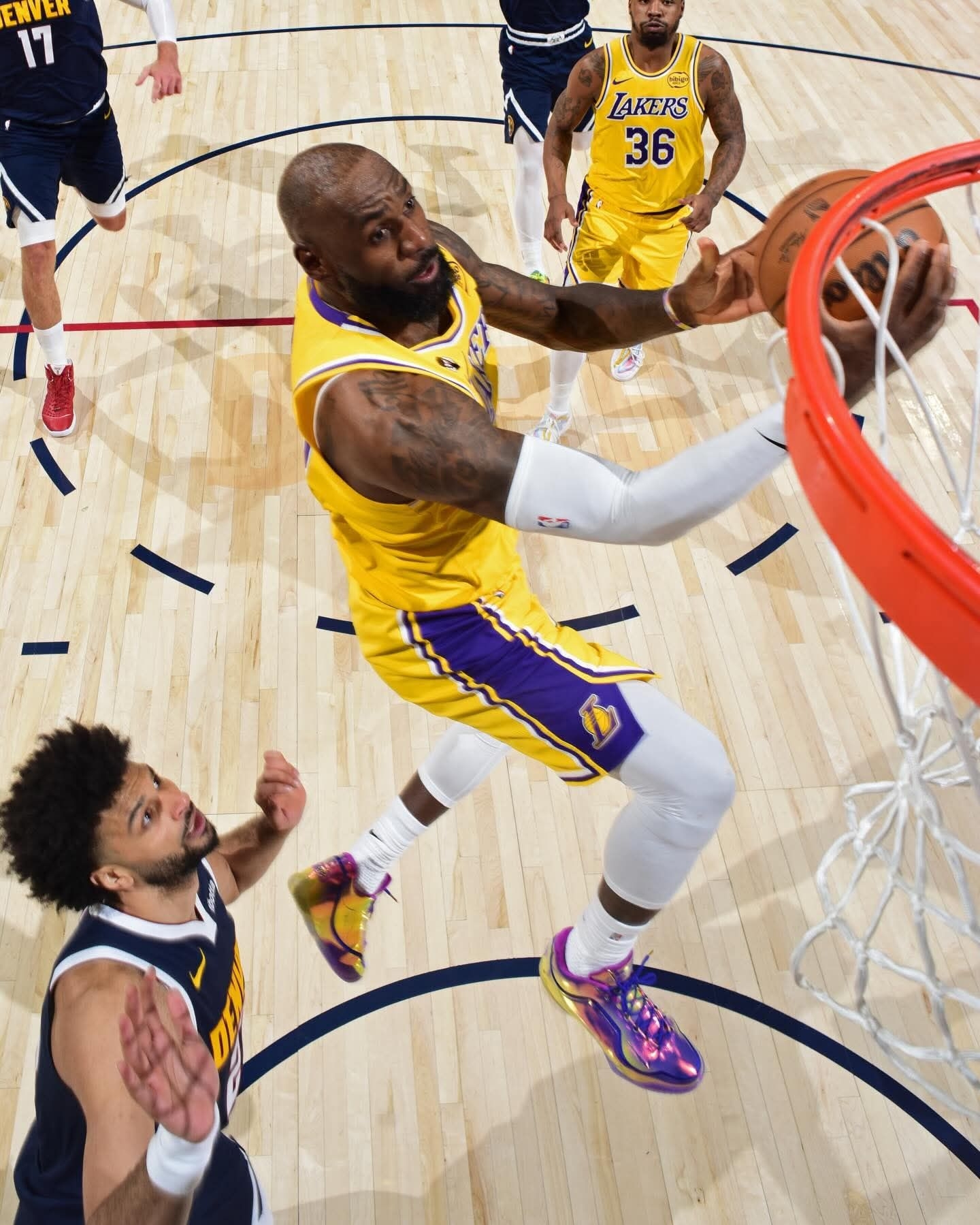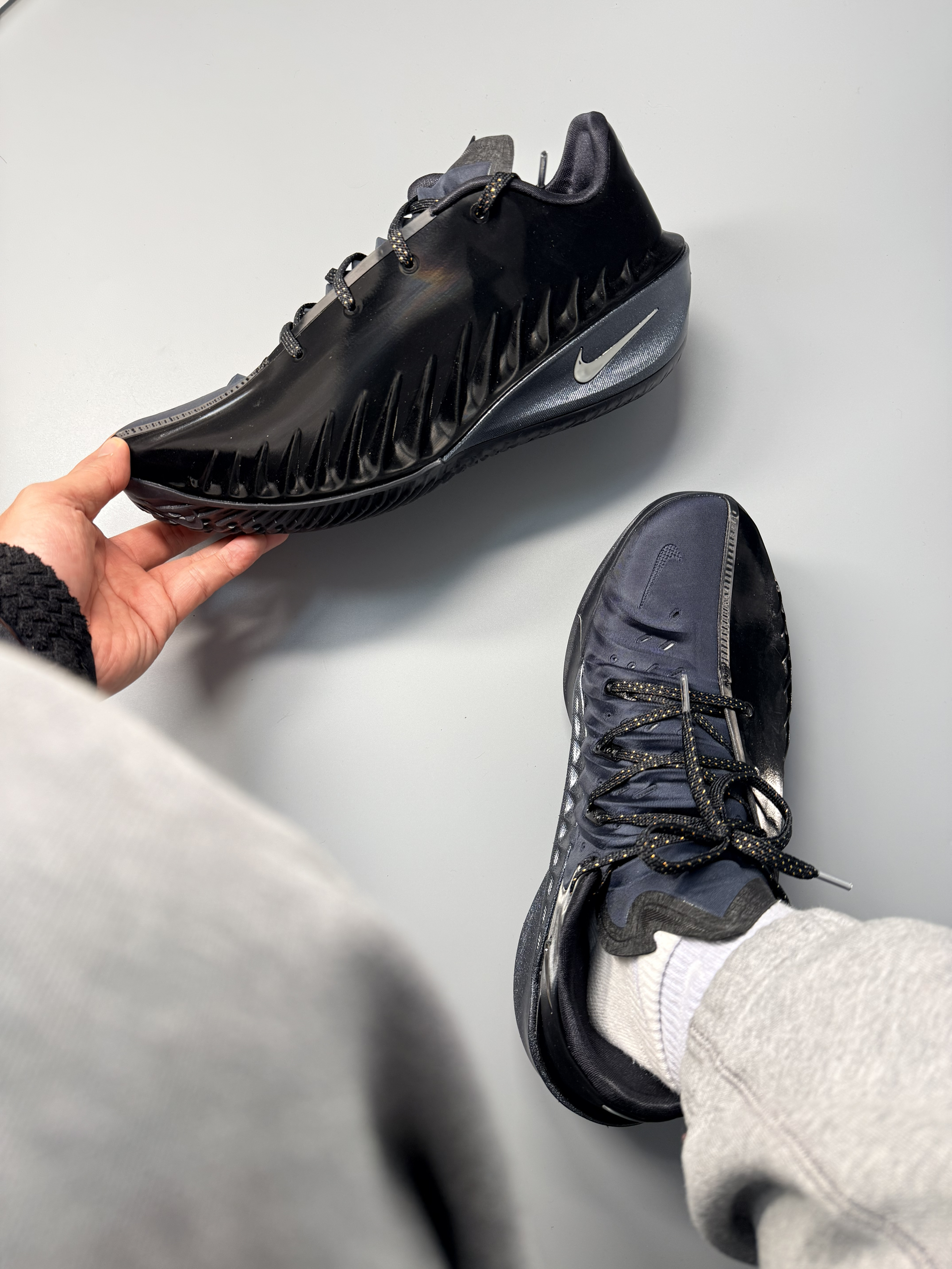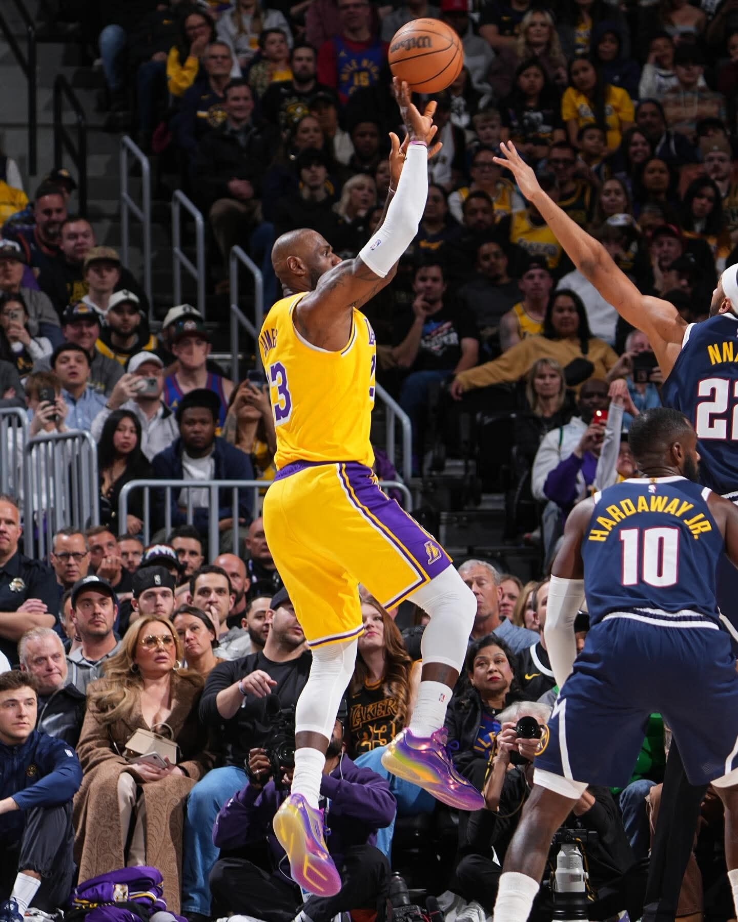 当15838这个数字被写进球鞋,就知道老詹又在改写历史了。 今天上脚的Nike LeBron 23 “15,838+”,渐变紫蓝的鞋面像他生涯的星空,每一步都在刷新纪录。 从超越贾巴尔的得分王,到今天登顶历史进球王,23号的传奇还在继续。 这双鞋不只是战靴,是他给篮球世界的又一个惊叹号。