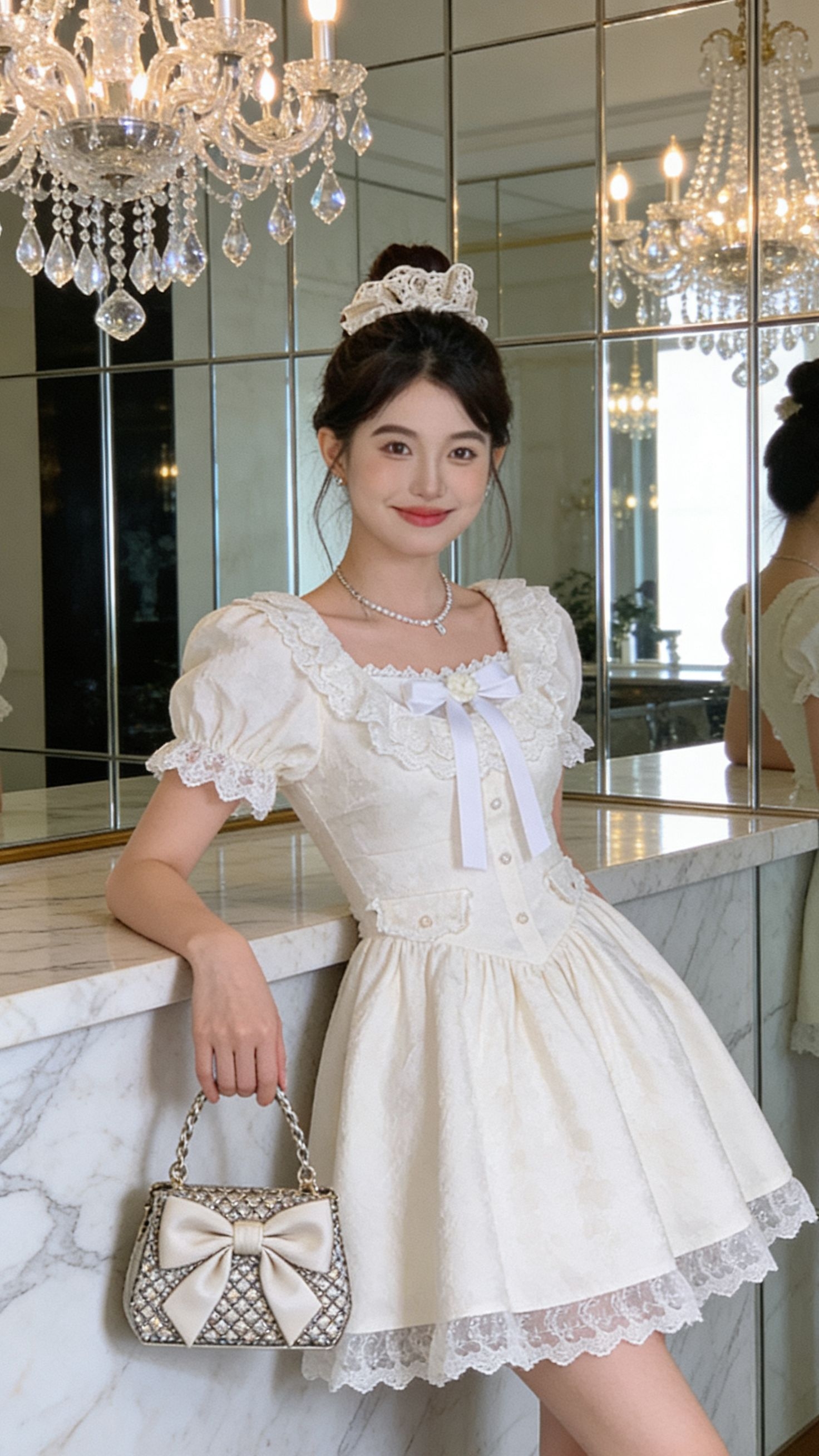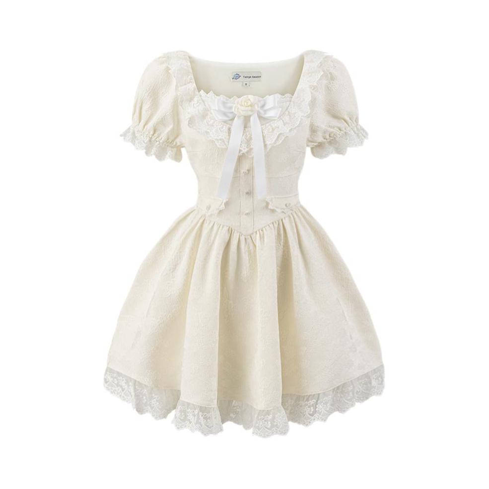🛒好物名称:千金风收腰蕾丝短袖连衣裙 🤔推荐理由:上身特别好看 特别显可爱