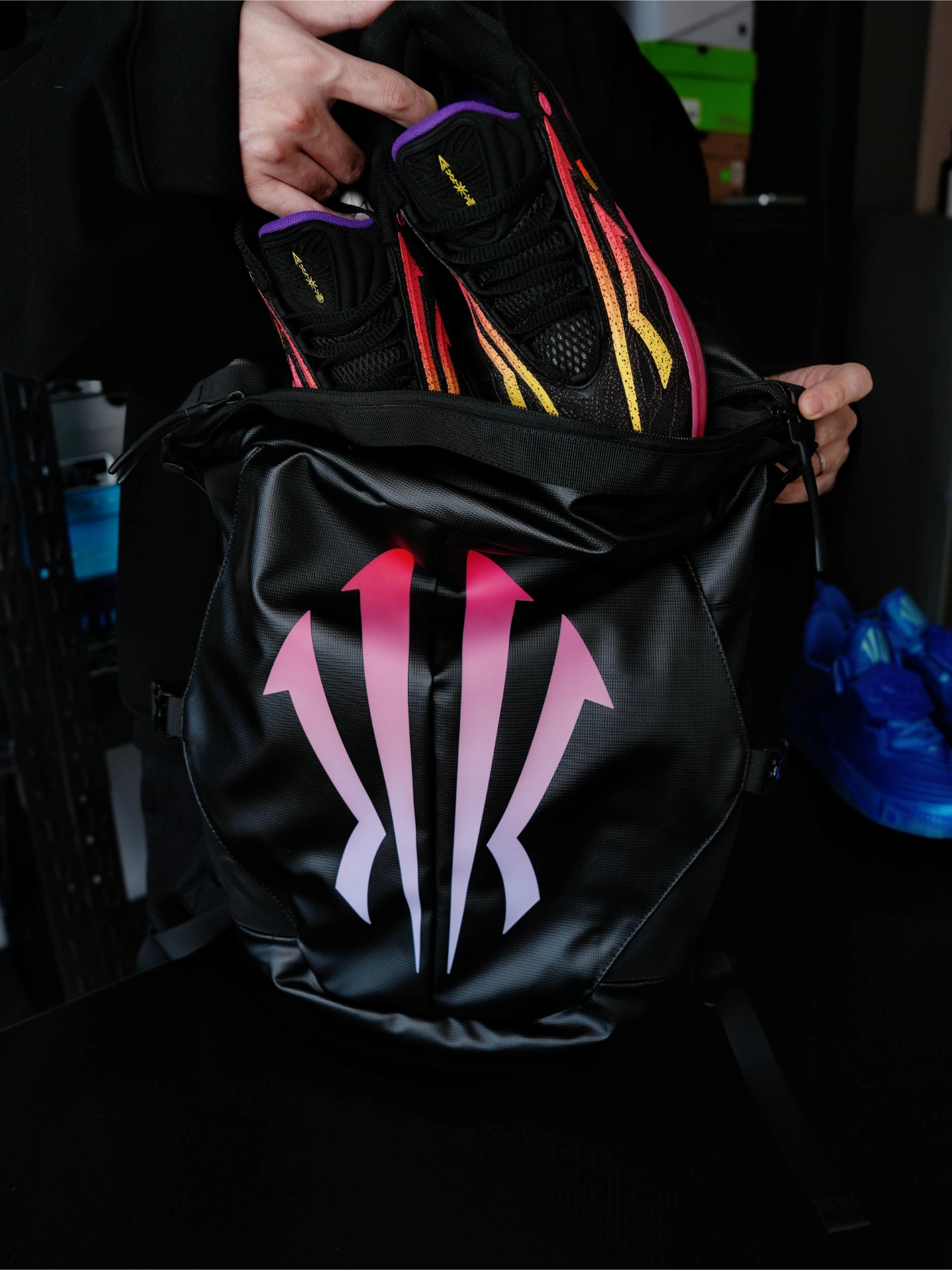最近入手了一款新包,是安踏欧文的,这个曜影配色和我之前入手的先驱二代的炎配色还真有点儿搭,都是黑色主题加上粉紫色渐变,这个欧文之盾的大logo也是真的绝了。另外之所以入这个包是因为真的很能装,运动打球的话,45码的球鞋➕衣服短款什么的随便装,也可以塞一个篮球,或者当书包用的话,书本和笔记本电脑也是随便拿捏,真得是越看越香啊! #欧文同款篮球包 #欧文之盾背包 #安踏欧文之盾双肩包 #一款超高颜值...
