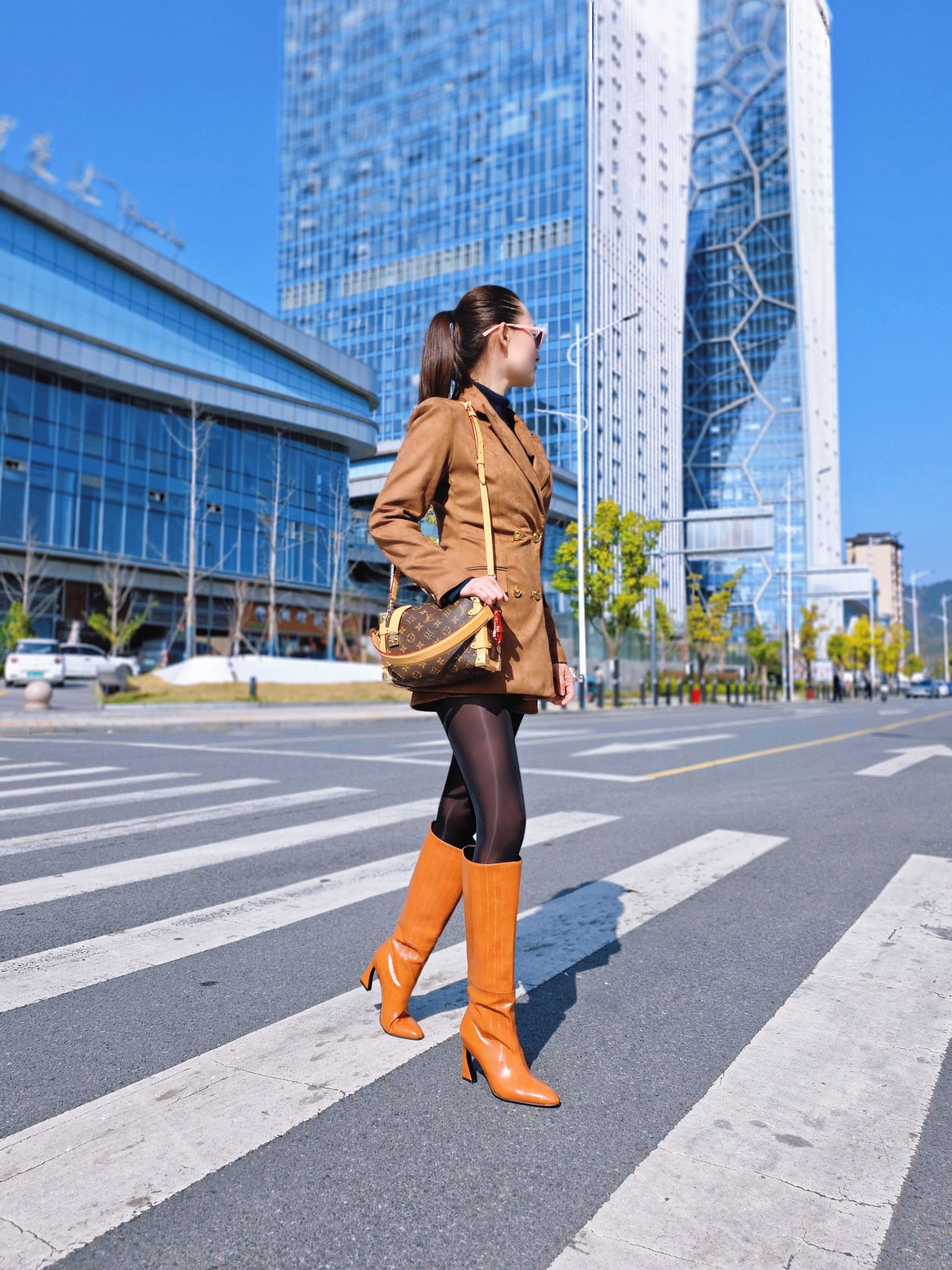 早春衣橱可不能千篇一律哦!大地暖棕色调的西装外套+长靴也很适配春天啊!谁说美拉德只属于秋冬呢!开春这么穿温暖又高级,显瘦显高还超有气场,通勤约会都出片,美拉德也能穿出春天的轻盈与活力~