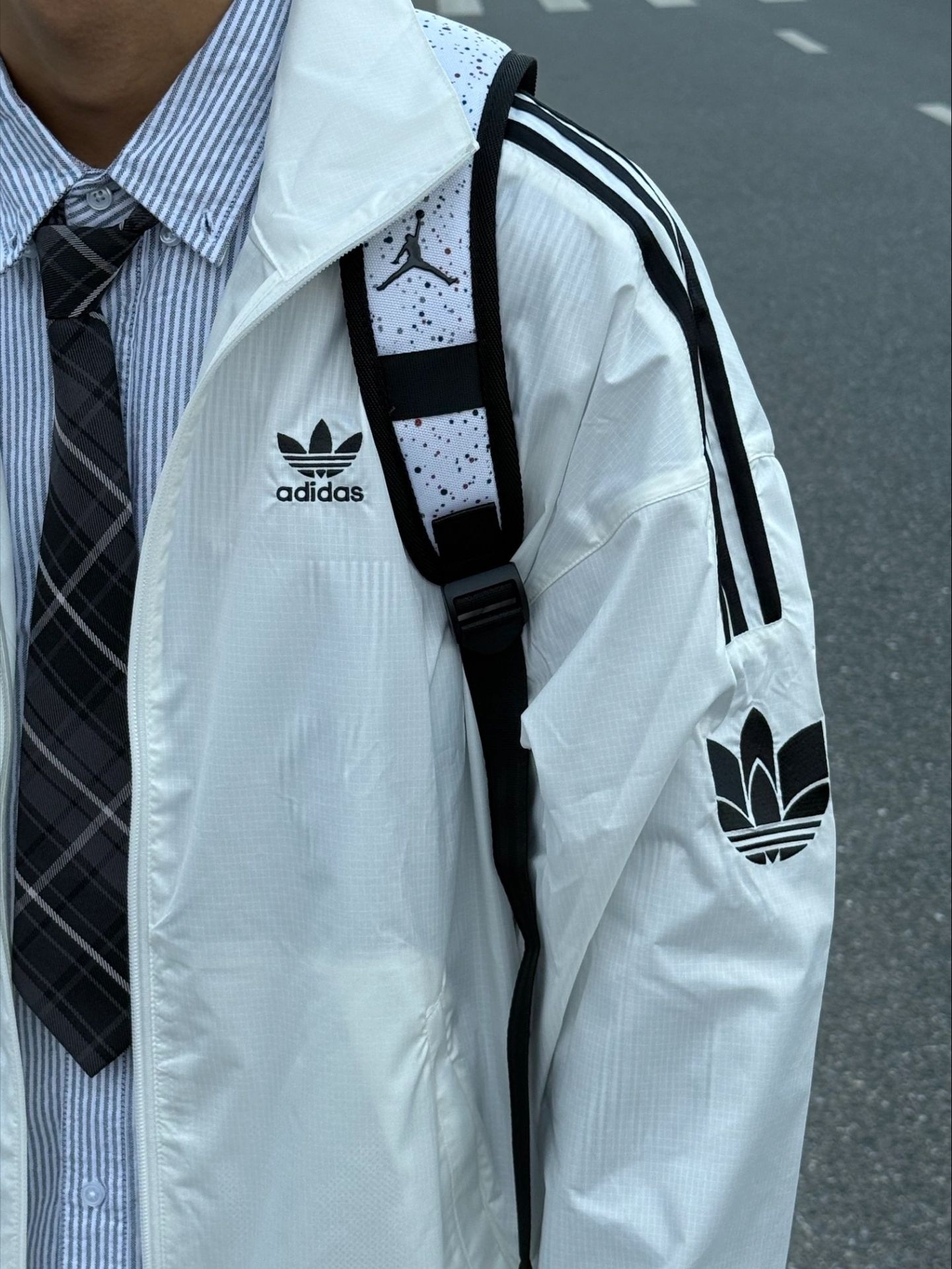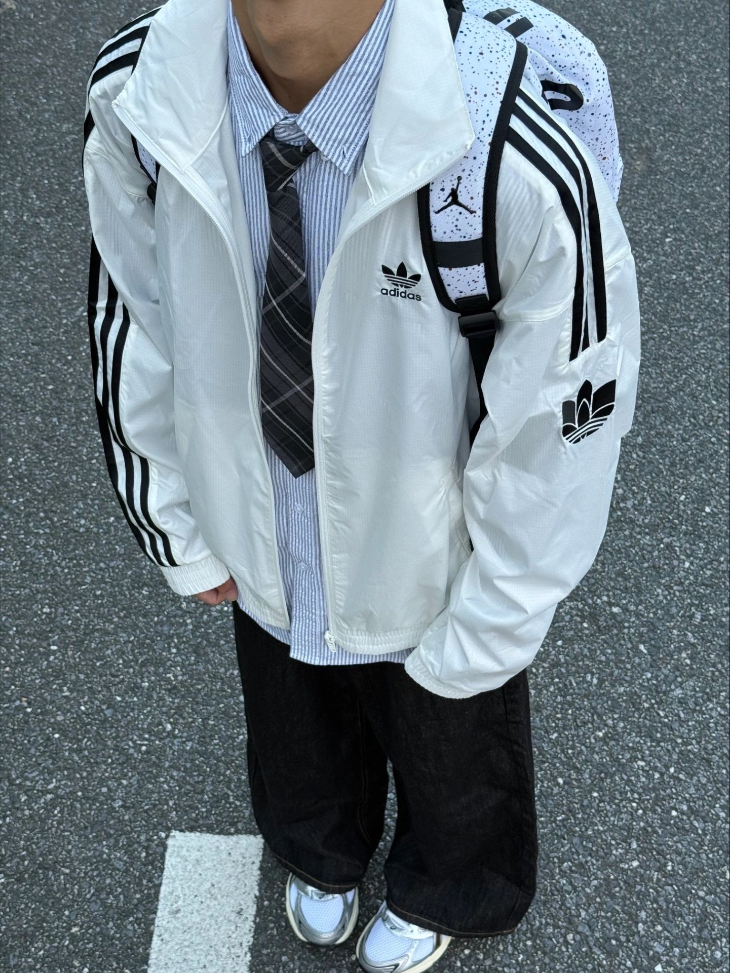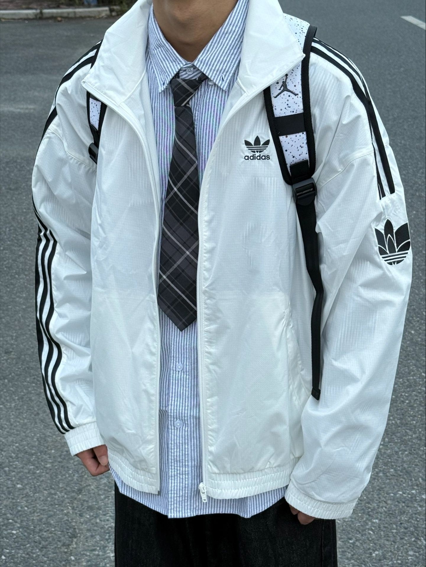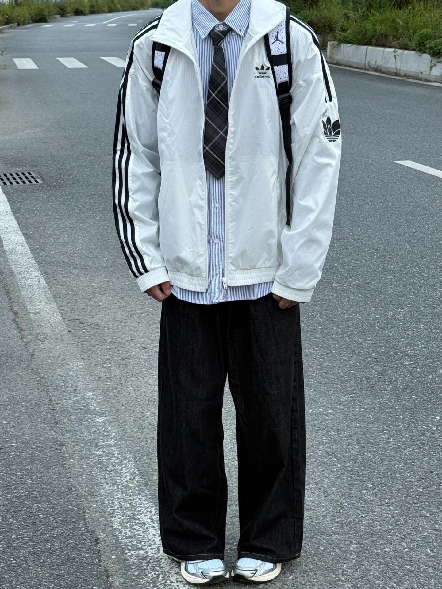 秋冬穿冷色调什么感觉啊 直接就是融入季节了好嘛 搭配的adidas外套➕衬衫➕领带 出门妥妥的学院风 裤子👖是原牛阔腿 喜欢原牛的可以入一下哦 #给穿搭来点复古滤镜