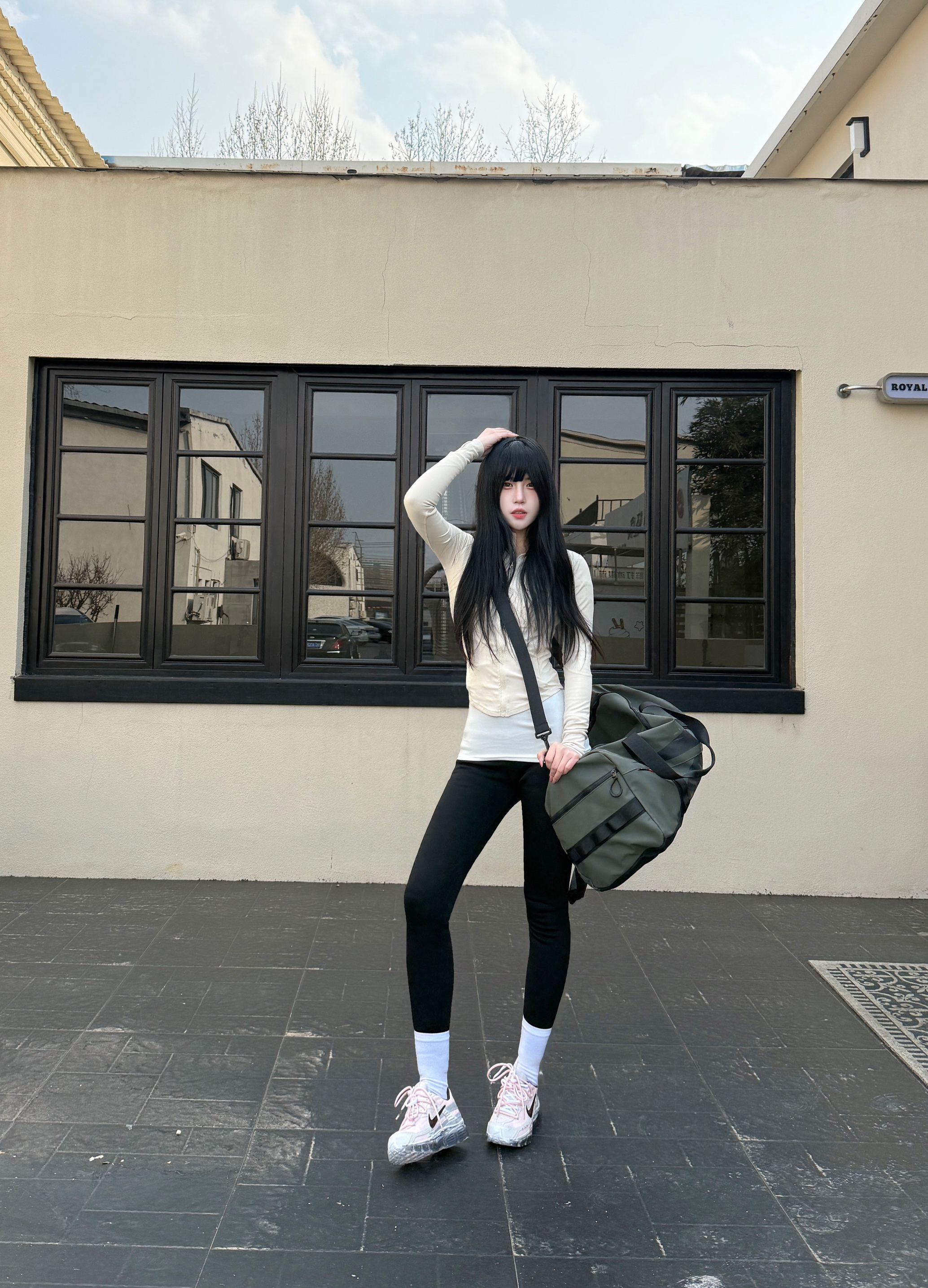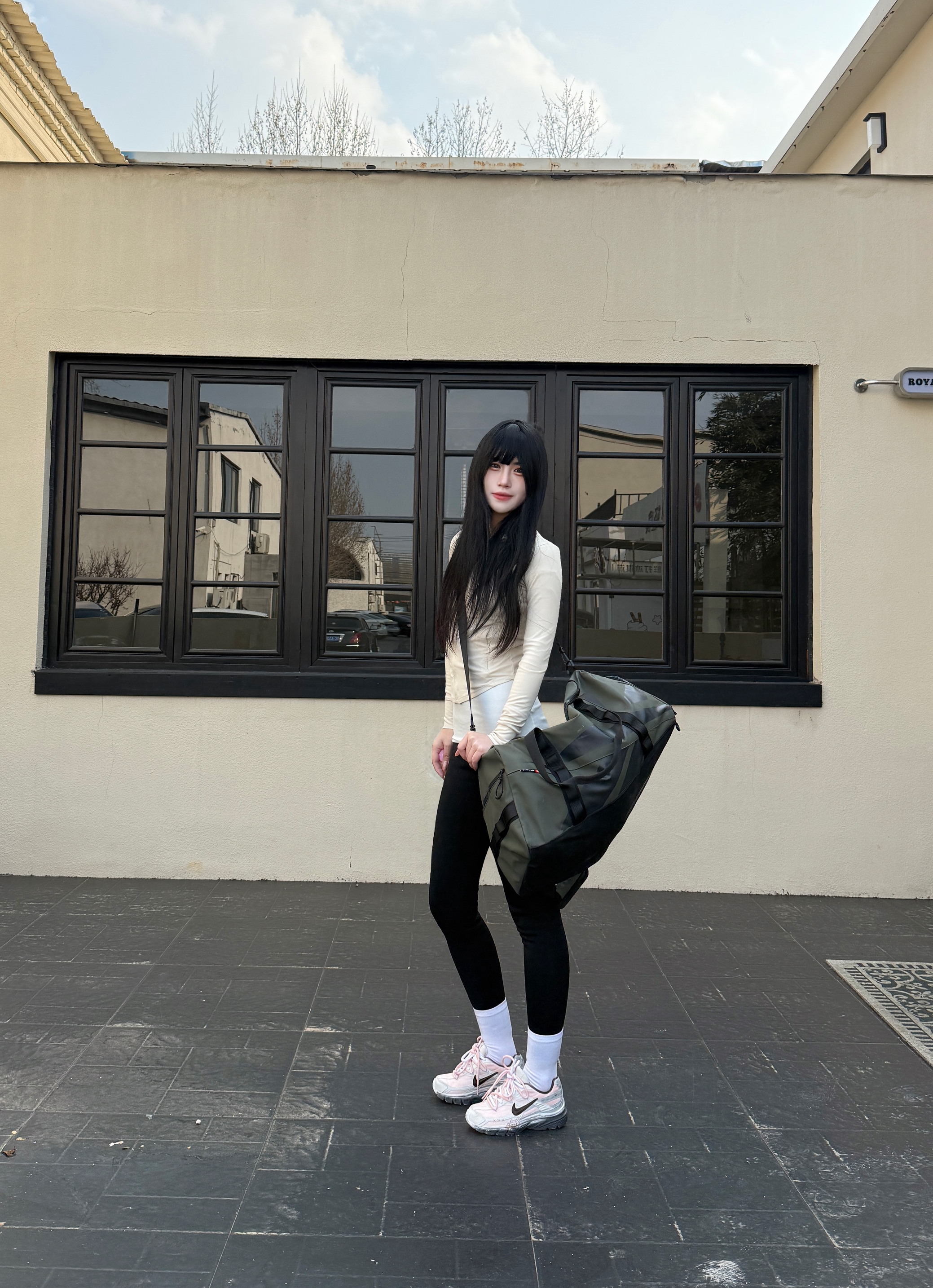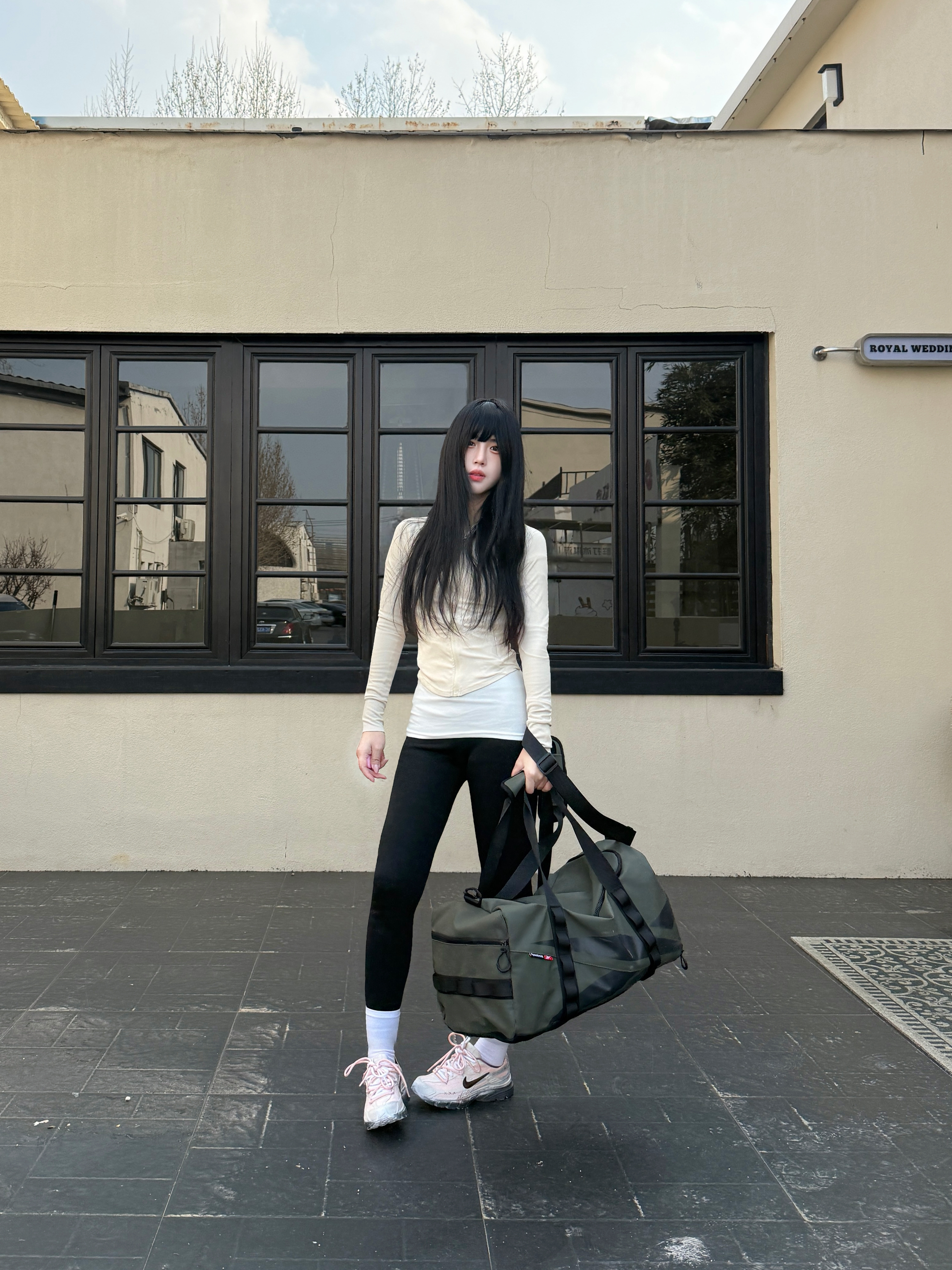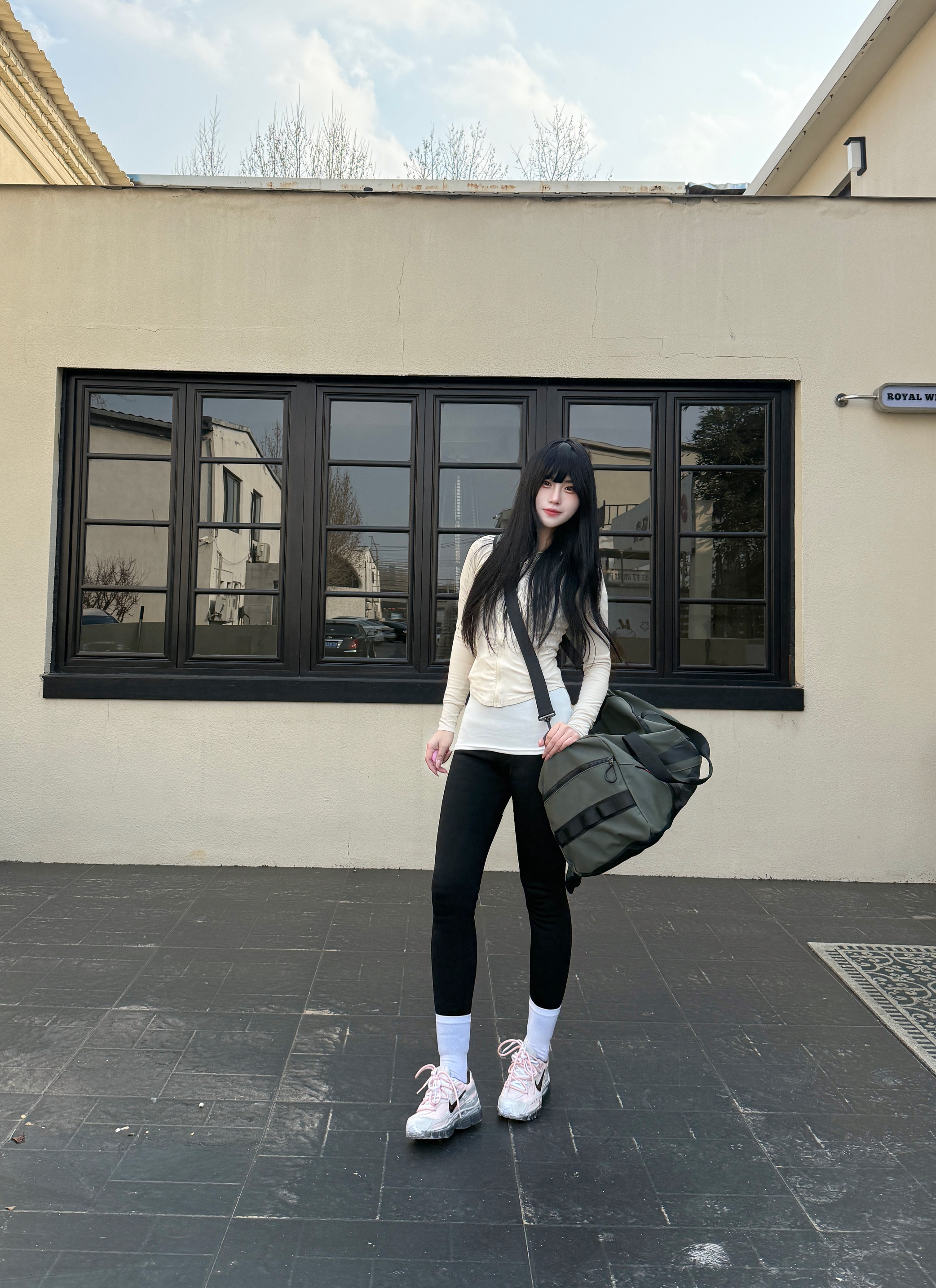 开春复古松弛感运动look 瑜伽服穿搭自带阳光滤 这一套藏肉又显比例✨ 粉色运动鞋清新提亮 军绿色Reebok健身包是点睛之笔 手提利落也可以斜挎随性 出街、健身、短途旅行一套全hold住 春天动起来就穿它!