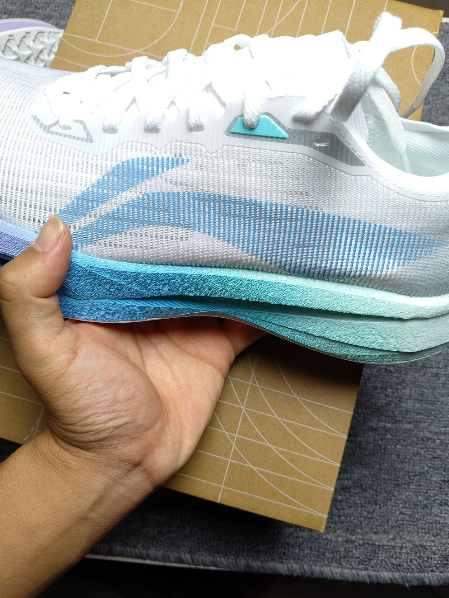 我觉得这双鞋让我很满意的是它的缓震表现。弜科技的运用,让落地时的冲击力被有效化解。然后是它的轻量化与透气性,鞋面的网布材质,让鞋子整体轻盈,跑步时像没太多负担。而且这双鞋的透气性很出色,夏天跑半小时,脚部也不会过度闷热,保持相对干爽。[机智_blue]但是我觉得这双鞋的耐用性可能会有一些不足,因为其外底的耐磨橡胶,经过一段时间的公路跑,可能会看到磨损痕迹。[捂脸_blue]