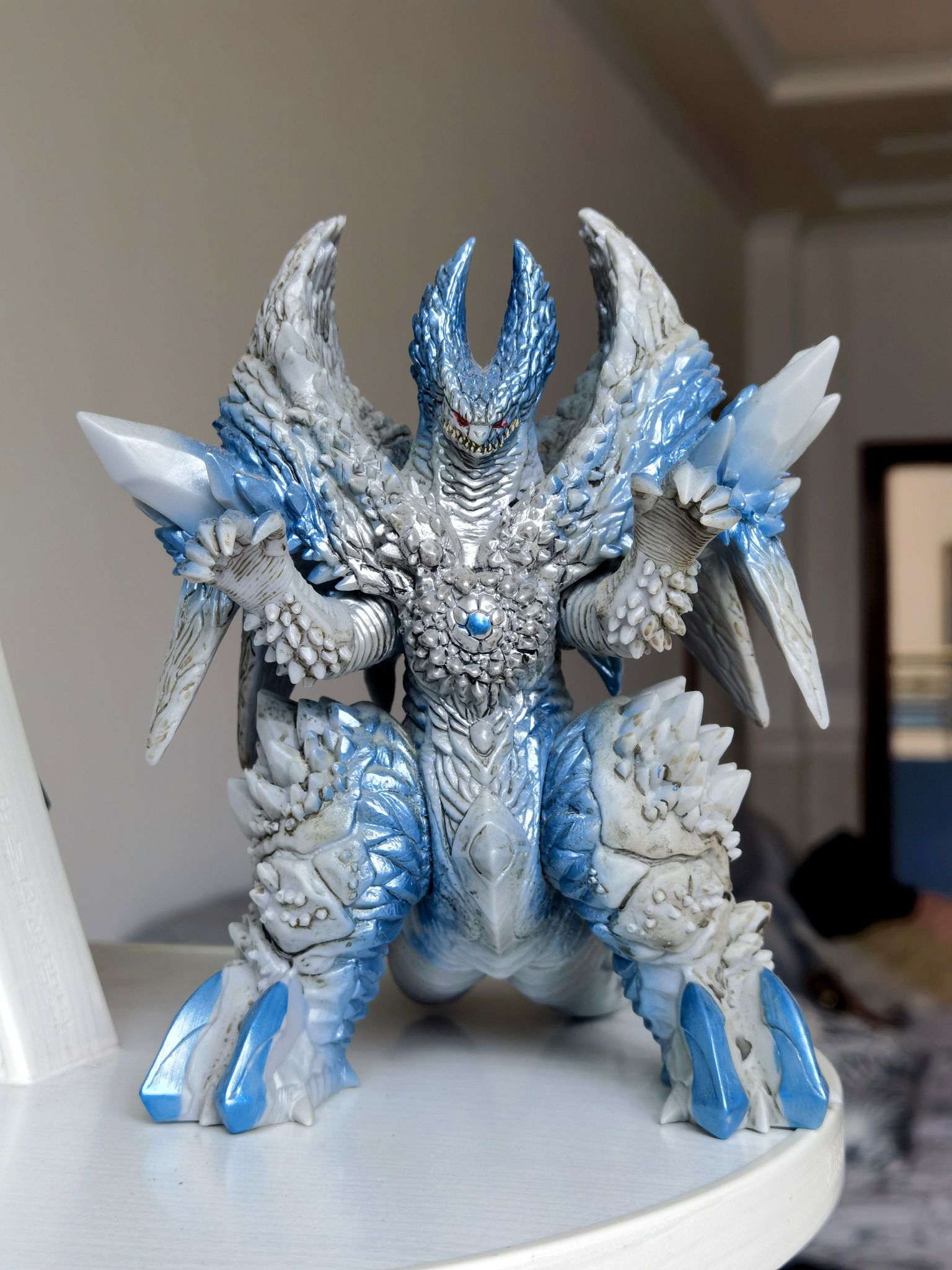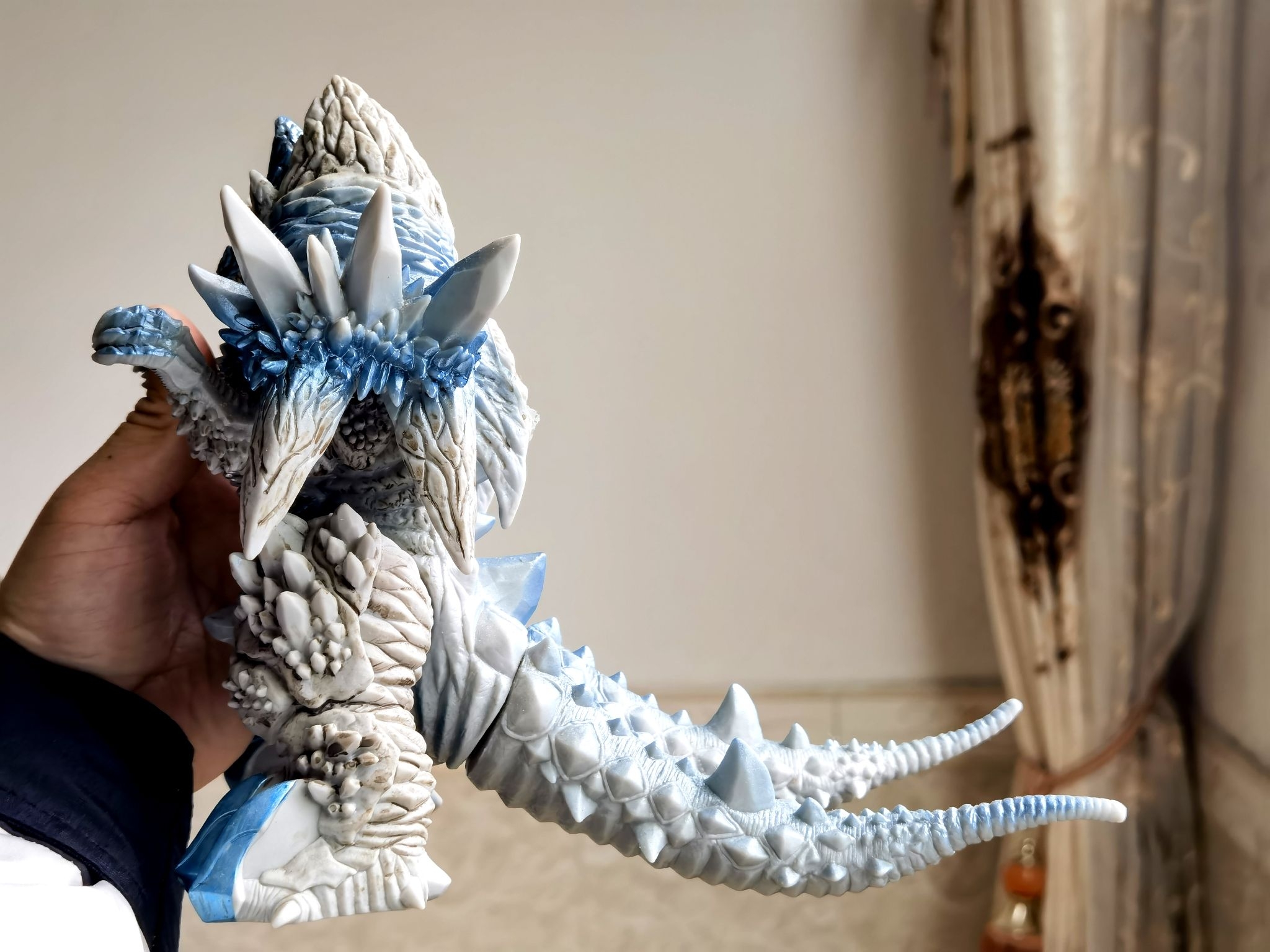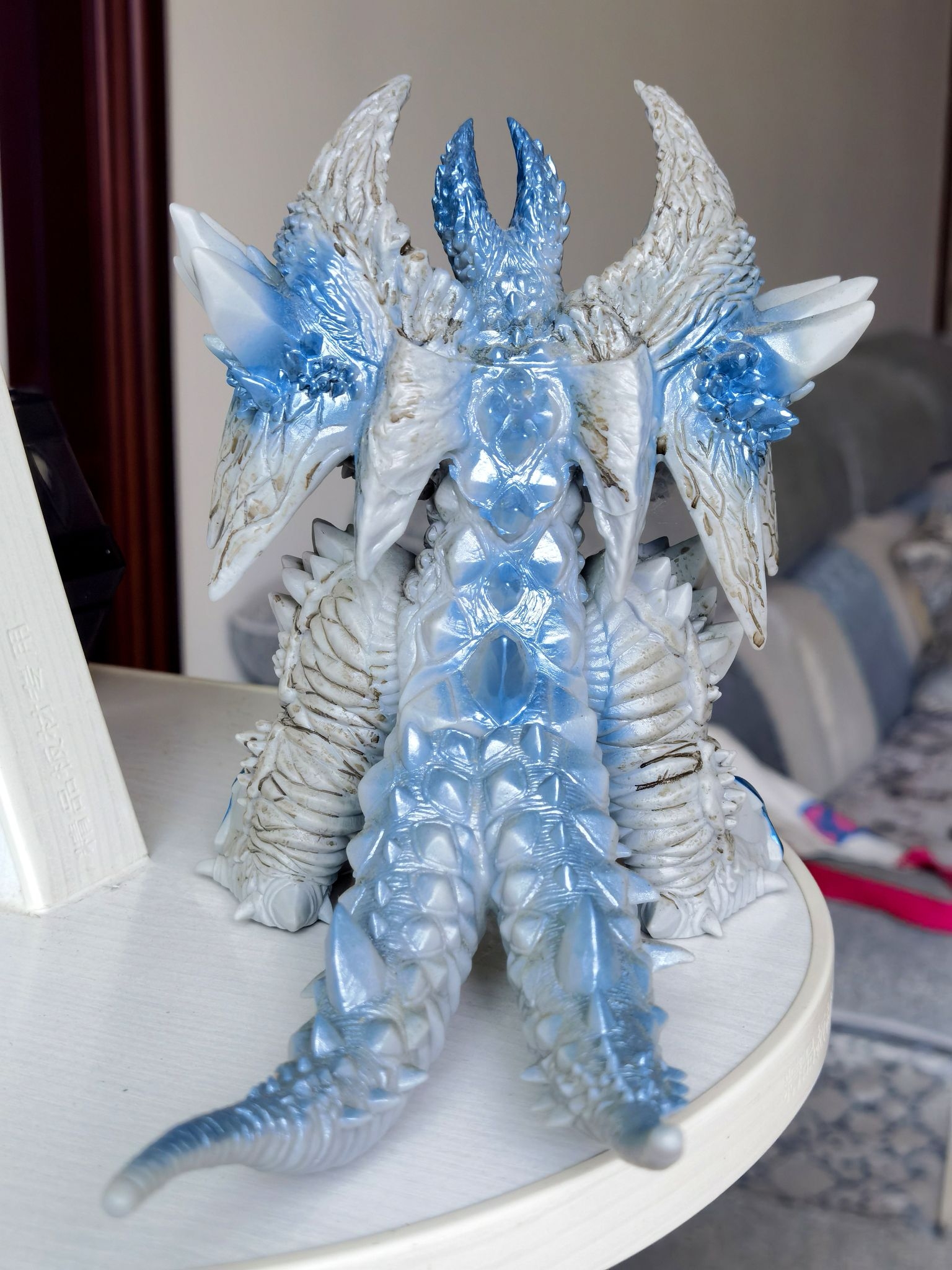 这是母体斯菲亚扎沃尔斯,是特摄剧《德凯奥特曼》中的最终BOSS,也是斯菲亚合成兽的最强形态。它由多个斯菲亚单元融合而成,造型庞大且充满异形感,胸口和身体各处的晶体能发射强大光束,是剧中极具压迫感的宇宙级敌人,这款模型是万代DX,全身涂装用了淡蓝色点缀,体型魁梧庞大,全身四肢可动整体压迫感很强!