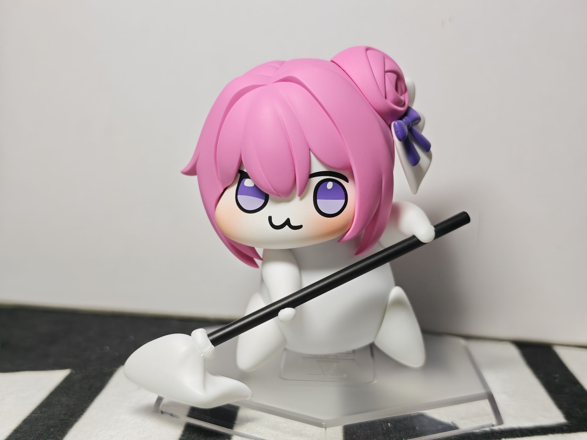 这个小人有意思吧!doro拿着大拖把!还有各种搞怪姿势跟表情哦!可以随意替换!是不是很好玩啊!这模型小贵,但是挺值,因为很多玩法!更多玩法是把Doro的头替换到其他的模型手办上去,可玩度大提升!哈哈哈哈