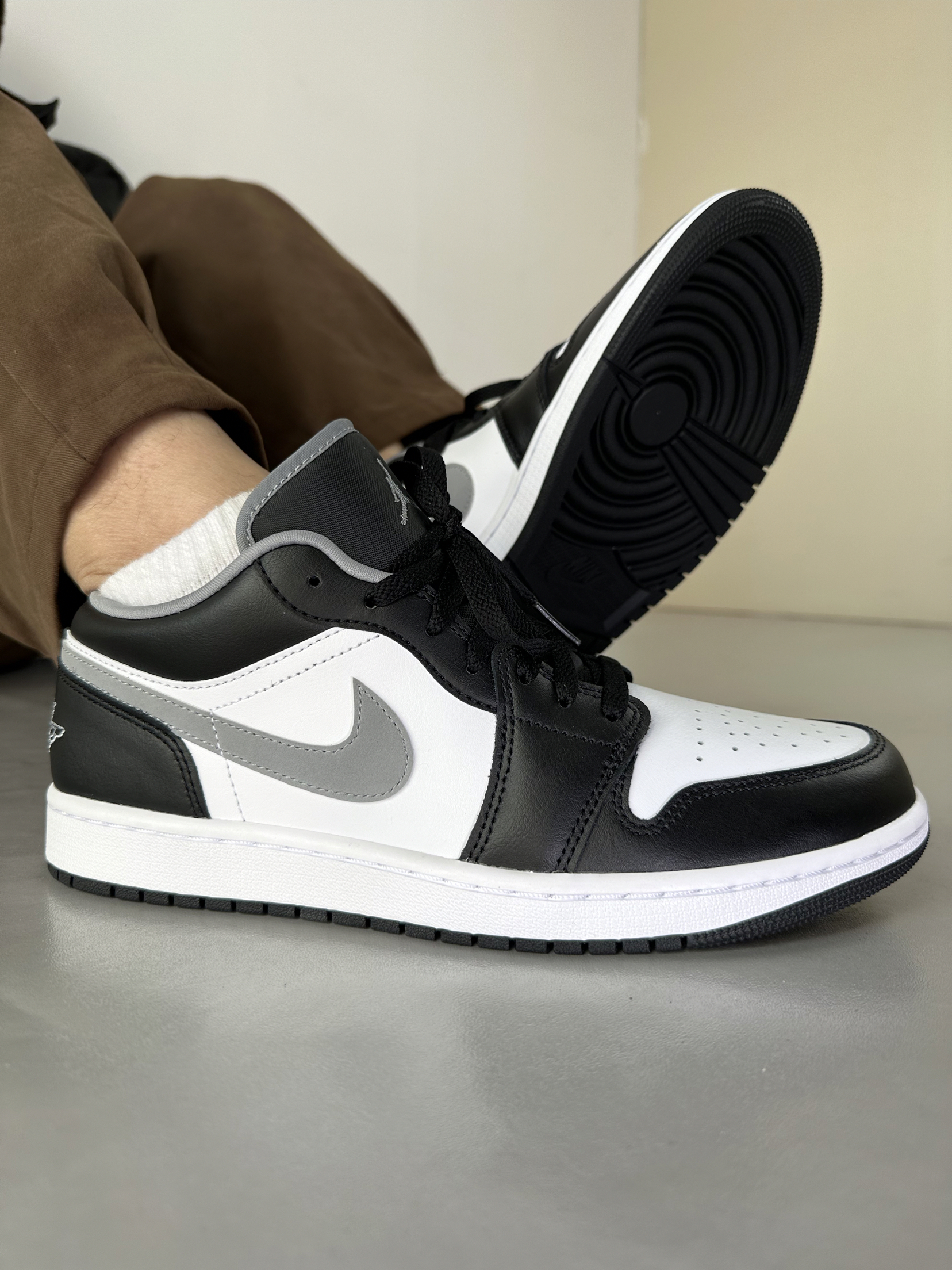 黑白灰配色真的太耐看了, 怎么搭配衣服都很容易, 今天配了条咖啡色休闲裤, 感觉整个人都清爽了不少。 皮面质感不错日常通勤完全够用。 脚感比想象中好一些, 走一天路也不会觉得累。 已经把它当成日常通勤鞋了。