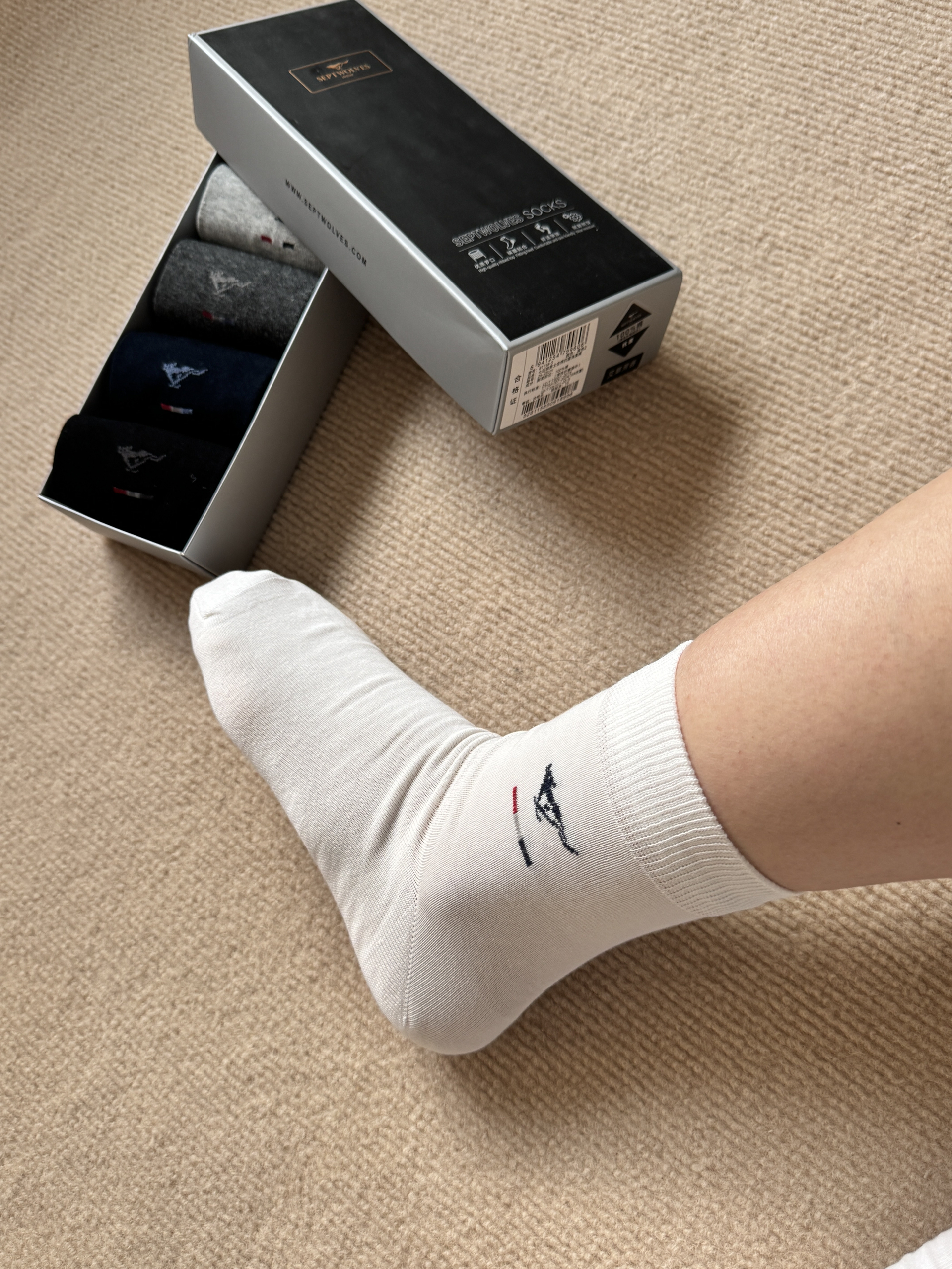 其实给男朋友挑礼物,还是有点难度的 这次我选择了一个做了很久的男装品牌 百分之百纯棉的料子✨ 上脚软乎乎的 而且这双袜子是挺透气的 不会说很厚重 刚好很适合初春🌱 而且这双袜子兼顾抗菌功能🔆 就更适合爱运动的男孩子了 最让我惊讶的是他这个礼盒包装 很有质感 送给男朋友也很有面子 总而言之 这是一份非常有实用性和新意的小礼物
