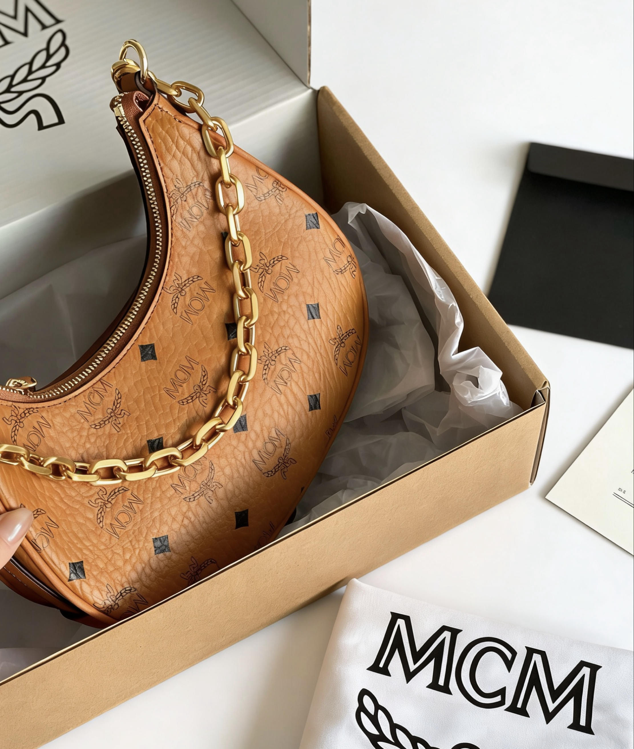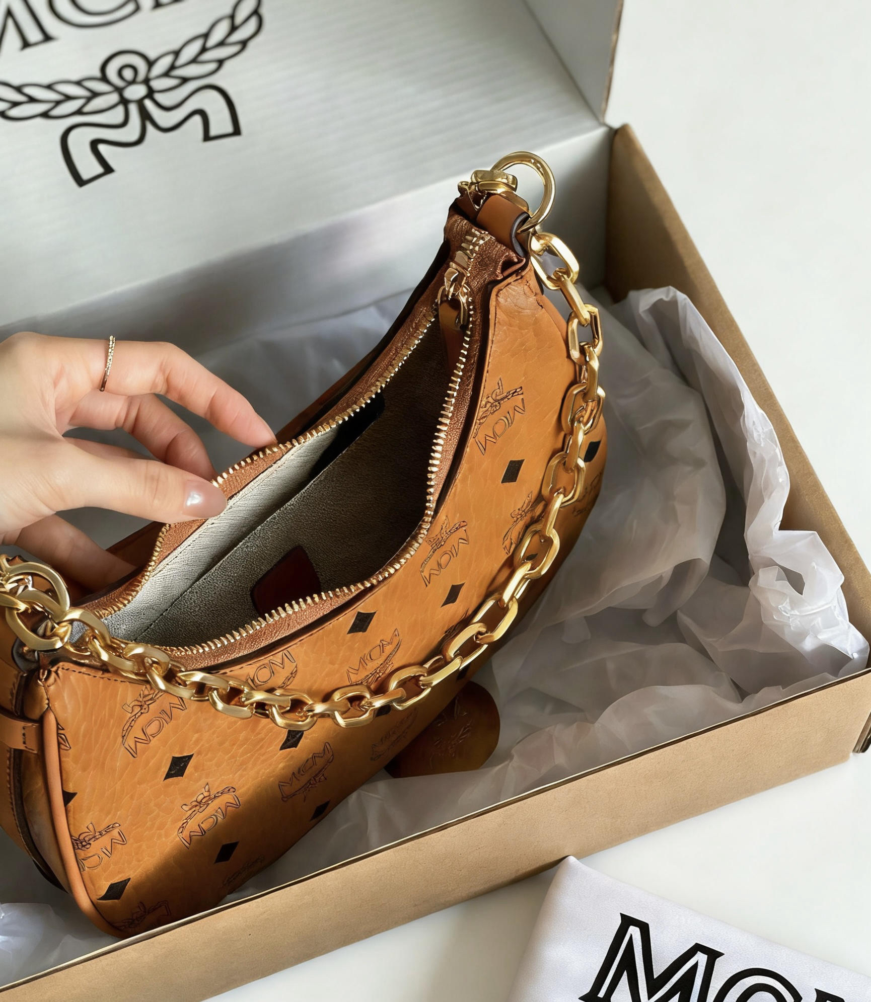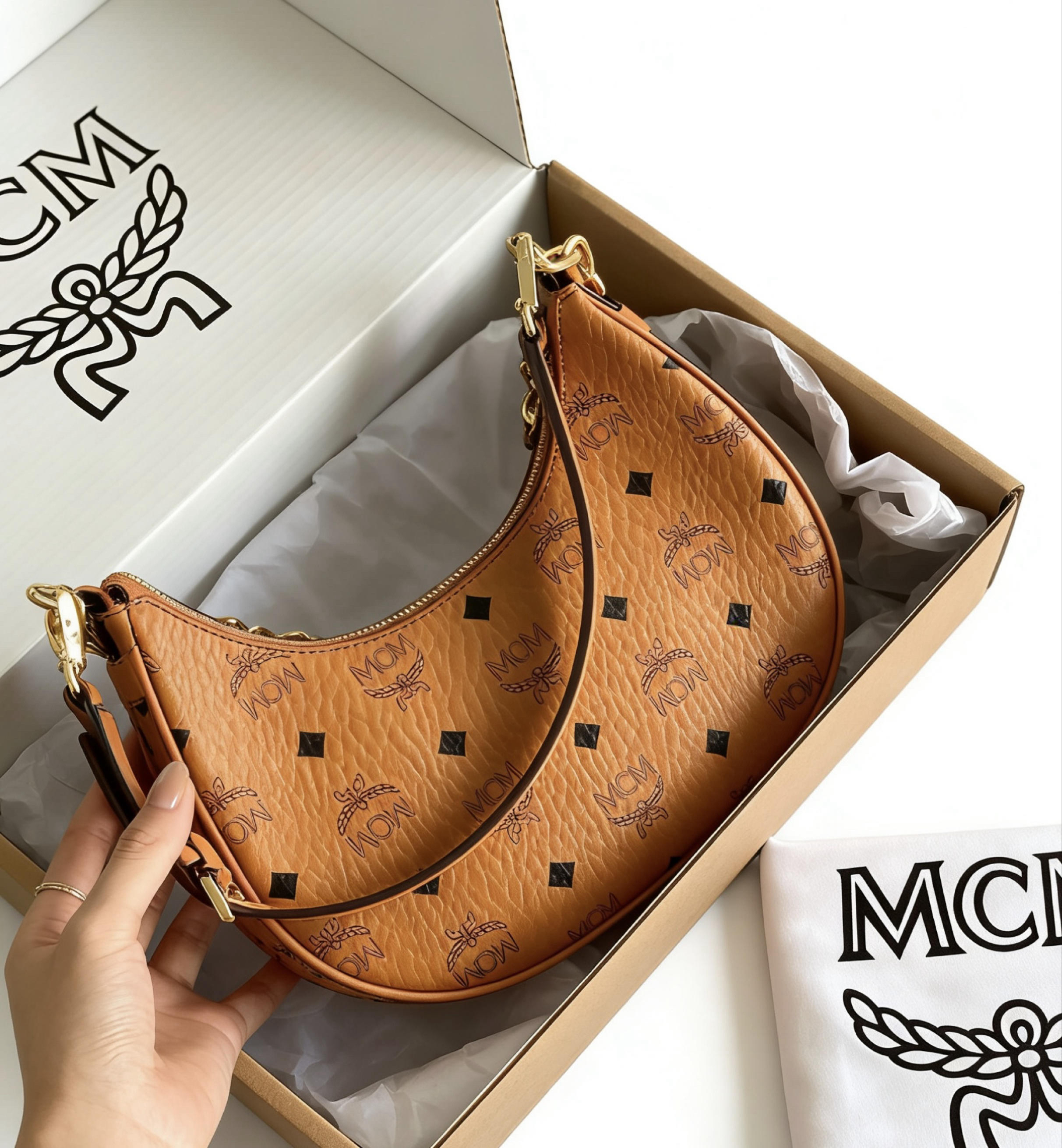 谁懂啊家人们 这只MCM月牙包真的是我的年度心头好 复古月牙造型+粗金链 一上身就自带韩剧女主滤镜 不管是配卫衣还是小裙子都超搭 双背法设计太贴心了 腋下背是甜酷辣妹 斜挎背又秒变随性韩系小姐姐 别看它小巧 容量真的惊到我 手机、粉饼、口红、AirPods全能塞下 甚至还能塞下我的小折叠伞 Visetos老花压纹质感绝了 五金亮闪闪的 背了快半年也没掉漆 自重也不重 完全不会压肩膀 现在它已经...