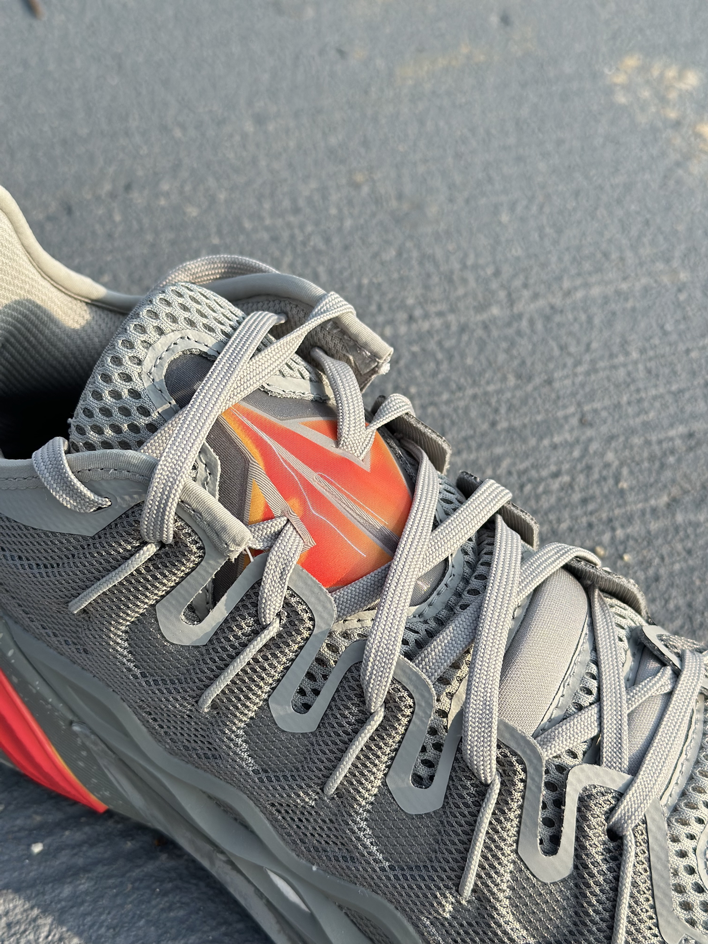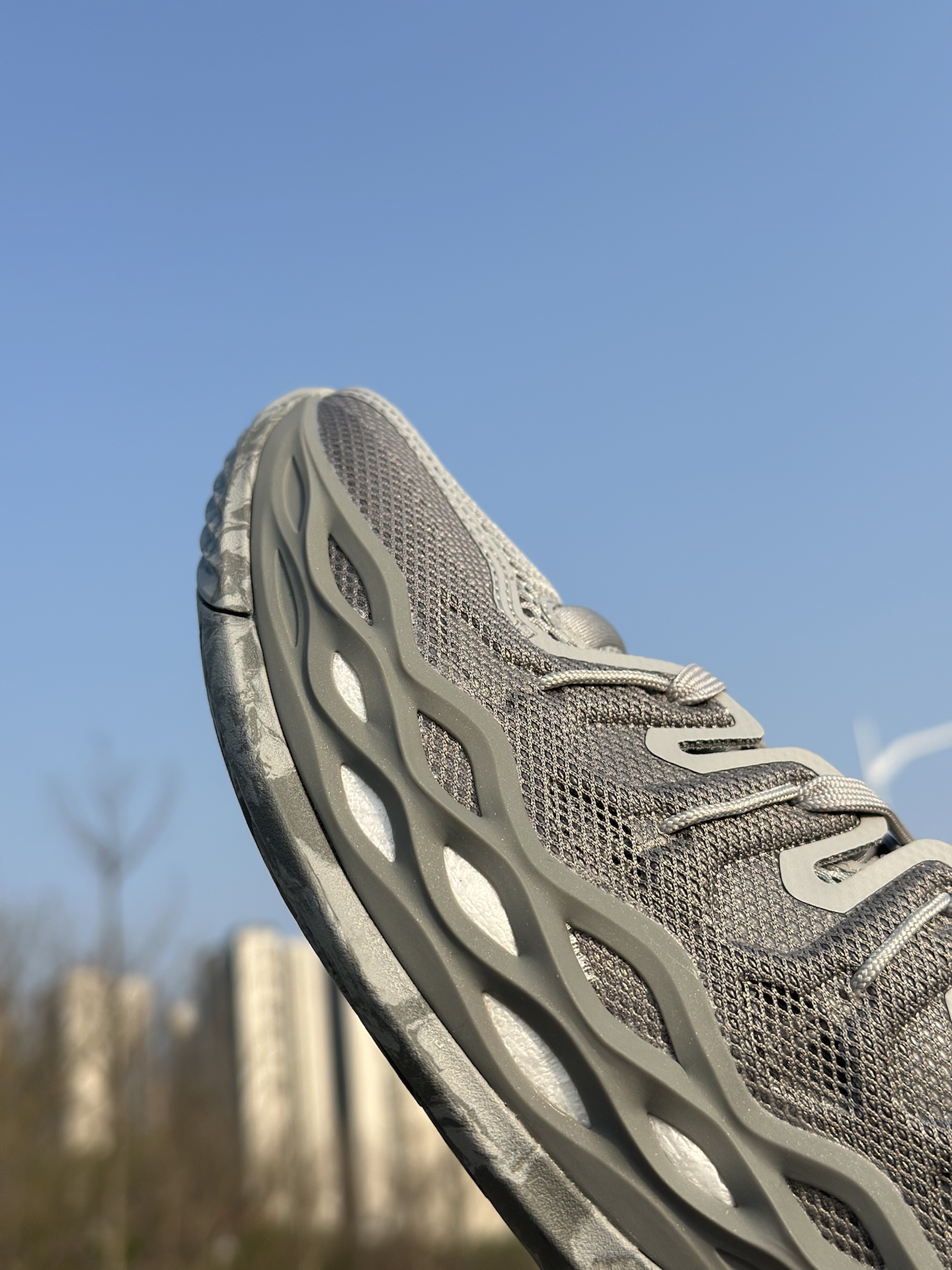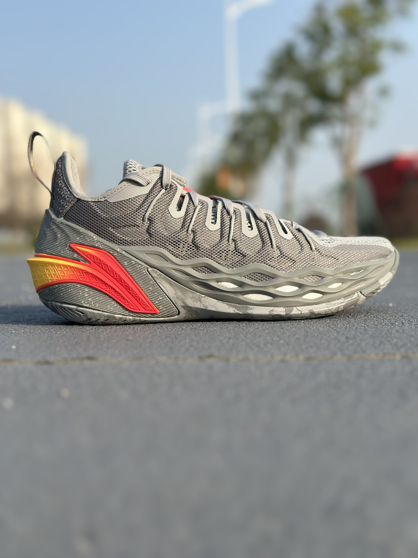 这双李宁Buckets,真的是把‘硬汉’两个字写在脚上。 整双鞋的灰色调,加上中底这种波浪形的镂空结构,一看就是为实战而生的狠货。最抓眼的,就是后跟这个渐变的大logo,从黄到红,像一团燃烧的火焰,在场上绝对是视觉焦点。✅ #新鞋零时差 #伤病也阻挡不了我打球 #教练我想打后卫 #下班突袭校园球场