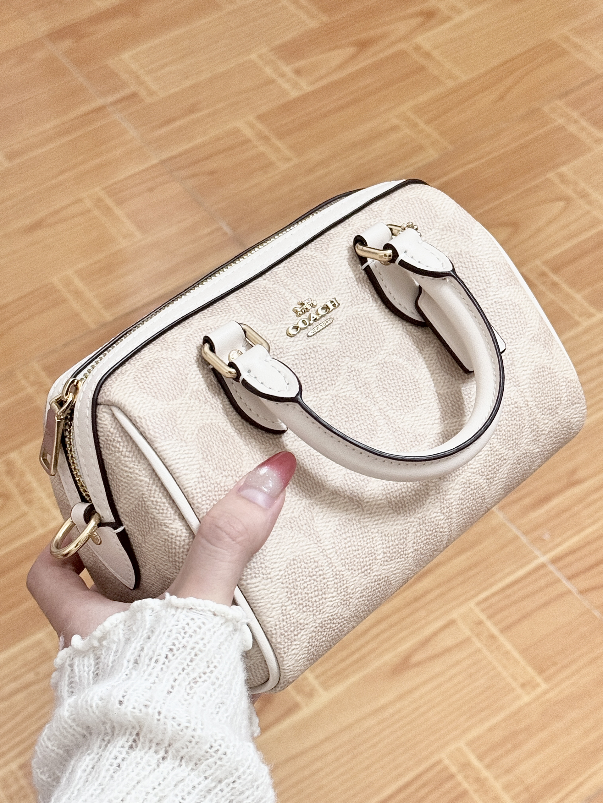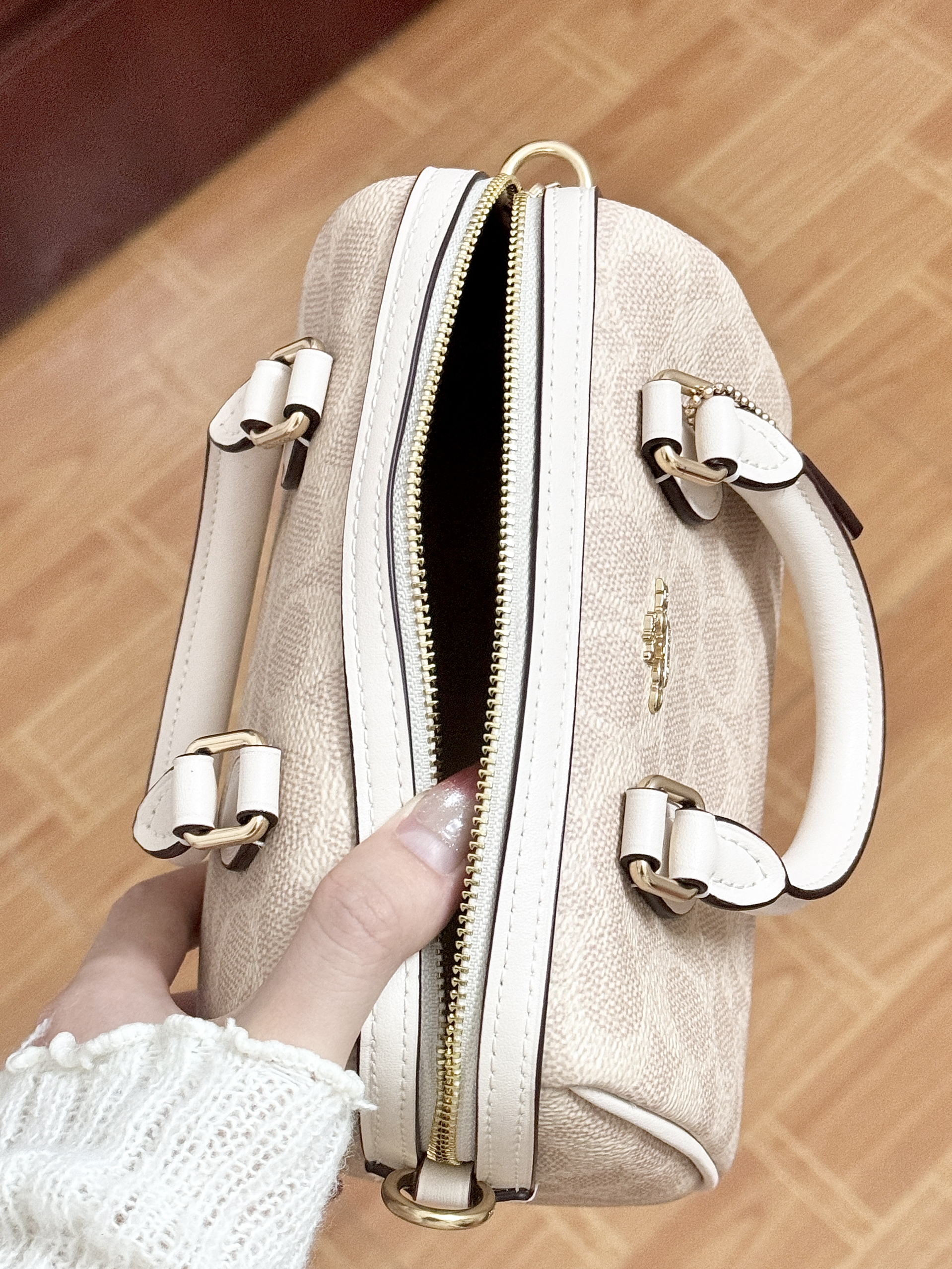 终于入手了人生第一只大牌包 选了Coach的这只浅奶茶色波士顿包 拿到手的时候,真的有被戳到 奶fufu的颜色,经典老花压纹 五金和走线都很精致 大小刚好,日常通勤、约会都能背 手提温柔,斜挎又很随性 其实纠结了挺久 不是跟风,是觉得这是对自己努力的一份小奖励 以后要更努力,才能配得上更好的东西呀