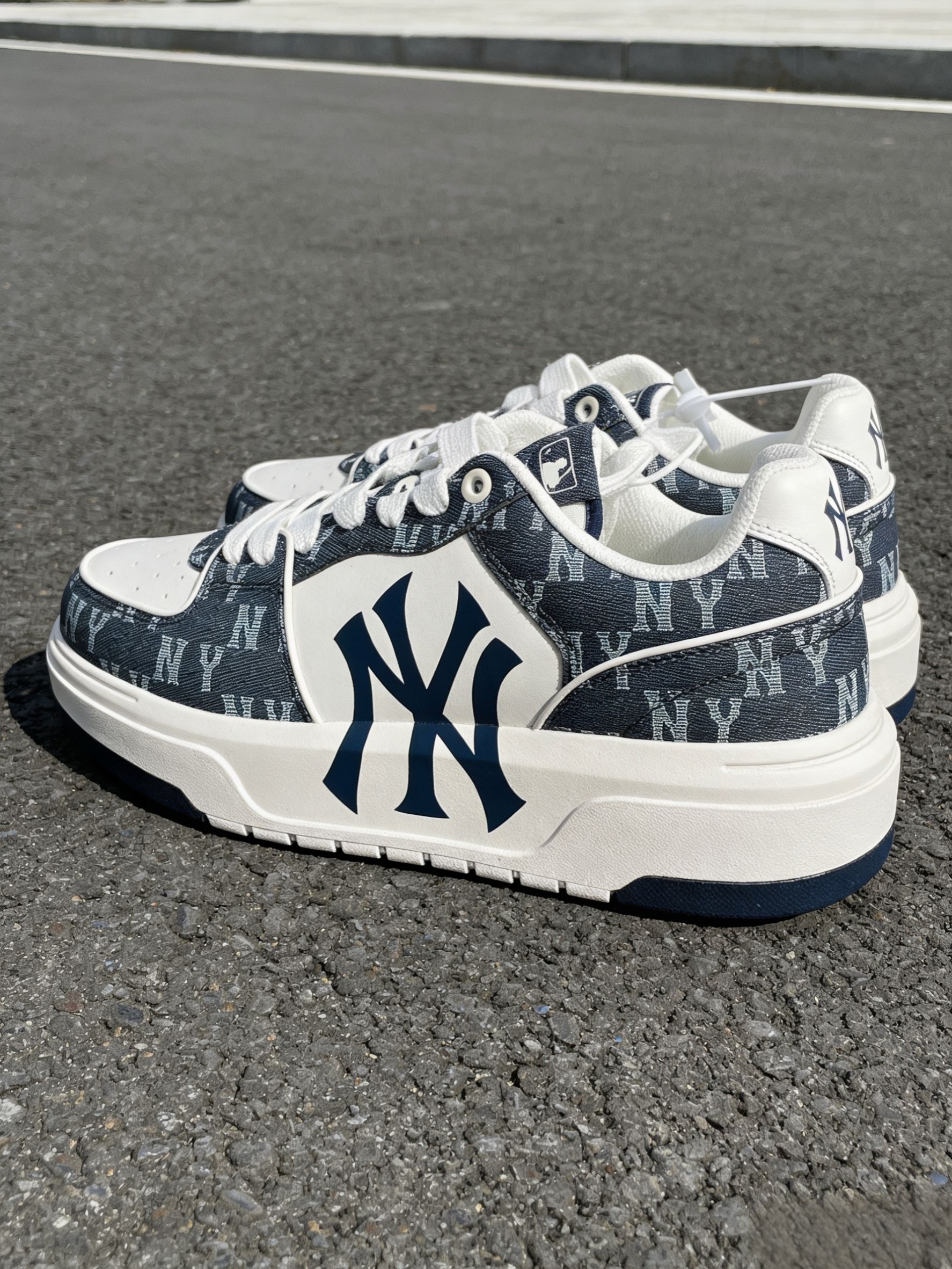 这双MLB Chunky Liner板鞋,是我日常使用率很高的一双。海军蓝老花厚底低帮,鞋底支撑不错,走路稳定。通勤、休闲都能穿,尺码标准,搭配简单,属于穿不腻的基础款板鞋。