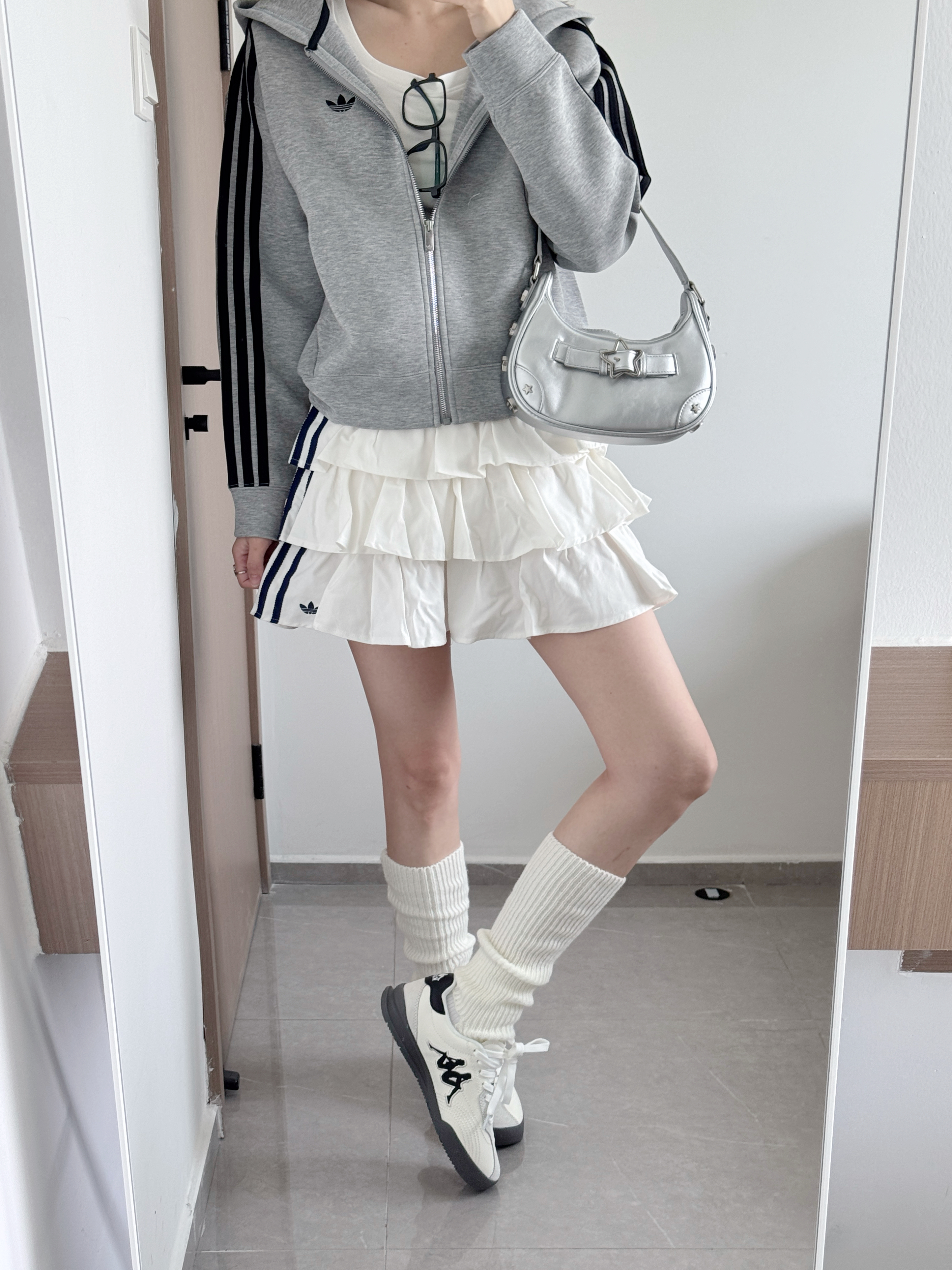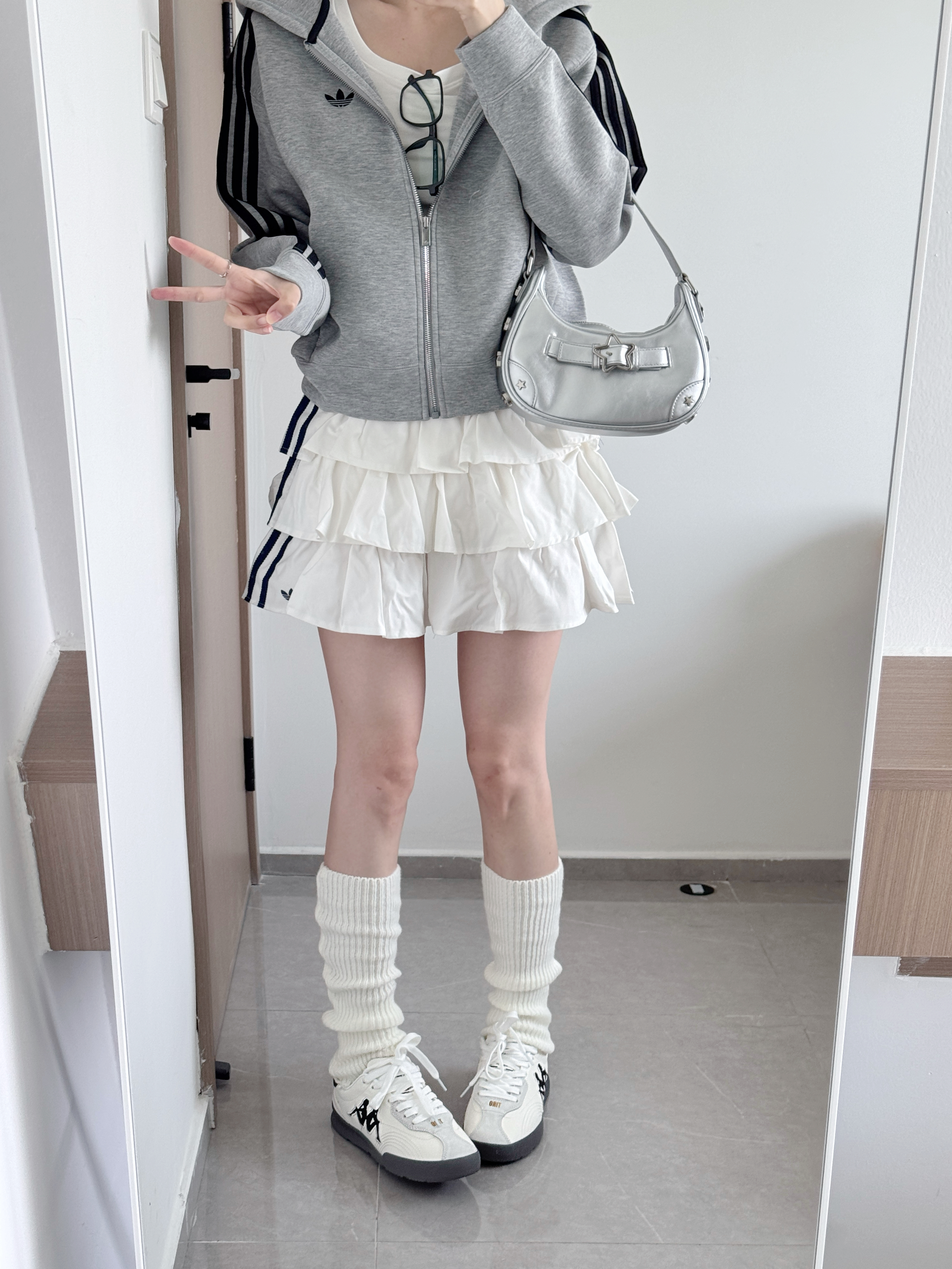 春夏就要穿德训鞋呀 白色奶呼呼的 经典又百搭🥰 脚感软软的好舒服 暴走一天也不累✌️ 搭配外套百褶裙一套韩系学院风十足